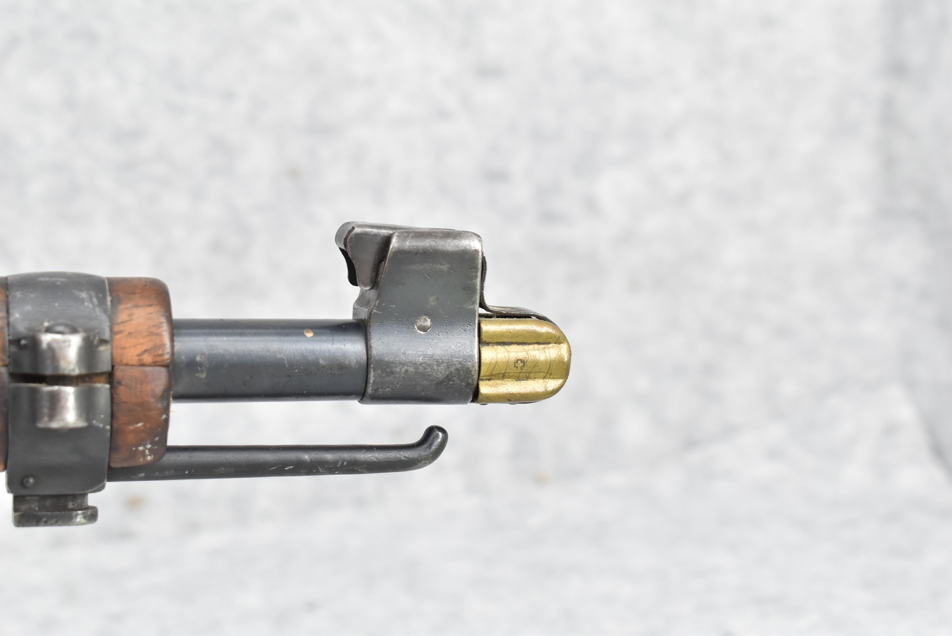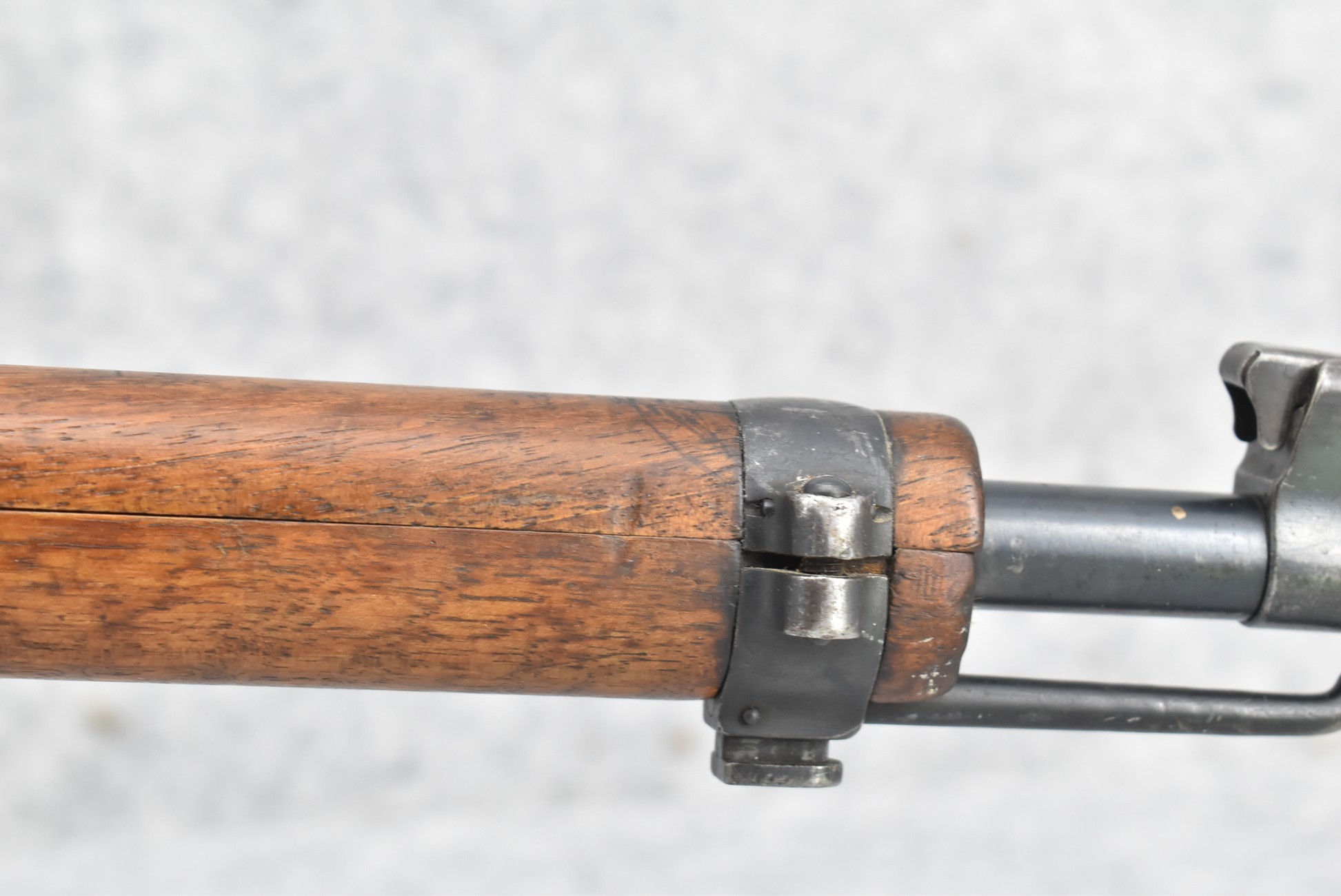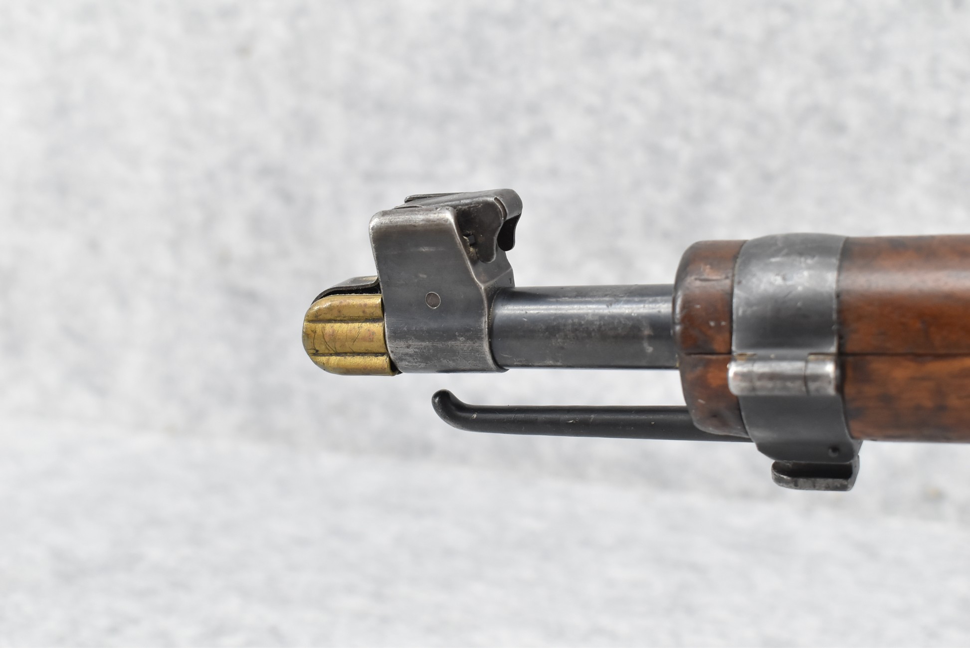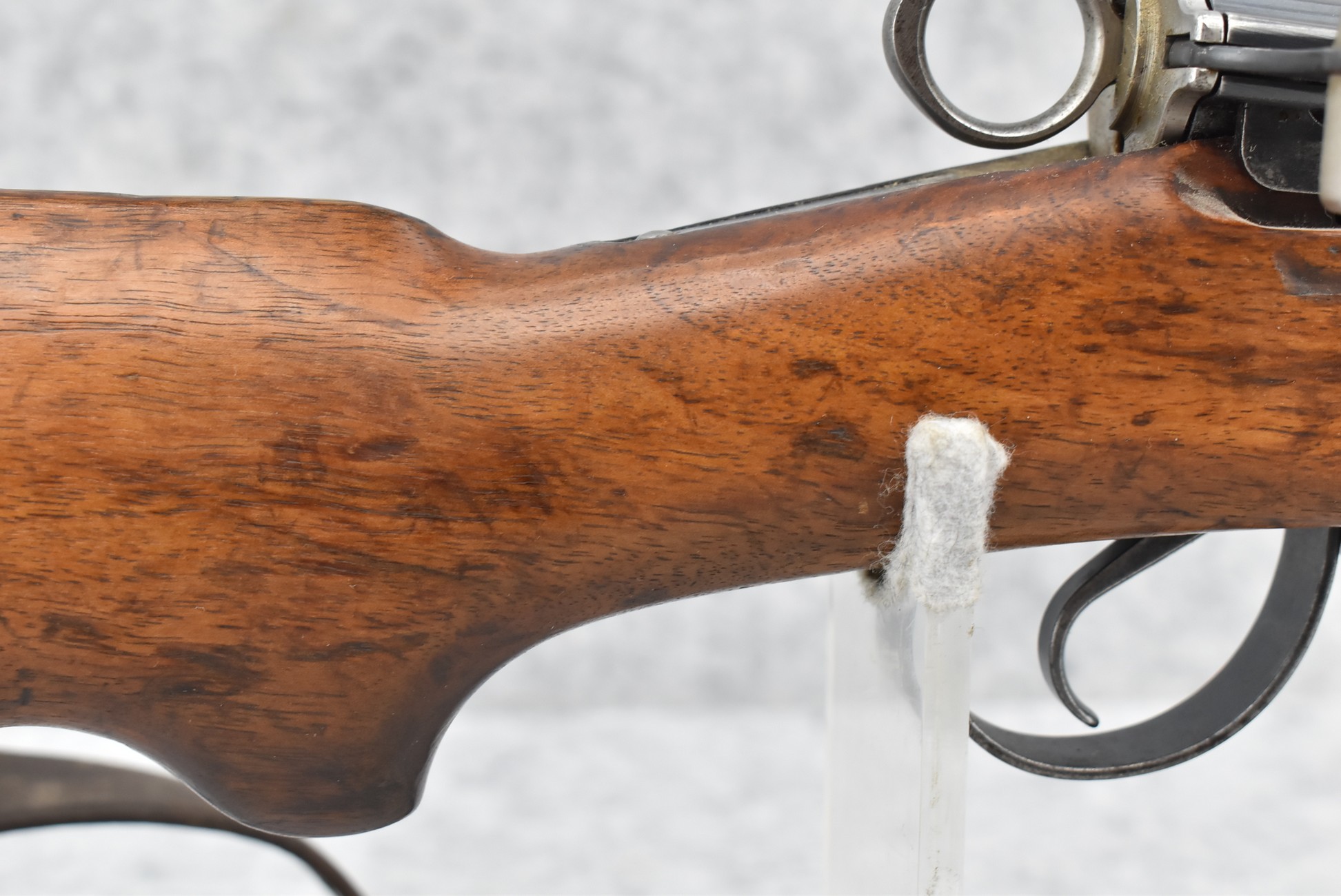 187R. Swiss – Mod. K31 – 7.5×55 Cal. Straight Pull Bolt Action Rifle – w/26” Barrel w/Hooded Front and Adjustable Rear Ladder Sights – Blued Finish – w/Round Knob Pistol Grip Full Military Wood Stock w/Butt Plate – w/Factory Detachable Magazine – w/Leather Sling – Numbers Matching – Import Marked