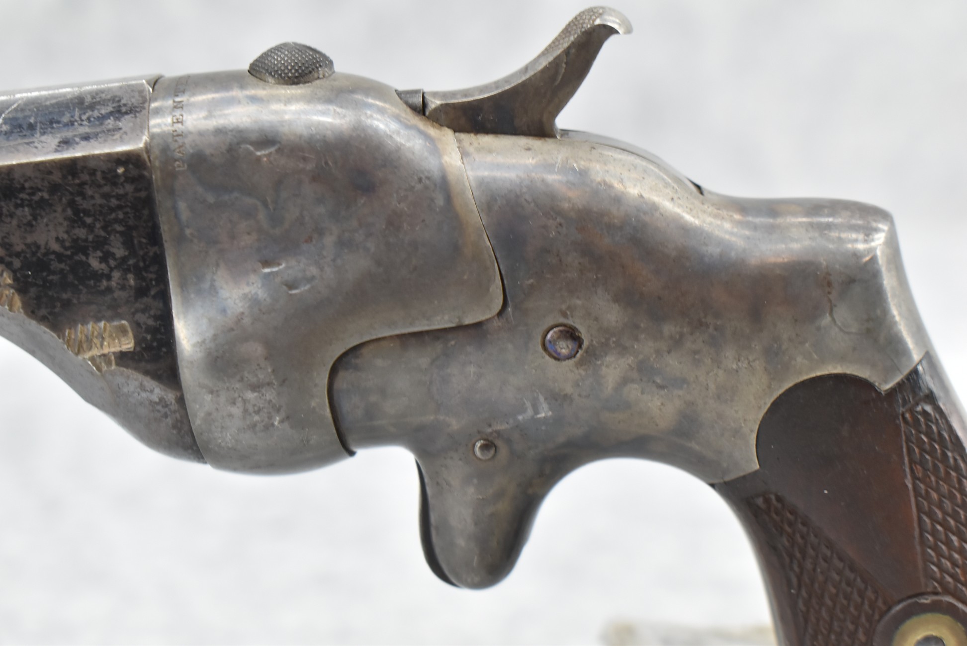 189. Connecticut Arms & Mfg. – Mod. Hammond Bulldog – 44 Rim Fire Cal. Single Shot Pistol – w/4” Octagon Barrel w/Blade Front & Notch Breechblock Button Rear Sights – Blued Finish w/Case Hardened Frame – w/Semi-Checkered Hard Rubber Grips – w/Swivel-Open Breechblock – These Pistols Were Mfg. Circa 1866 to the Late 1880’s, There Were Only an Estimated 8,000 Total Mfg. w/This One Being #29 an Extremely Early Example of That Estimated 8,000!