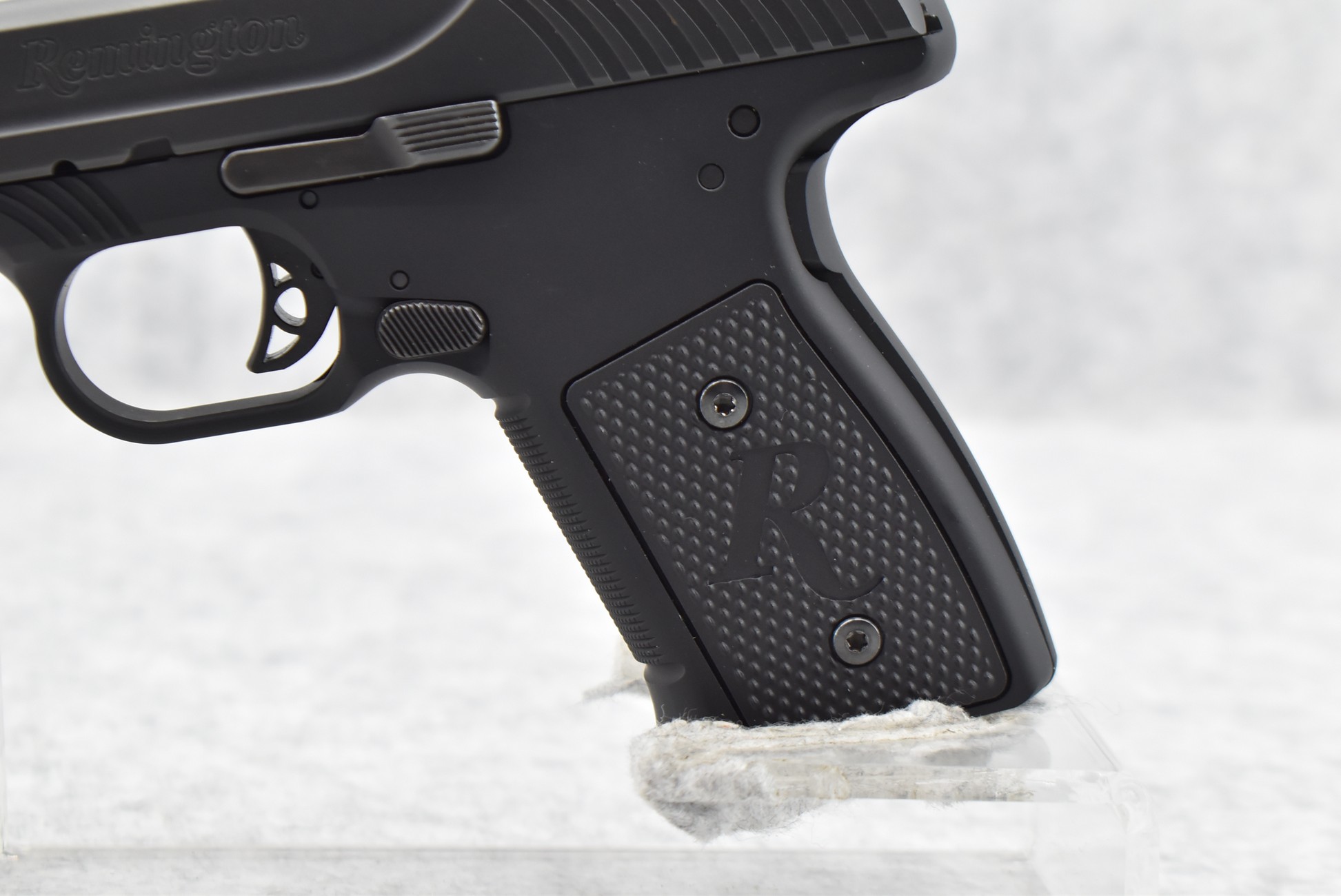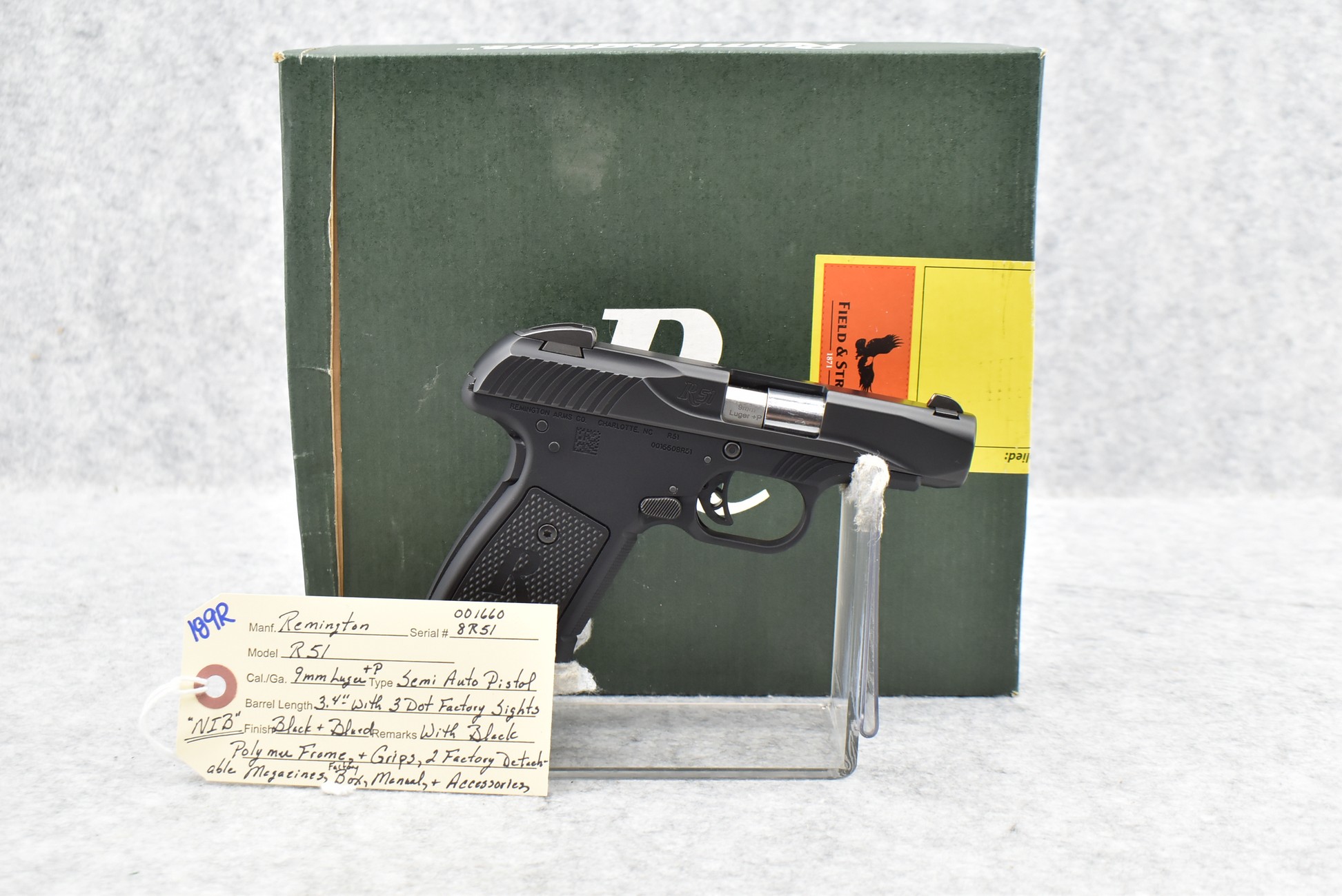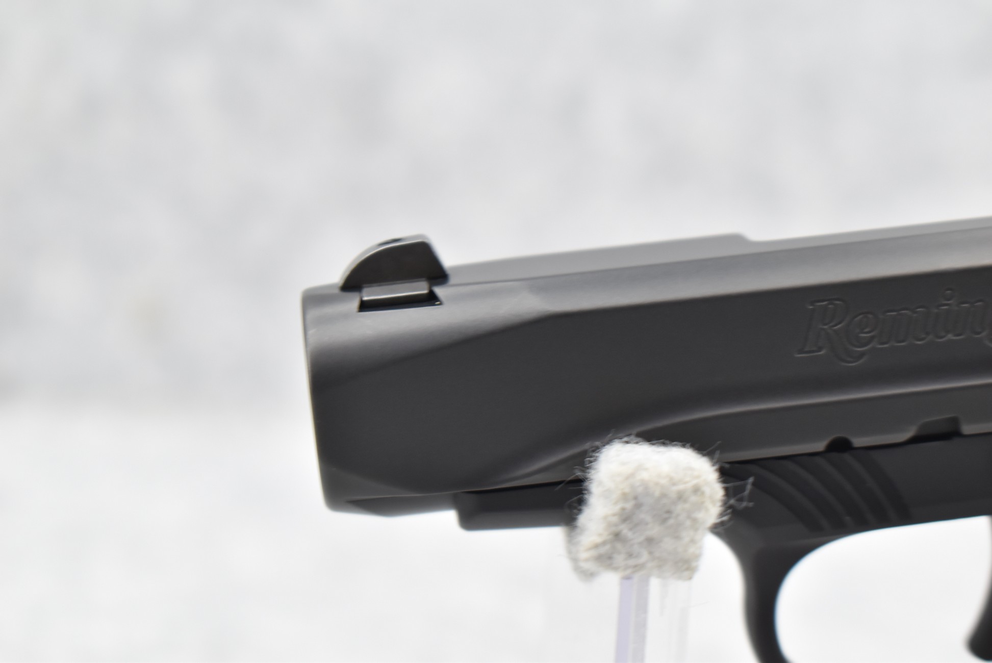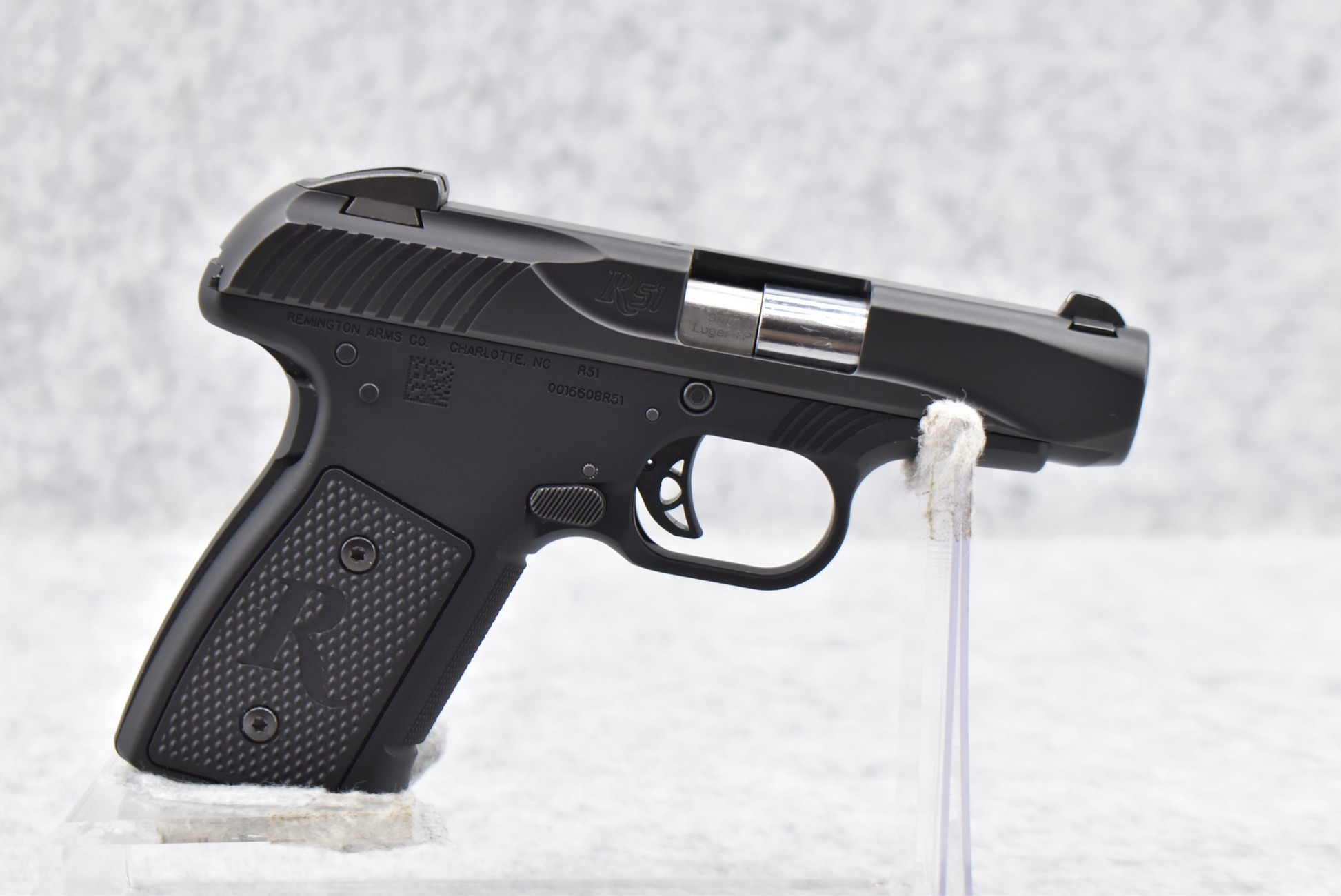 189R. Remington – Mod. R51 – 9mm Luger + P Cal. Semi-Auto Pistol – w/3.4” Barrel w/3-Dot Factory Sights – Matte Blued Finish – w/Black Polymer Frame and Grips – w/2 Factory Detachable Magazines – New in Factory Box w/Manual