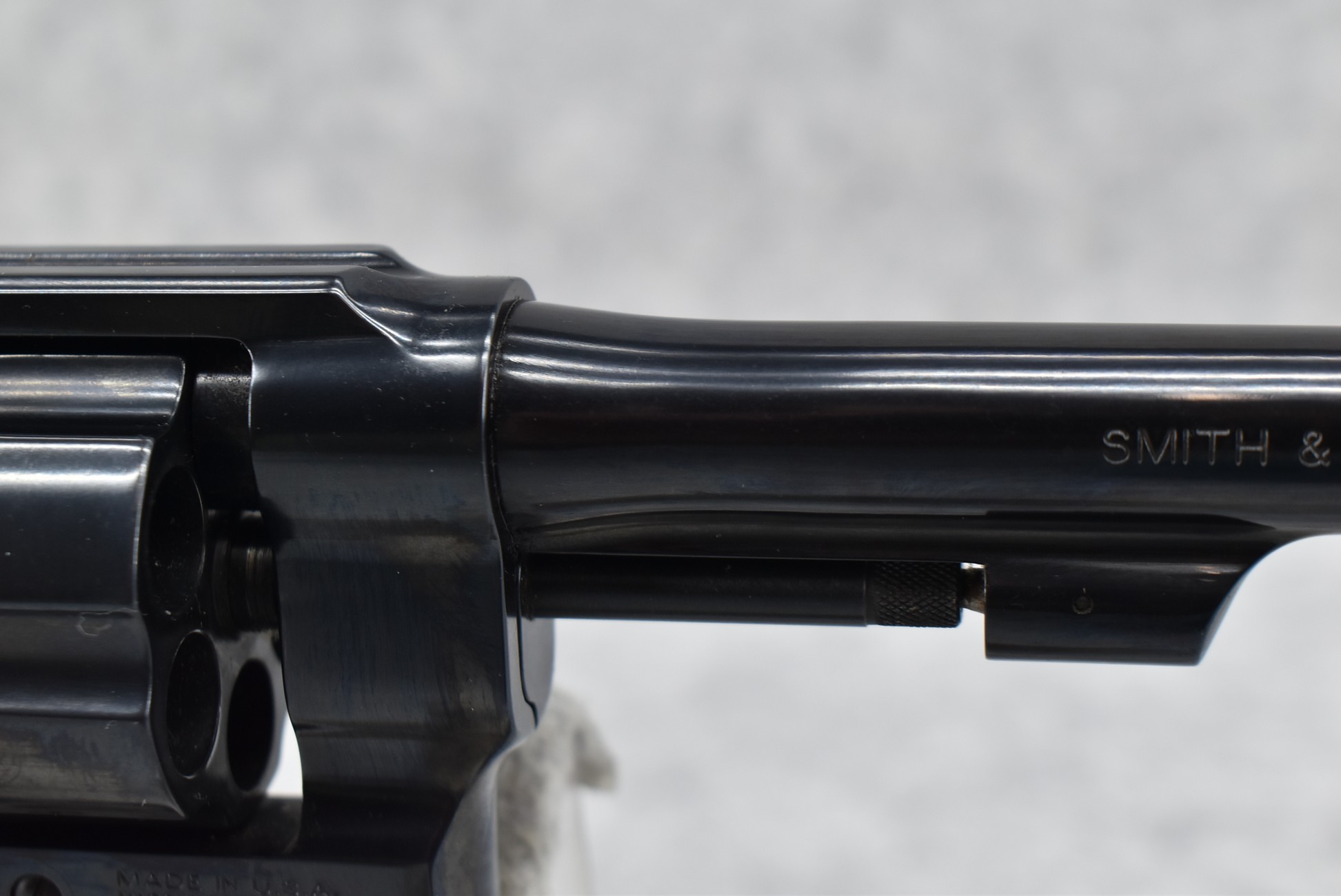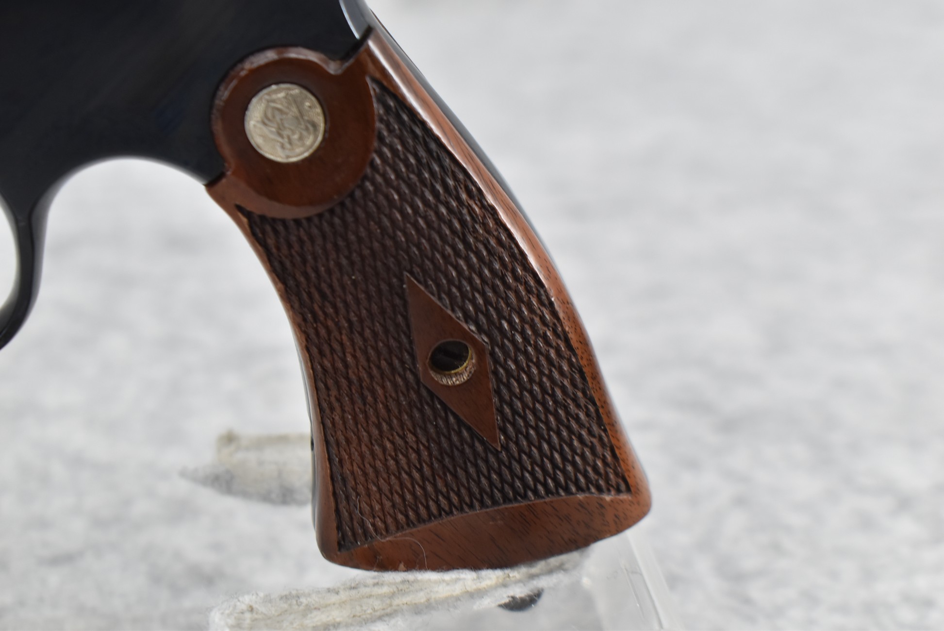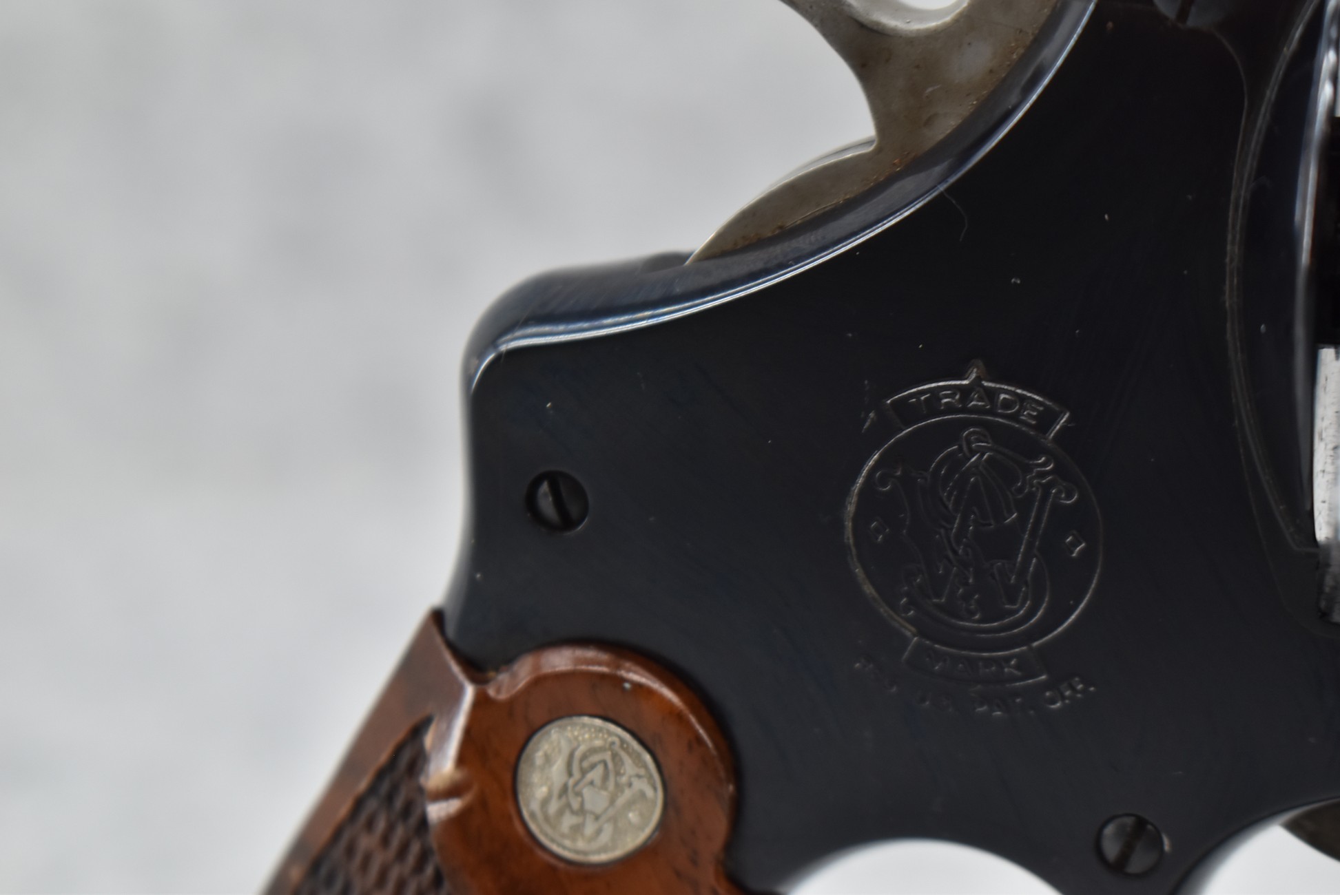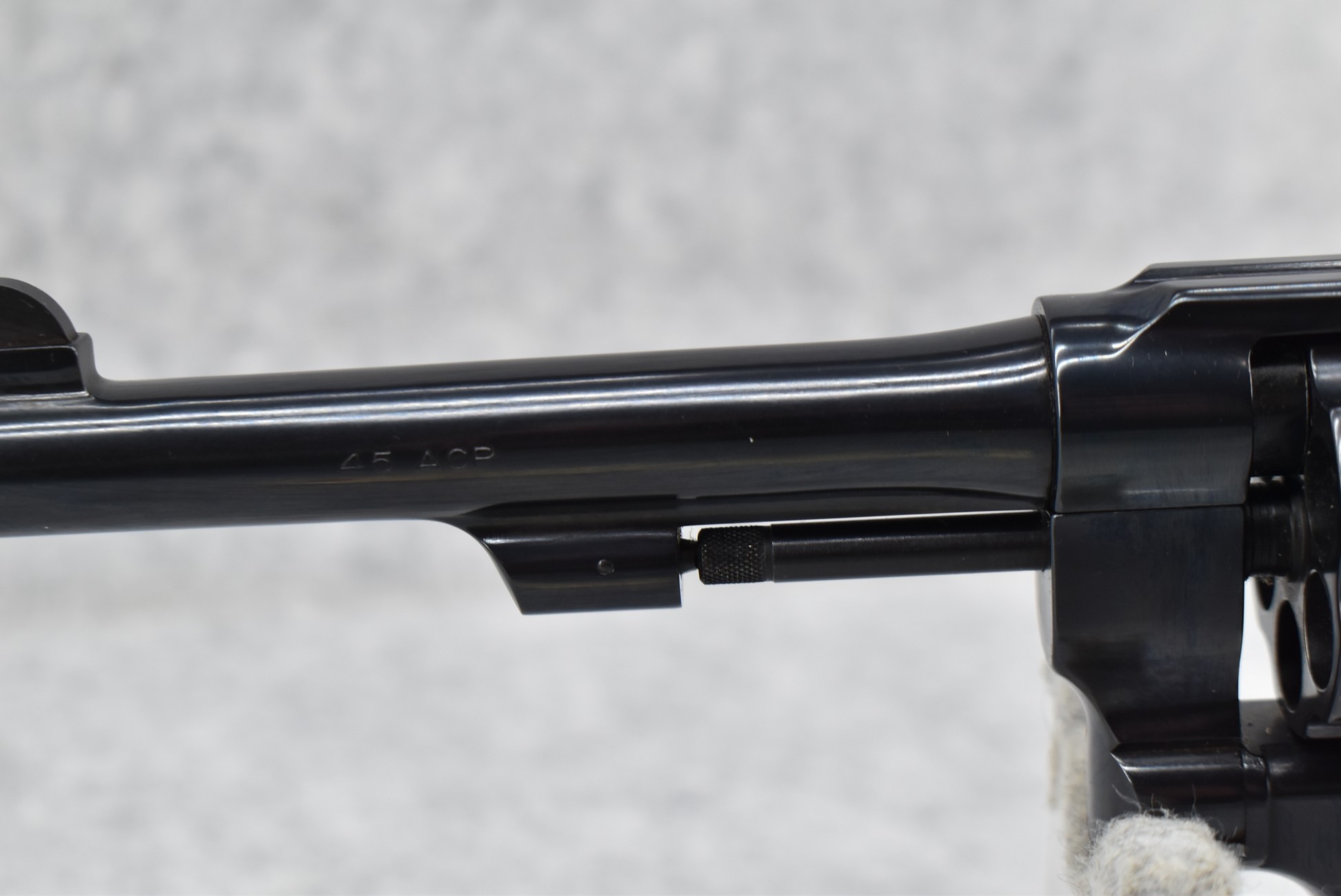 18R. Smith & Wesson – Mod. 22-4 Classic Model of 1917 – 45 Auto Cal. Double Action Revolver – w/5.5” Barrel w/Front Blade & Rear Grooved Sights – Blued Finish – w/Factory Checkered Diamond Wood Grip w/S&W Medallion – Unfired w/Factory Hard Case, Moon Clips & Manual