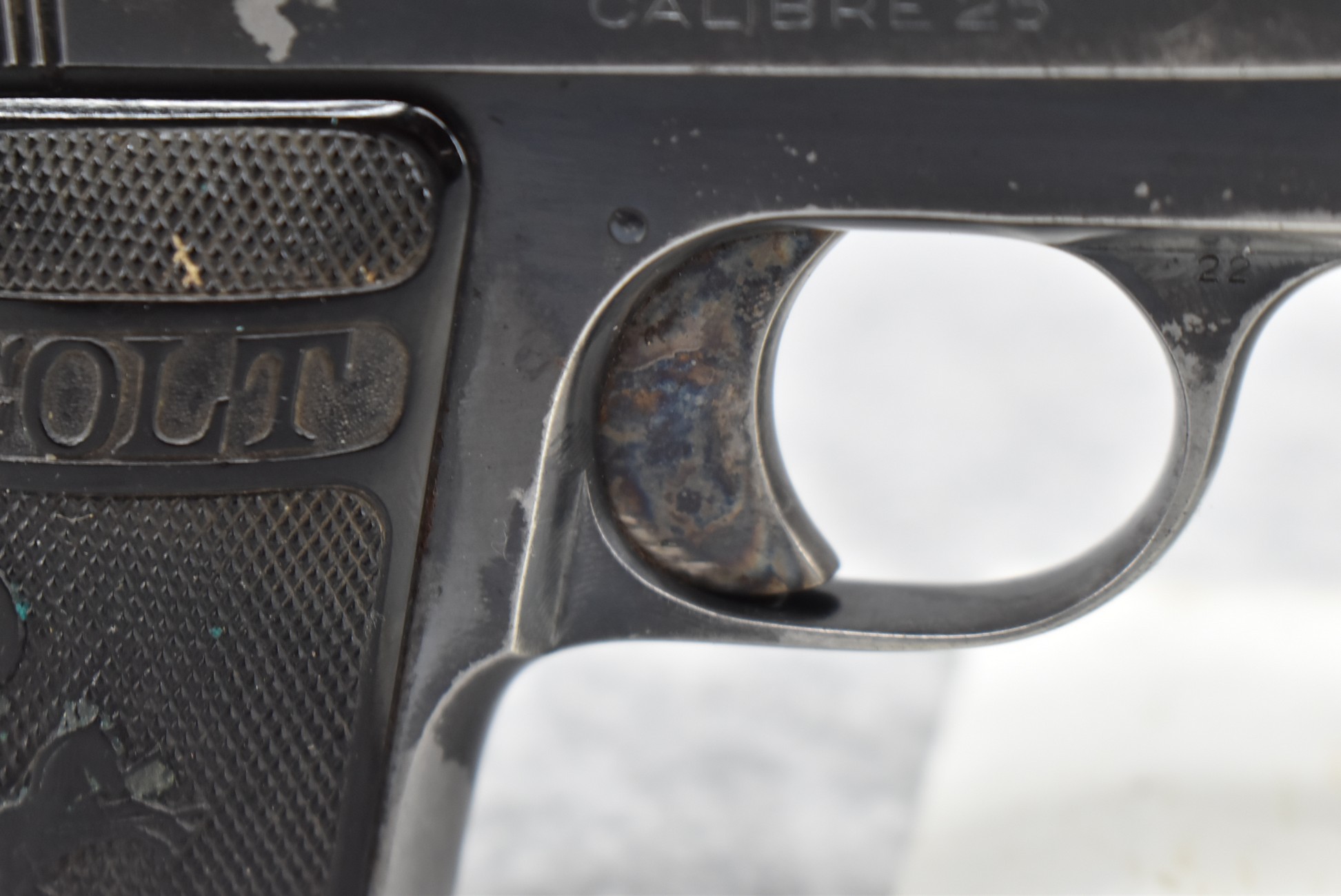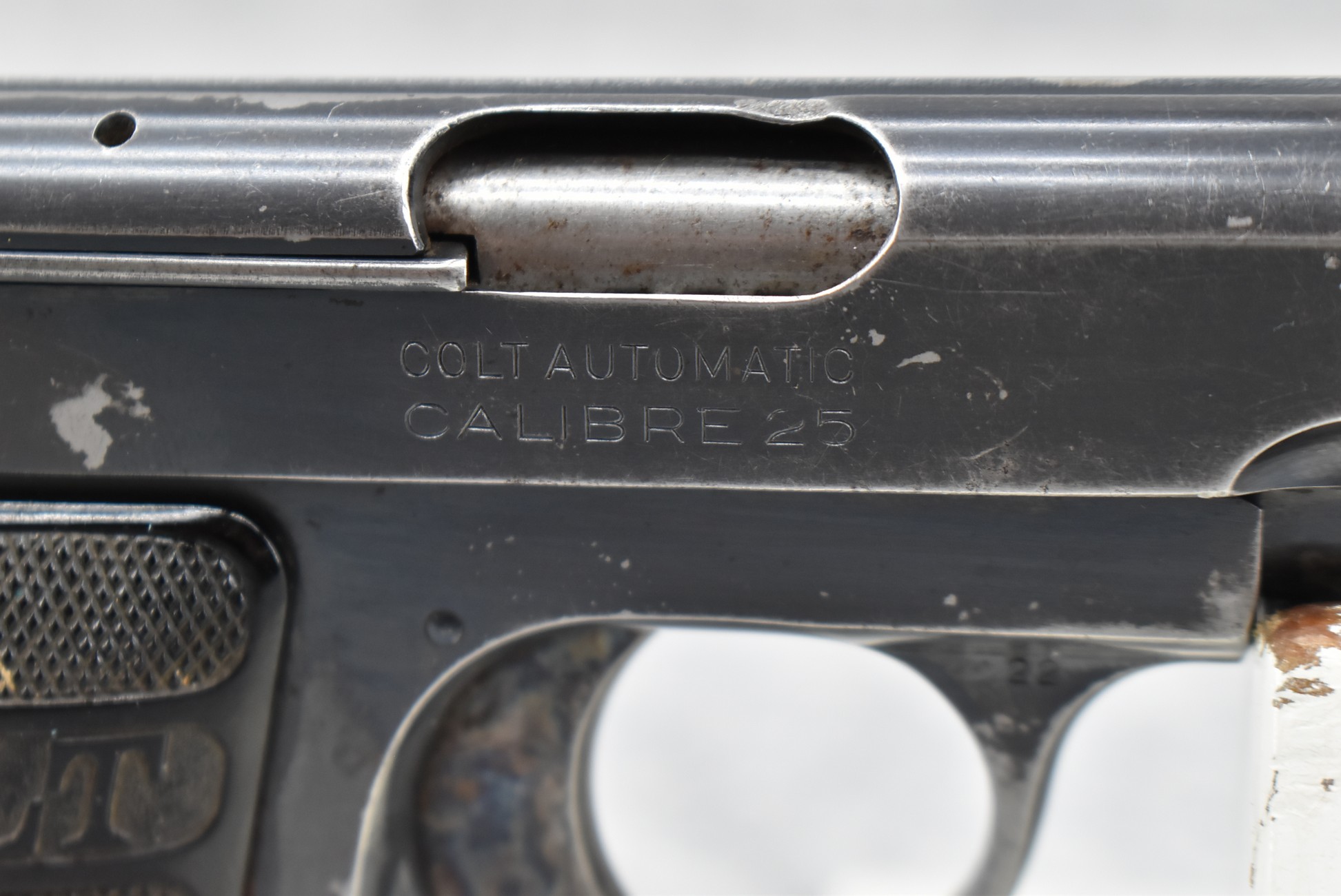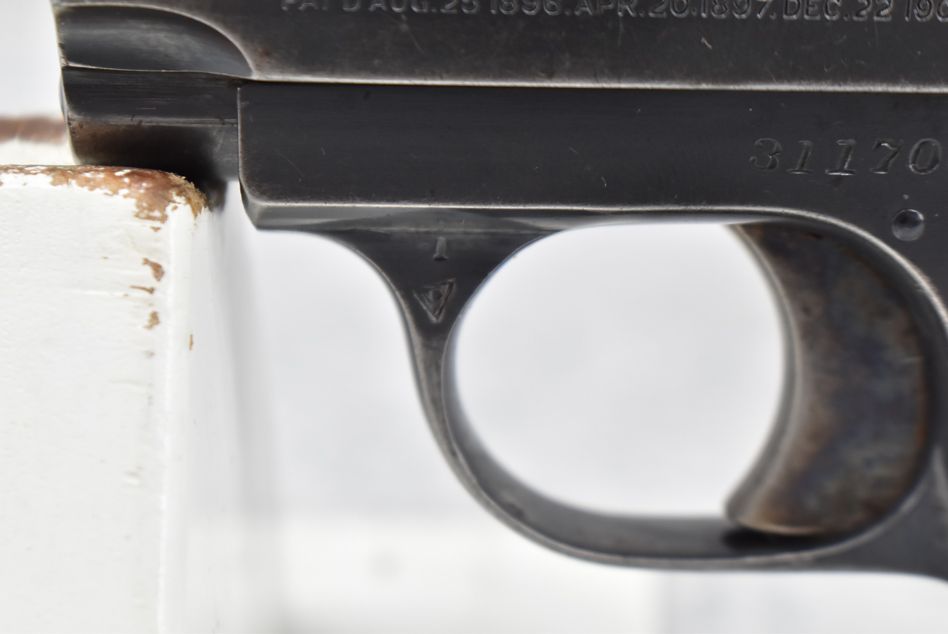 191R. Colt – Mod. 1908 Pocket – 25 Auto Cal. Semi-Auto Pistol – w/2” Barrel w/Sights – Blued Finish – w/Factory Checkered Hard Rubber Colt Grips w/Rampant Colt – w/Factory Two-Tone Magazine – Mfg. 1921