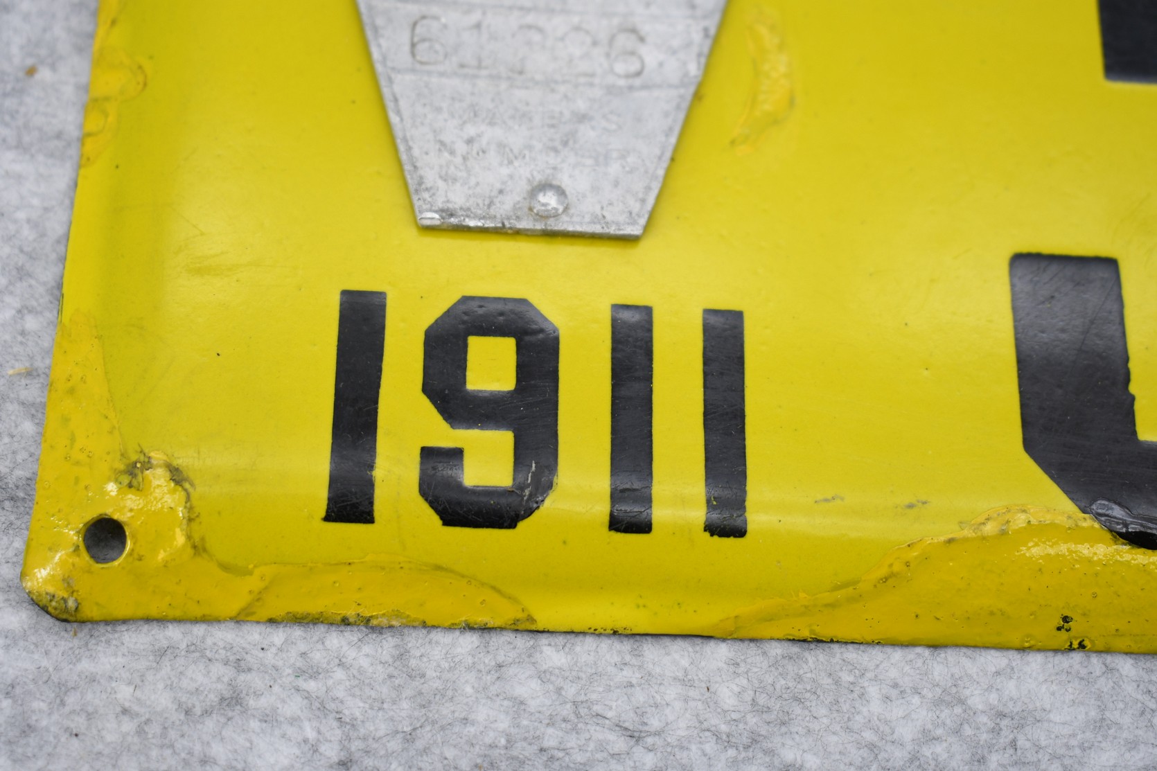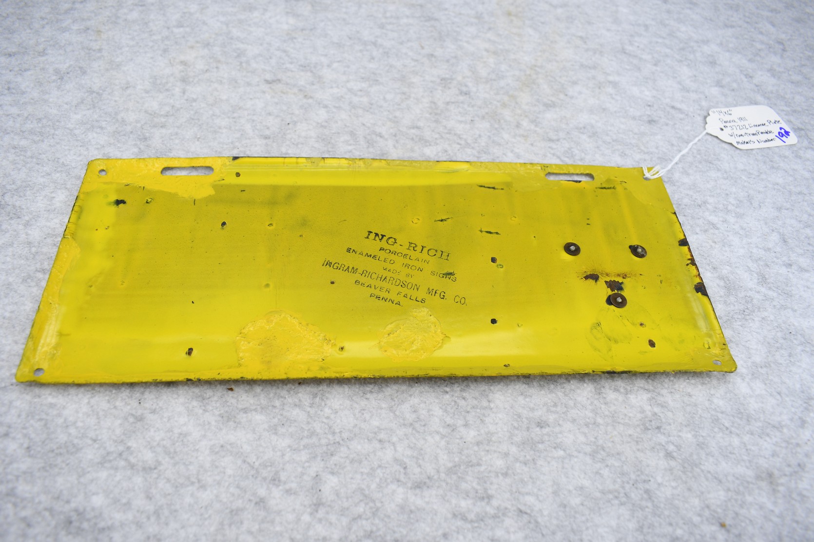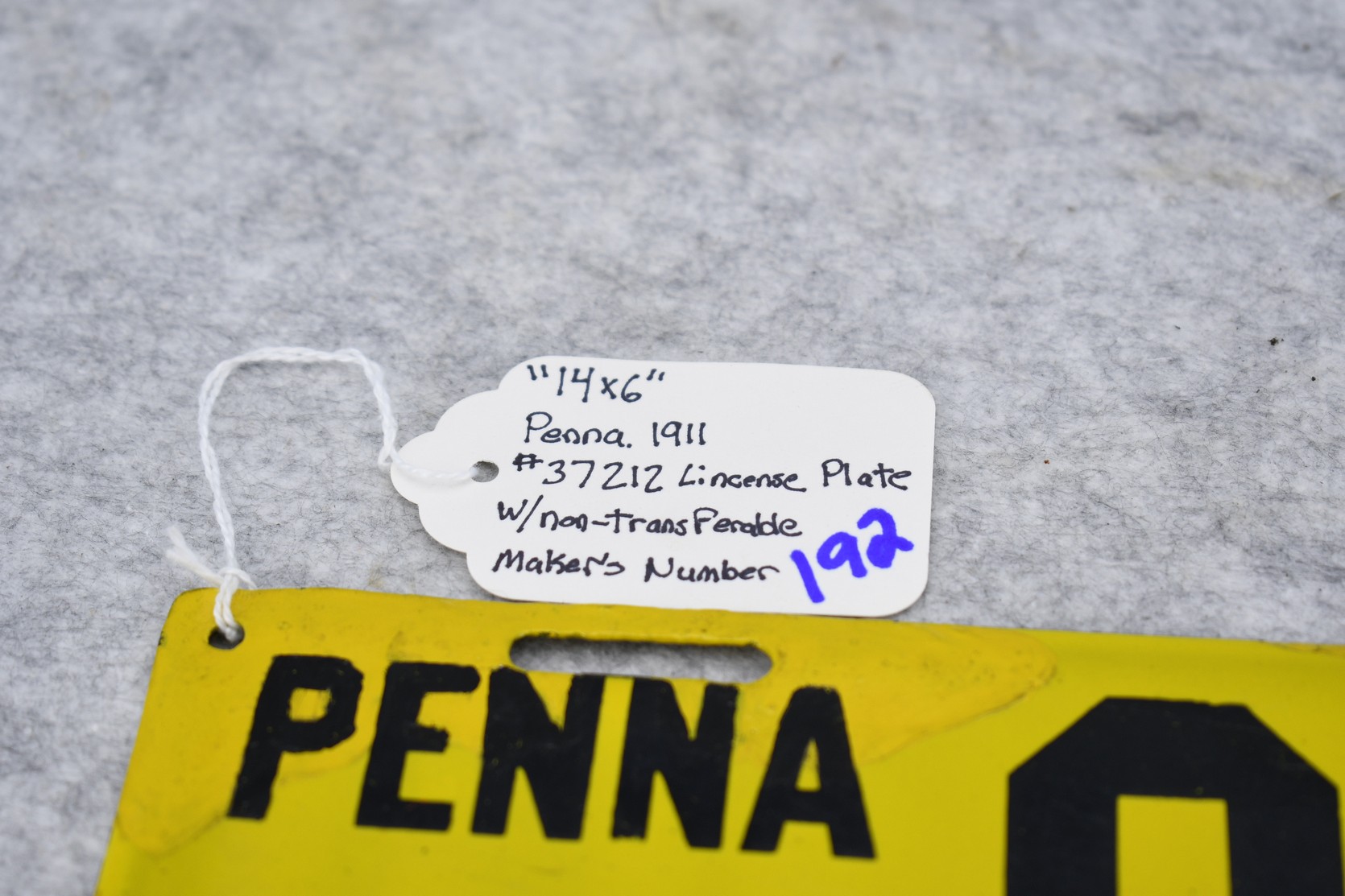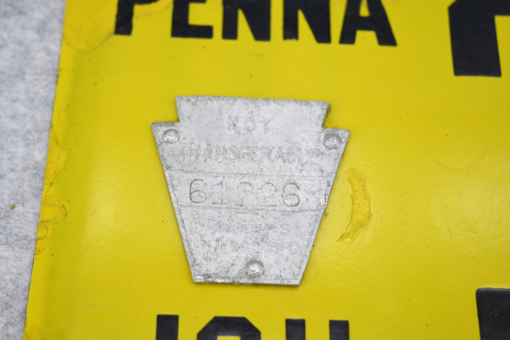 192. Penna. 1911 Porcelain Keystone License Plate – Plate has Nontransferable Makers Number – Plate has been Touched Up