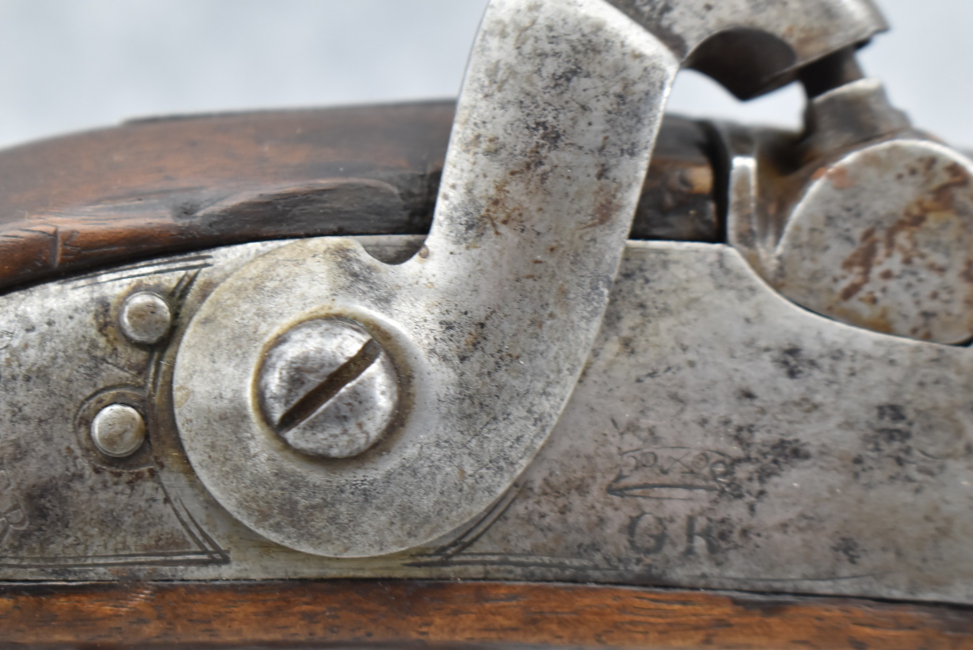 192. Tower – Mod. Muskatoon-Blunderbuss – Percussion Black Powder Gun – w/22” Round Barrel w/Flared Muzzle – Brown Gray Finish – w/Straight Wood Stock w/Brass Trigger Guard & Brass Butt Plate Marked “EFM” & “B” Over “36” – #763 Marked on Stock That Matches Same # on Lock 763 – Lock is Marked “Tower” & “G-R” Under Crown