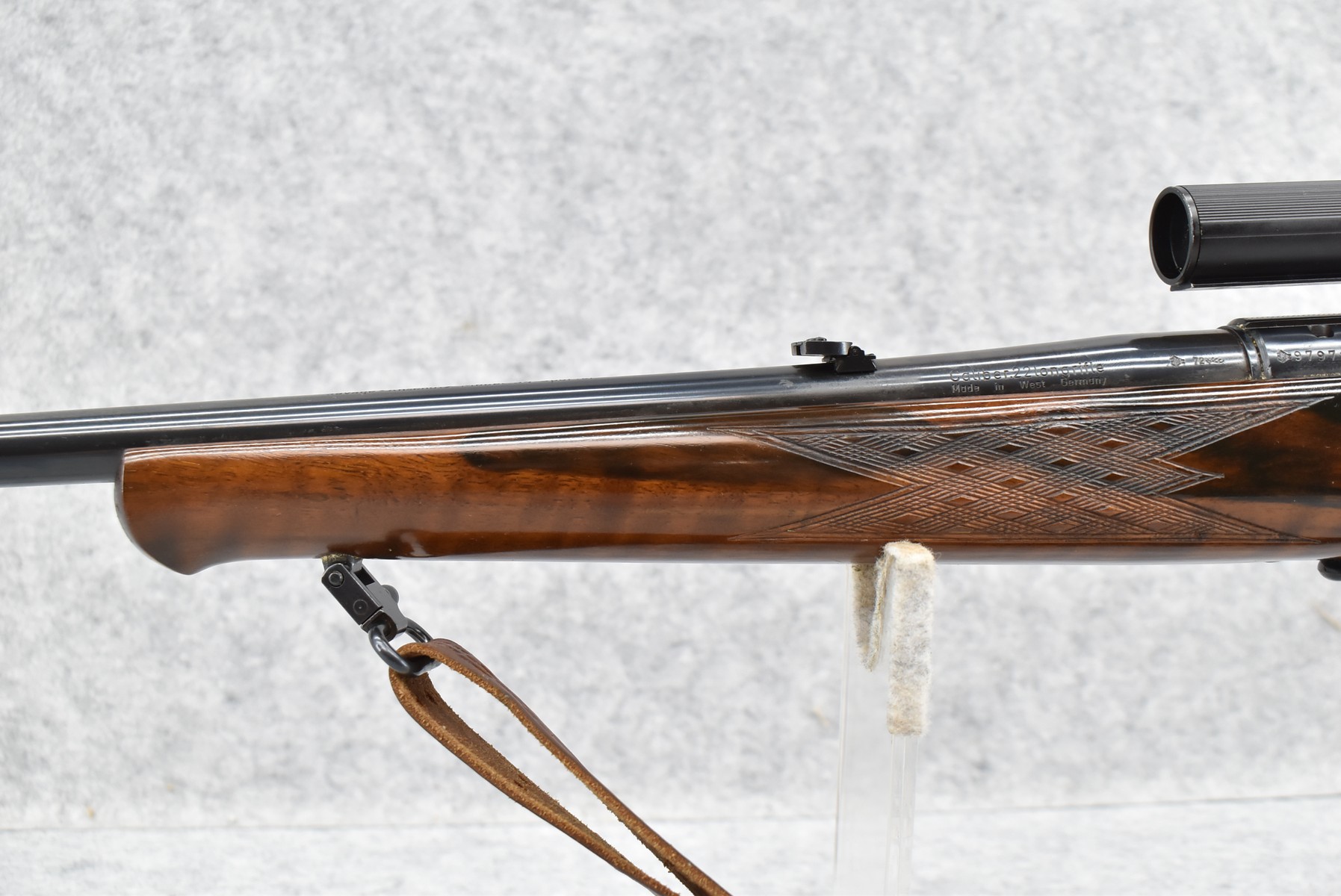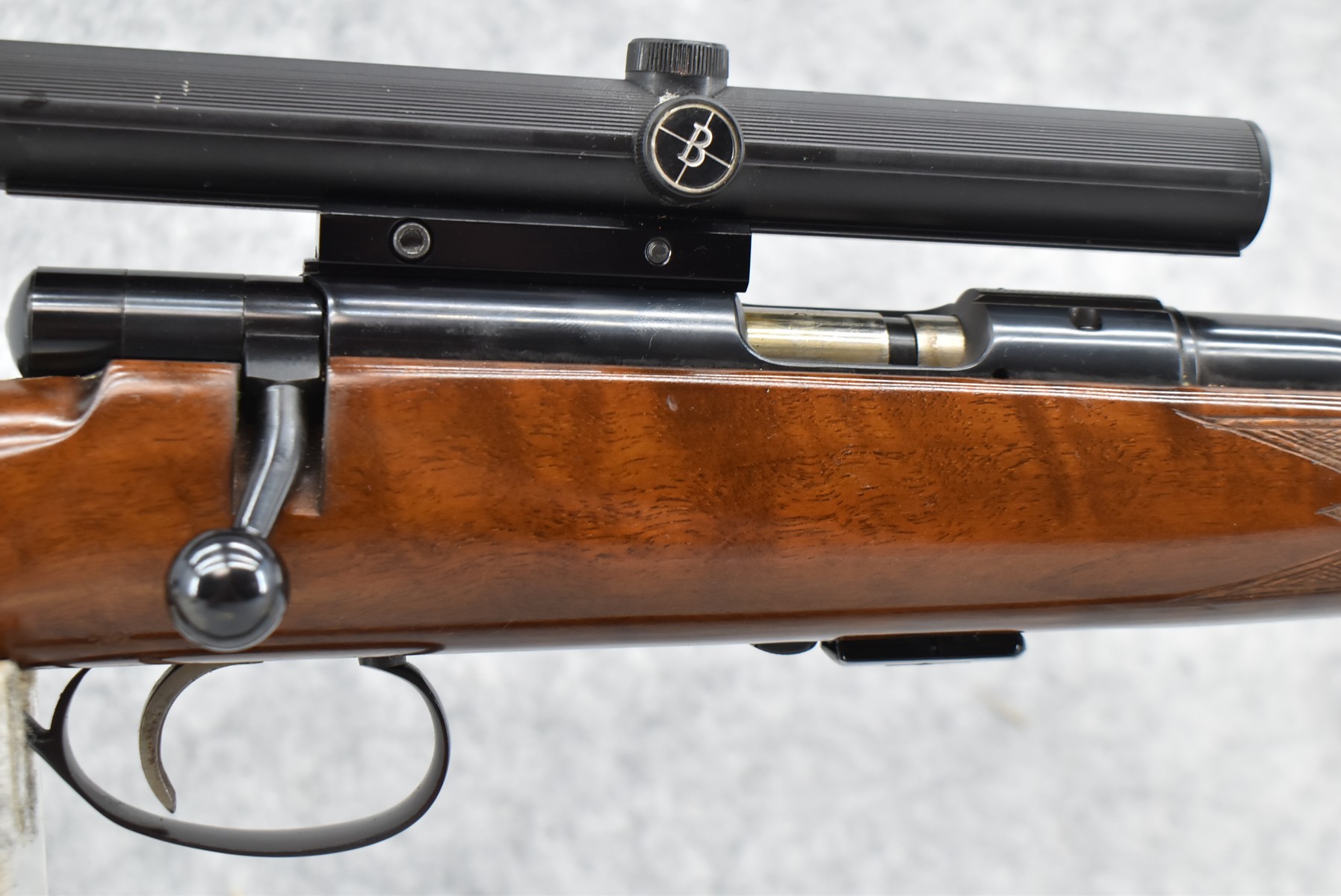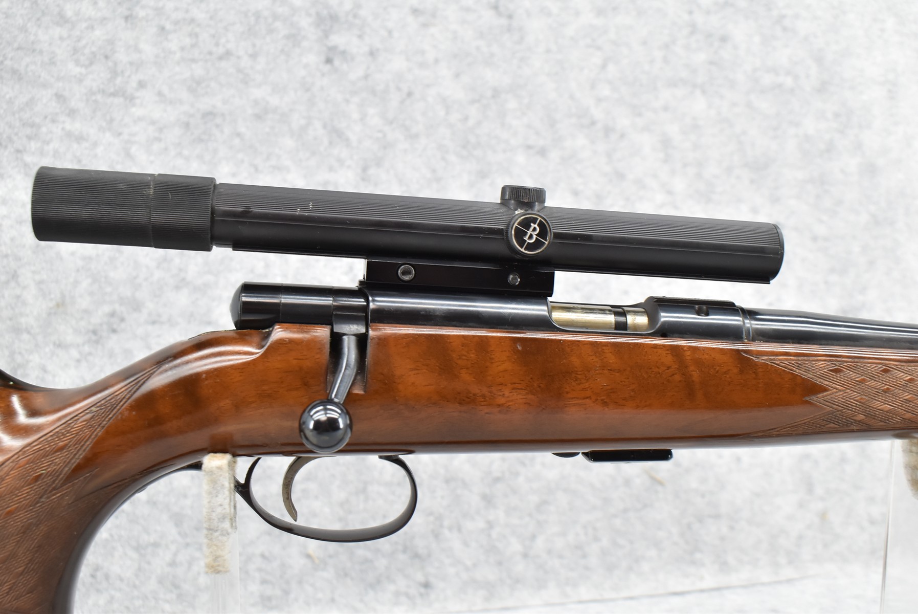 192R. Savage-Anchutz – Mod. 54 Sporter – 22 Long Rifle Cal. Bolt Action Rifle – w/24” Barrel w/Hooded Front & Flip-Up Adj. Rear Sights – Blued Finish – w/Checkered Capped Rosewood Pistol Grip Wood Stock w/Factory Butt Plate – w/Factory 5Rd Mag – w/Leather Sling – w/Bushnell Scope Chief 4x Scope