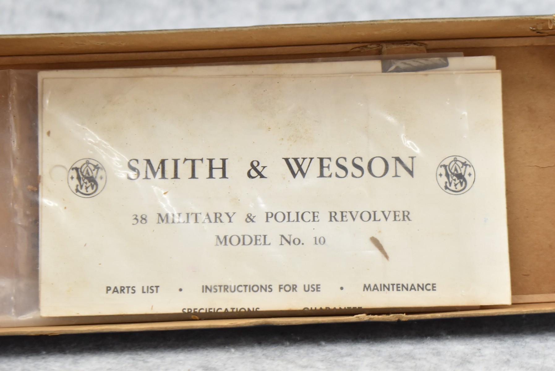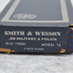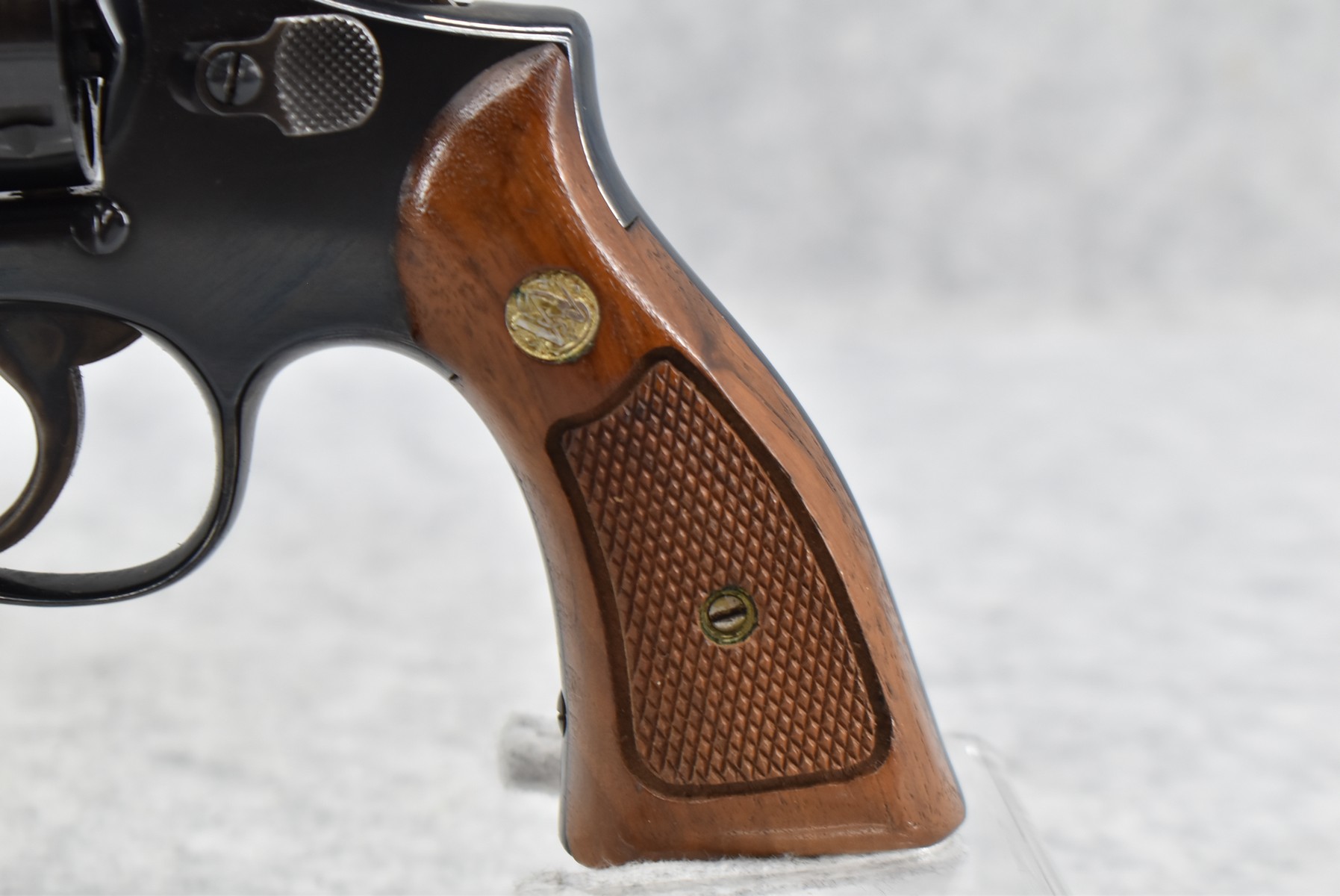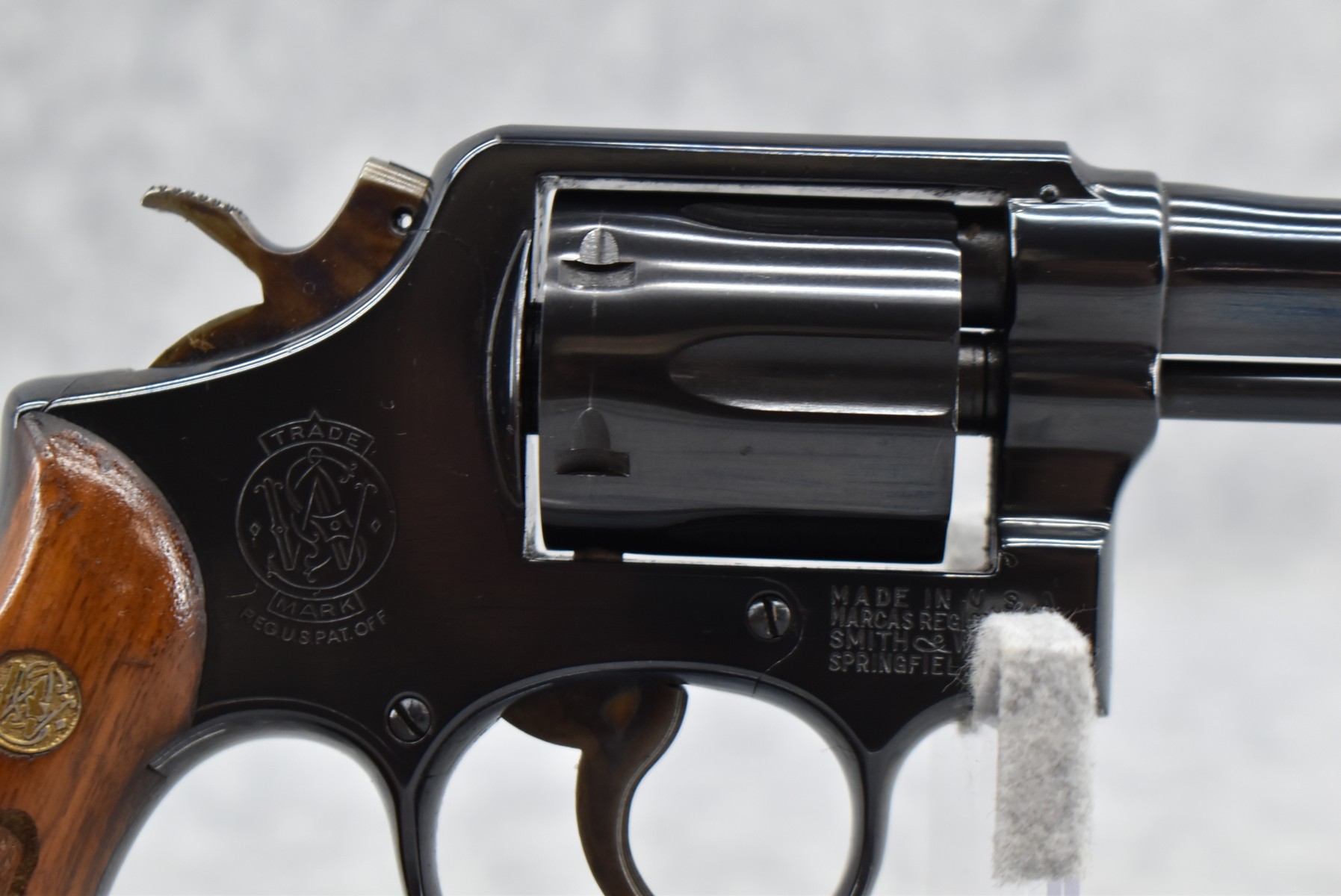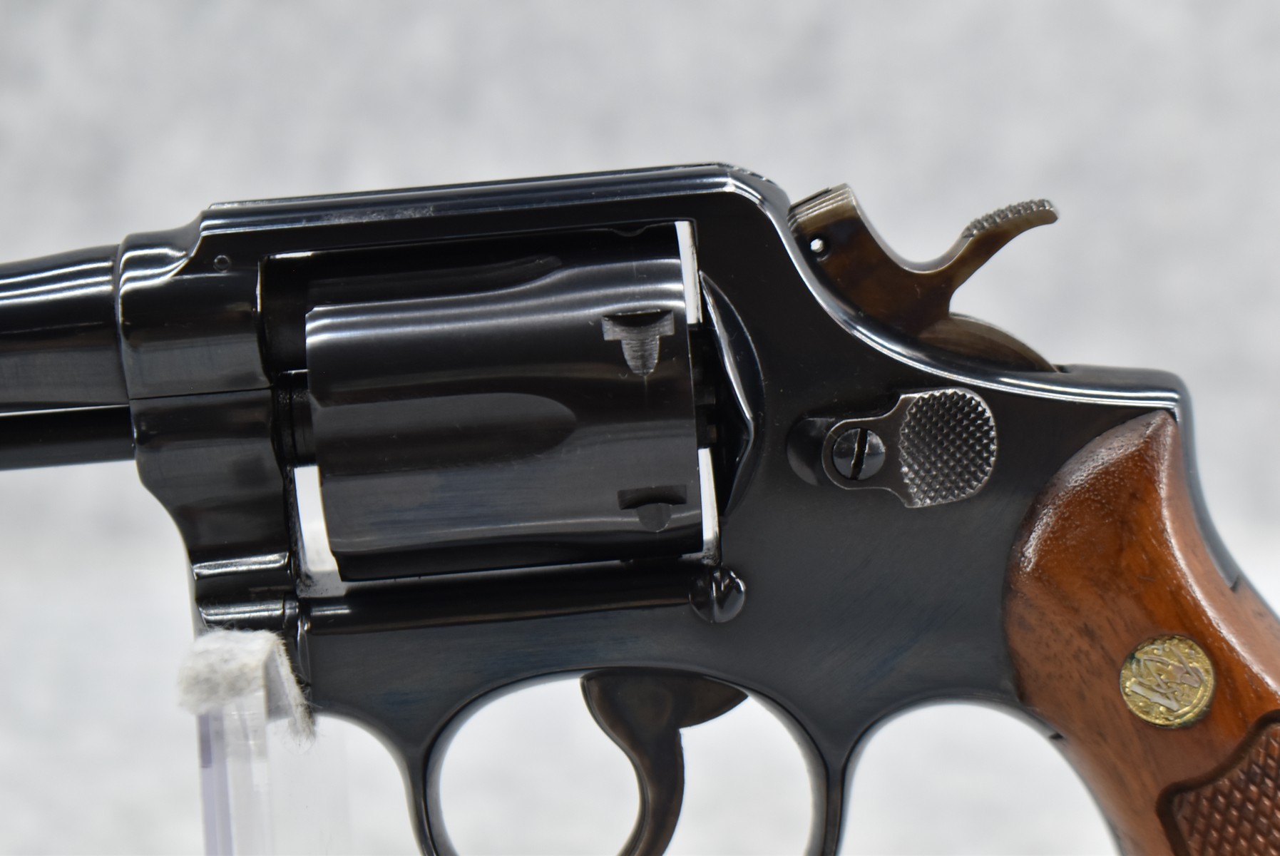 192R. Smith & Wesson – Mod. 10-5 (38 M&P) – 38 S&W Spl. Cal. Double Action Revolver – w/5” Barrel w/Blade Front & Notch Rear Sights – Blued Finish – w/S&W Medallion Checkered Wood Grips – w/Factory 2pc. Box & Manuals