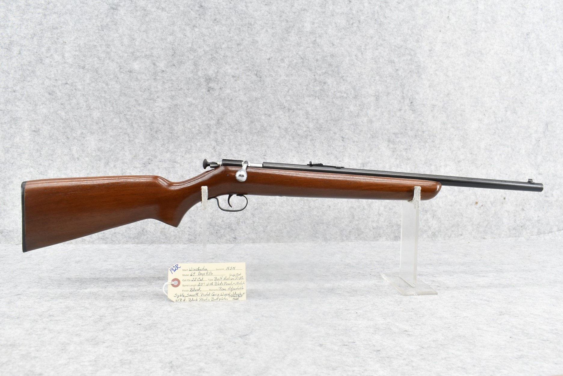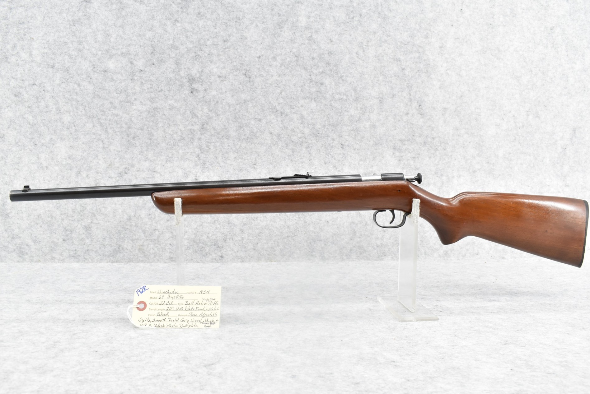192R. Winchester – Mod. 67 Boys Rifle (Chrome Bolt Model) – 22 Cal. Single Shot Bolt Action Rifle – w/20” Barrel w/Blade Front & Notch Rear Adj. Sights – Blued Finish – w/Smooth Pistol Grip Wood Stock w/Factory Butt Plate