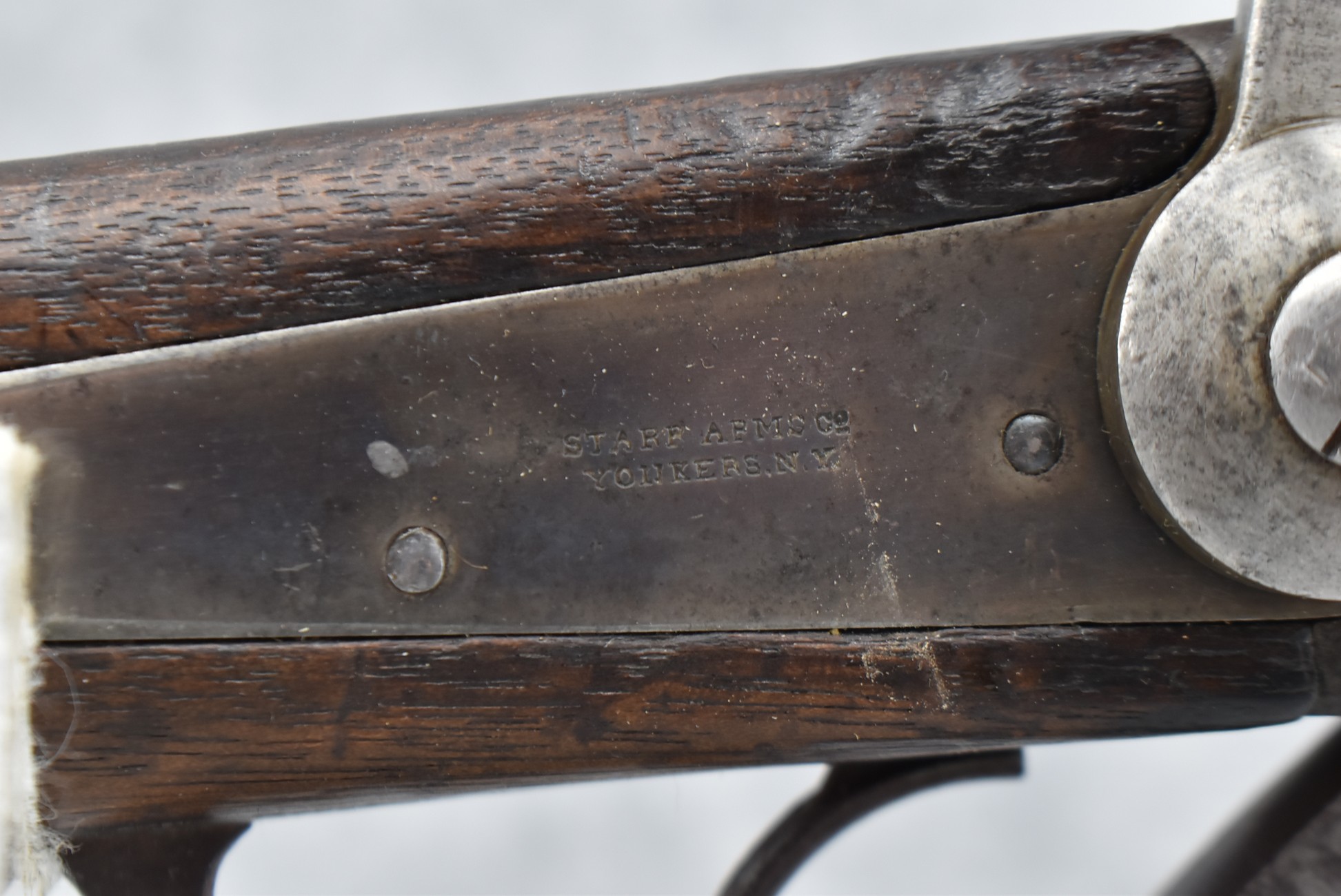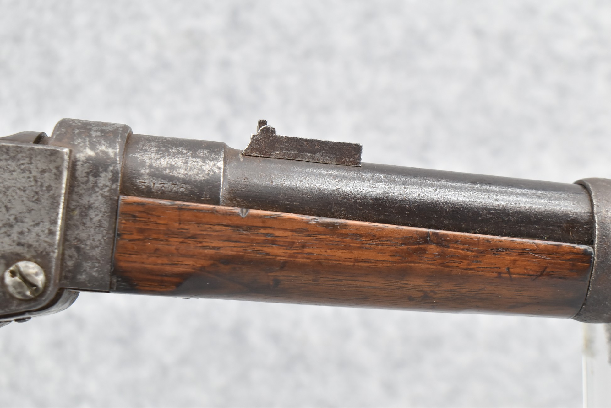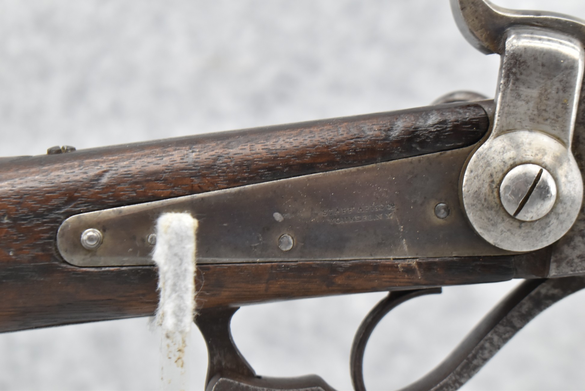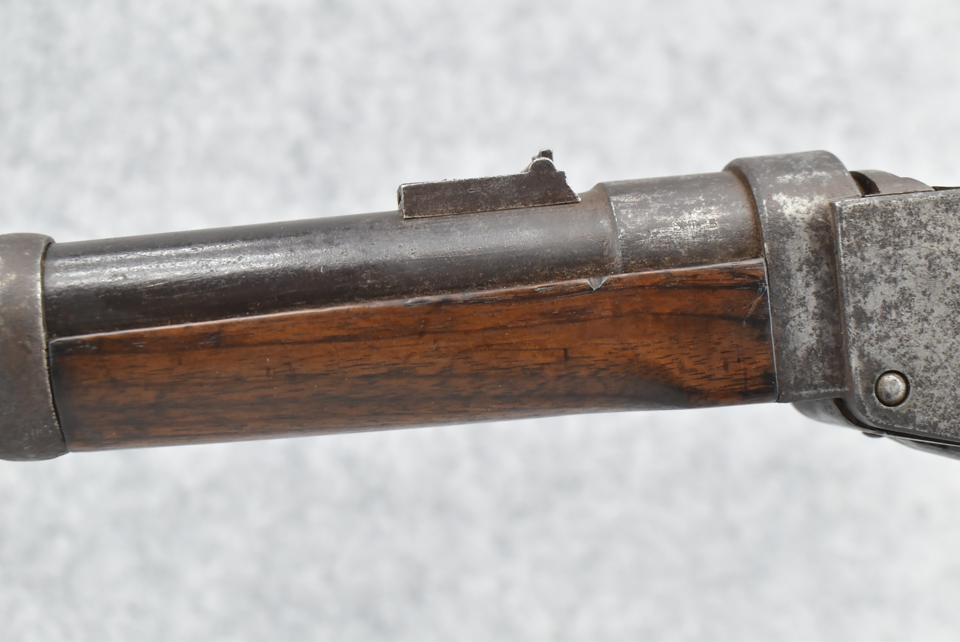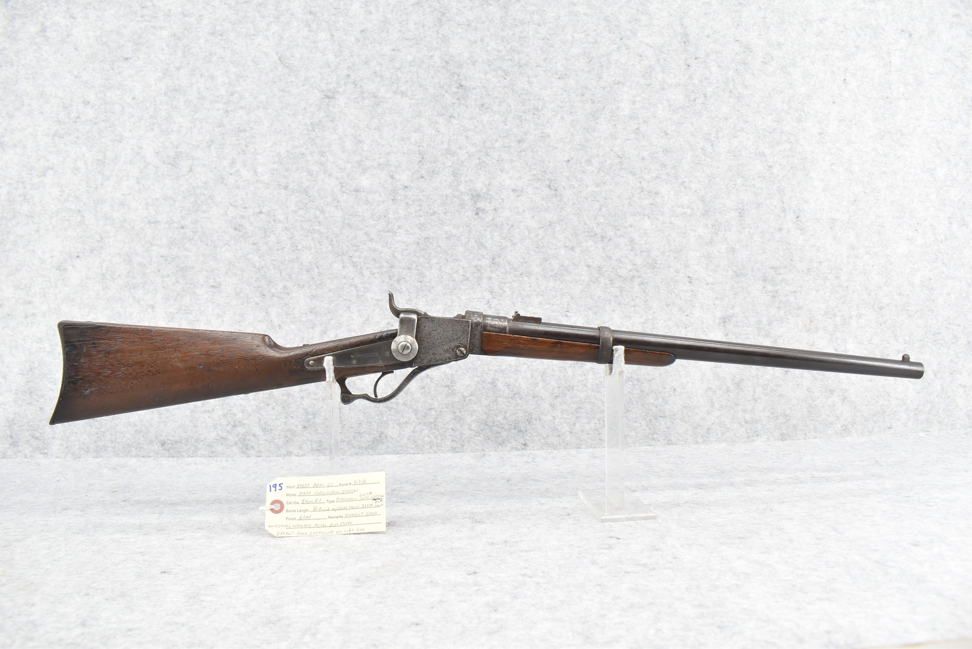 195. Starr Arms Co. – Mod. Starr Percussion Carbine – 54 RF Cal. Percussion Breech Load Carbine – w/21” Round Barrel w/Blade Front & 2-Leaf Factory Rear Sights – Gray Finish – w/Straight Grip Wood Stocks w/Factory Metal Butt Plate – w/2 Faint Stock Cartouches on Left Side – 20,601 Mfg. Between 1862-1865