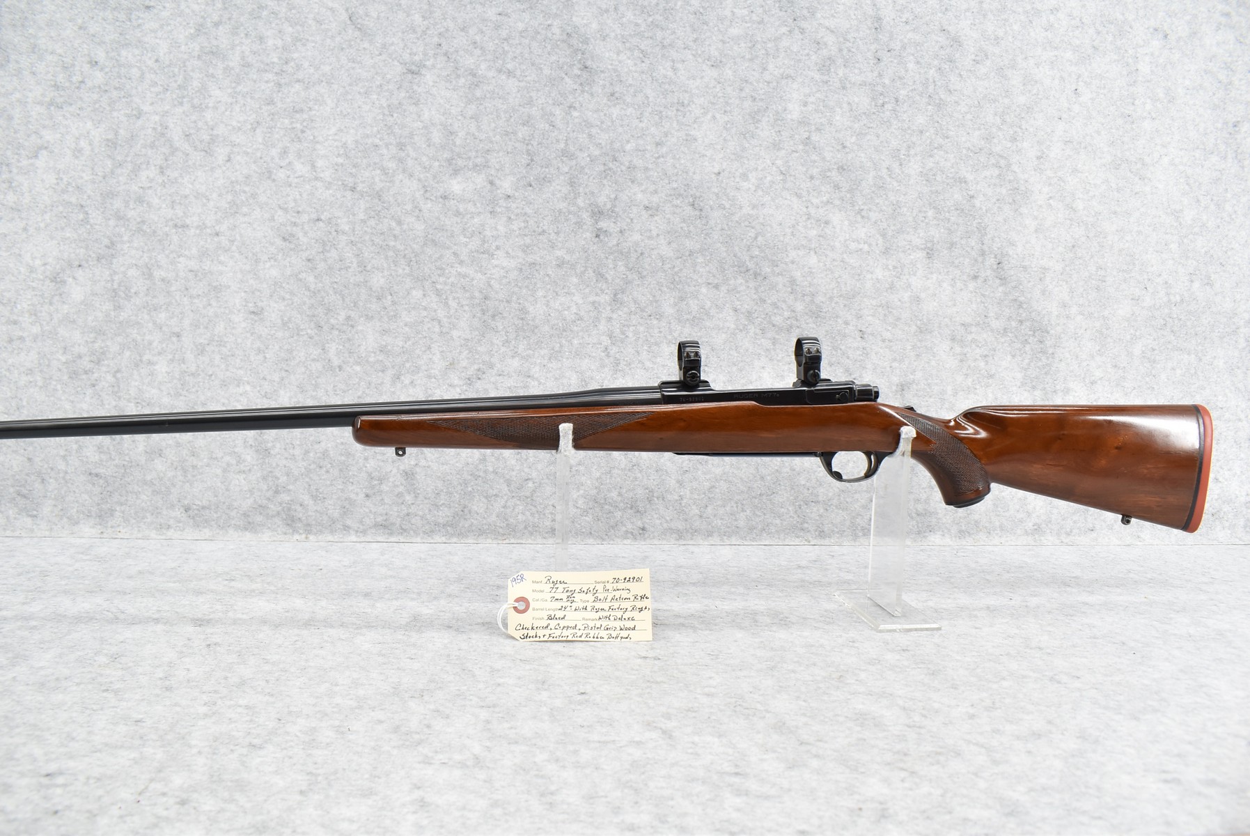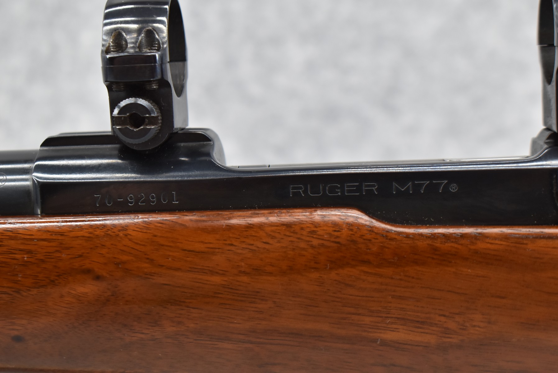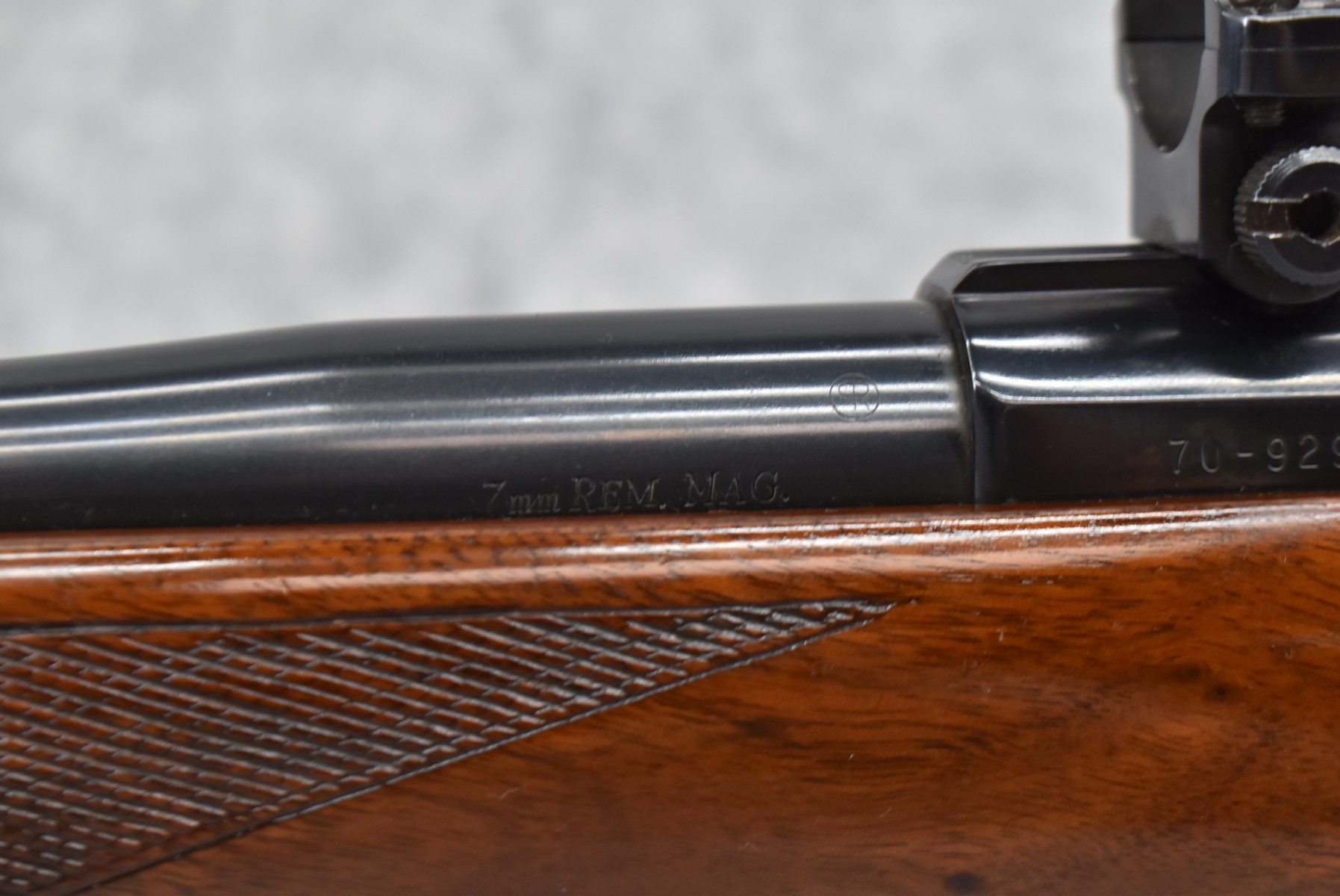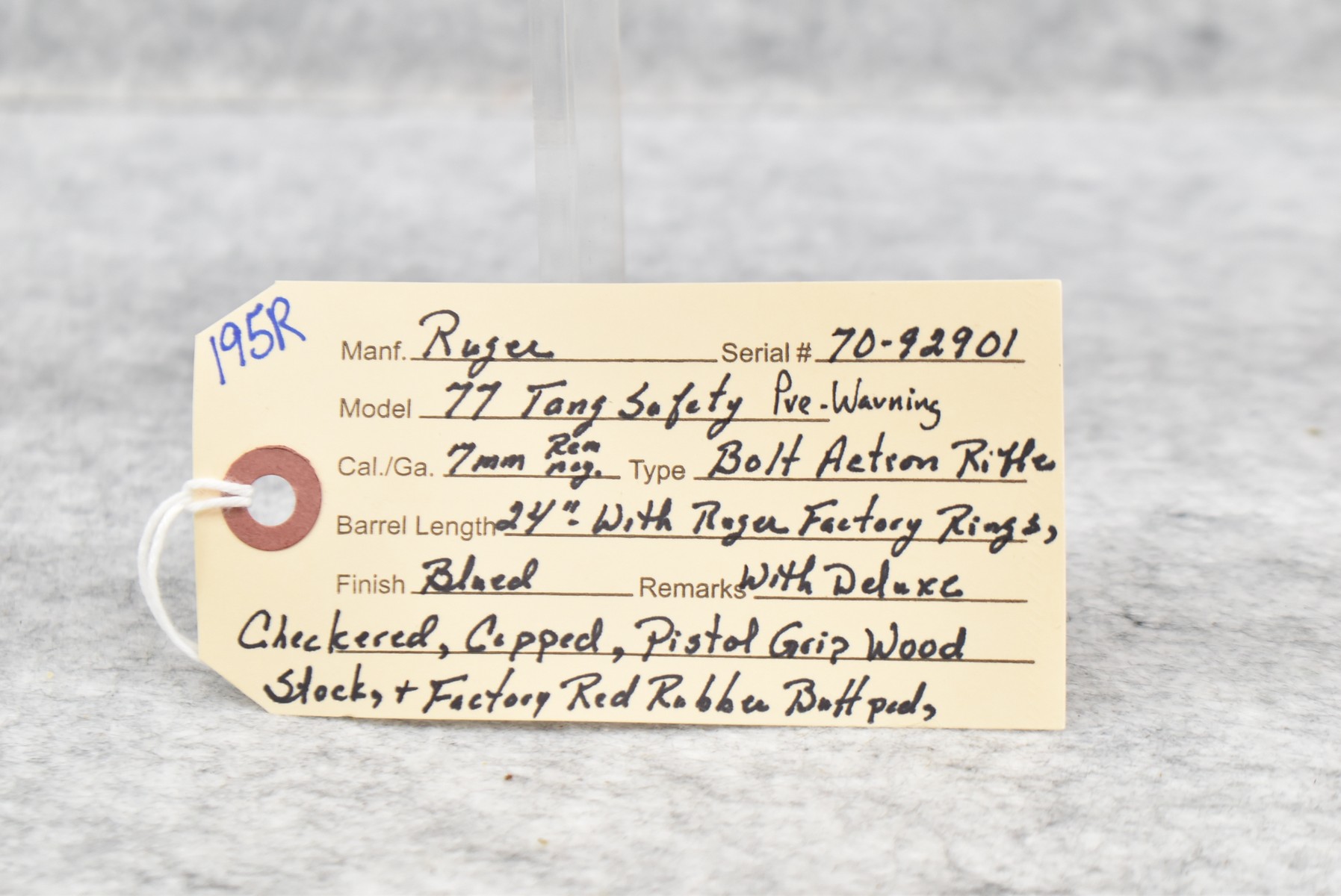 195R. Ruger – Mod. 77 Tang Safety (Pre-Warning) – 7mm Rem. Mag. Cal. Bolt Action Rifle – w/24” Barrel – Blued Finish – w/Deluxe Checkered Pistol Grip Wood Stock w/Factory Butt Pad – w/Ruger Factory Rings