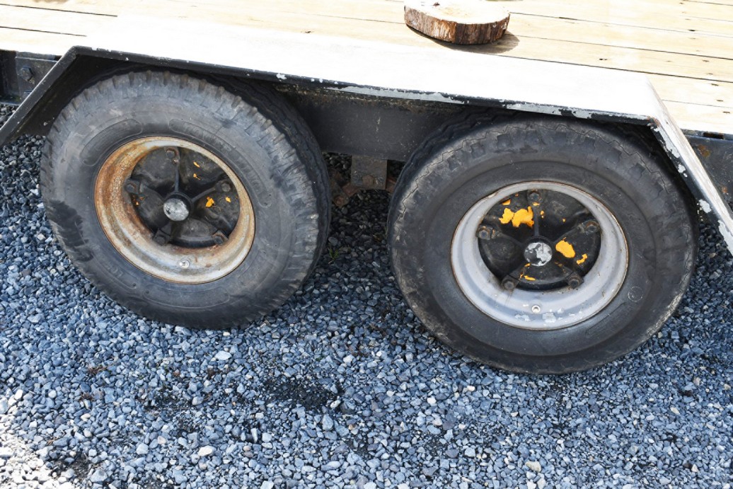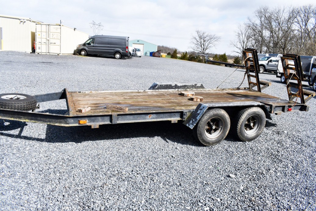 1998 Custom Built 10k GVW 16’ Dual Axle Utility Trailer – Wood Decking w/2 Drop Down Ramps – w/Spare Tire