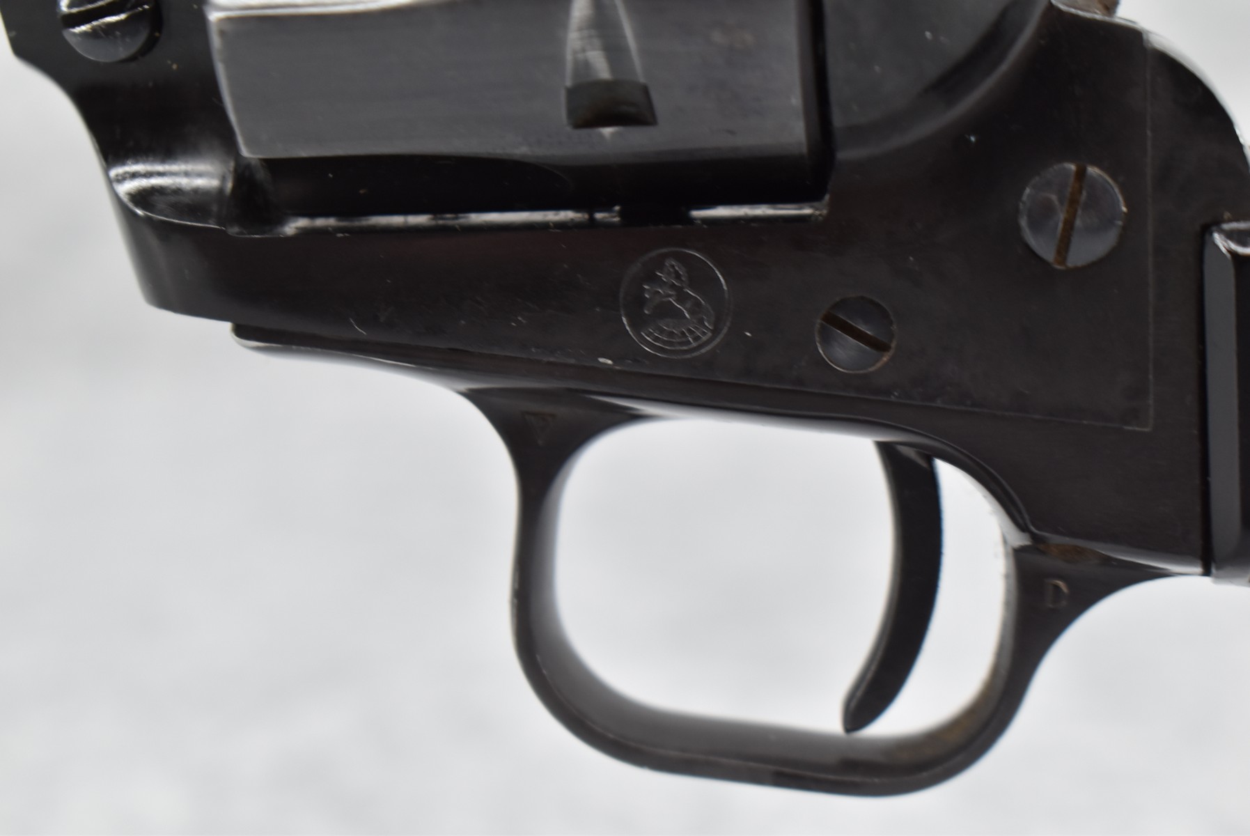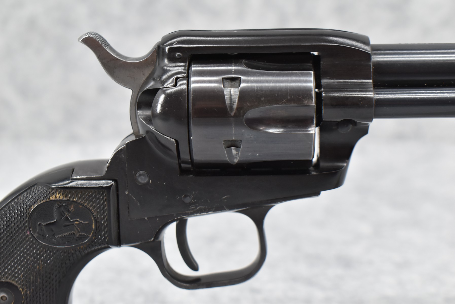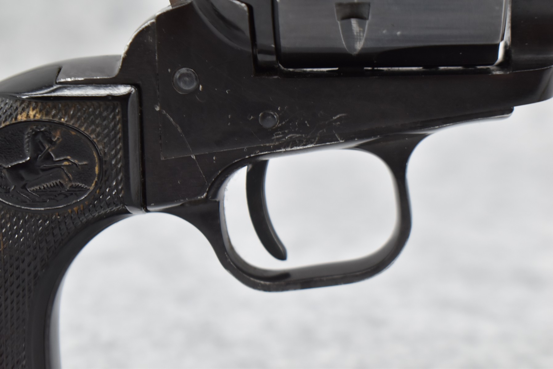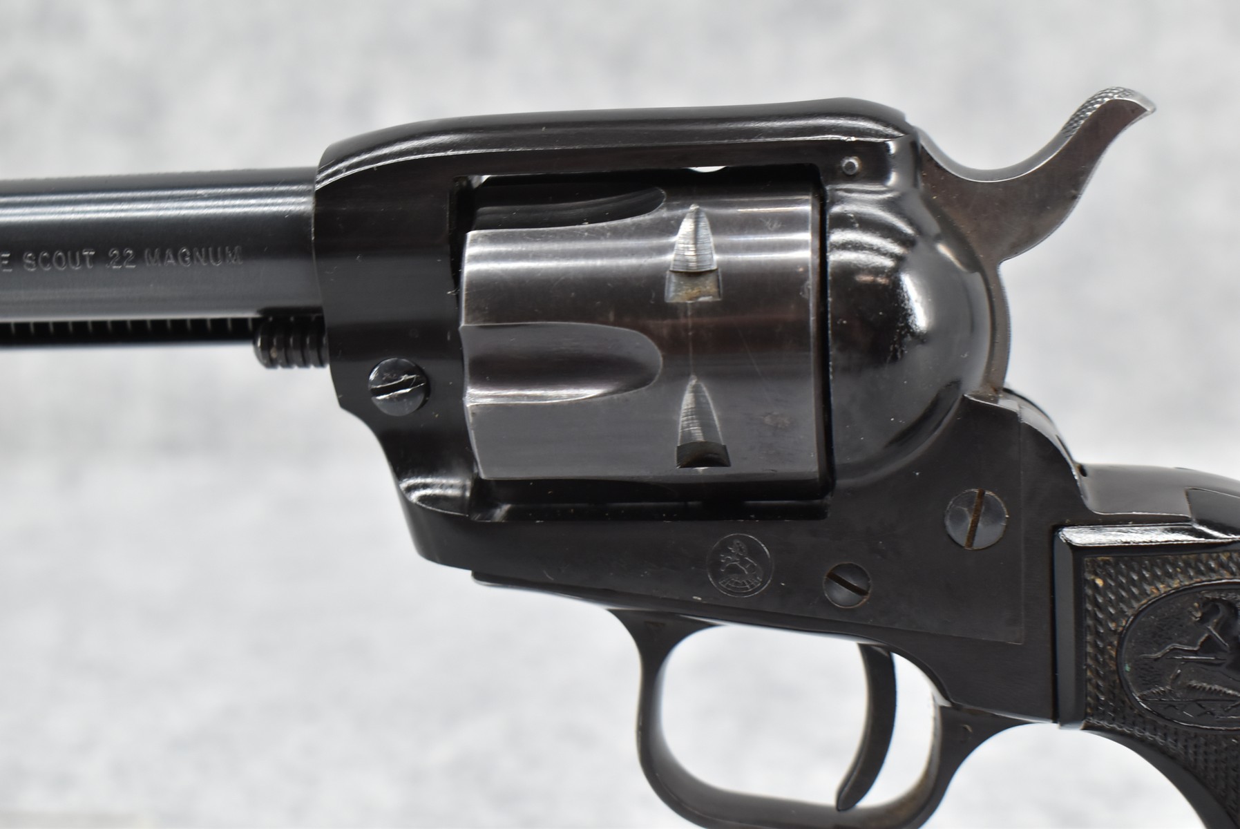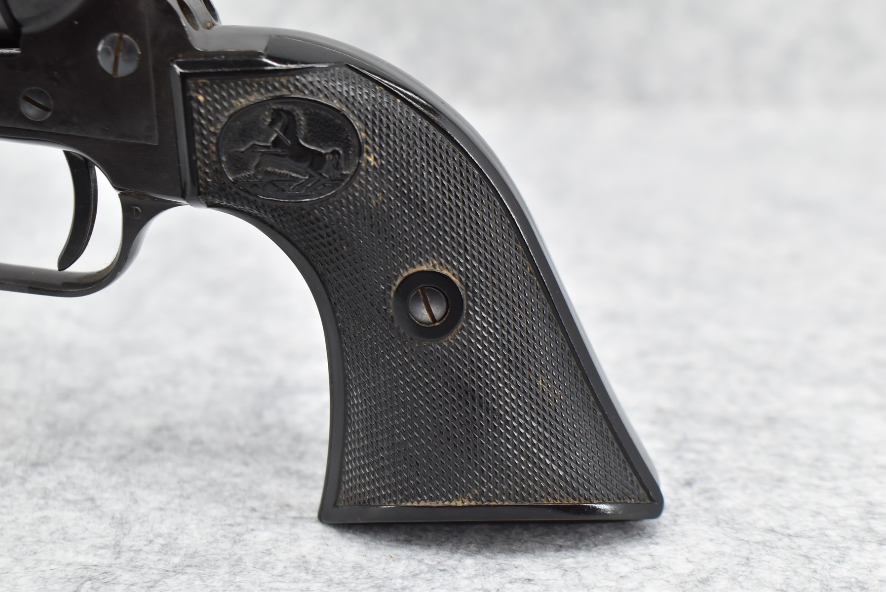 19R. Colt – Mod. Single Action Buntline Scout – 22 WMR Cal. Single Action Revolver – w/9 ½” Barrel w/Blade Front & Notch Rear Sights – Blued Finish – w/Factory Checkered Black Plastic Grips