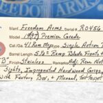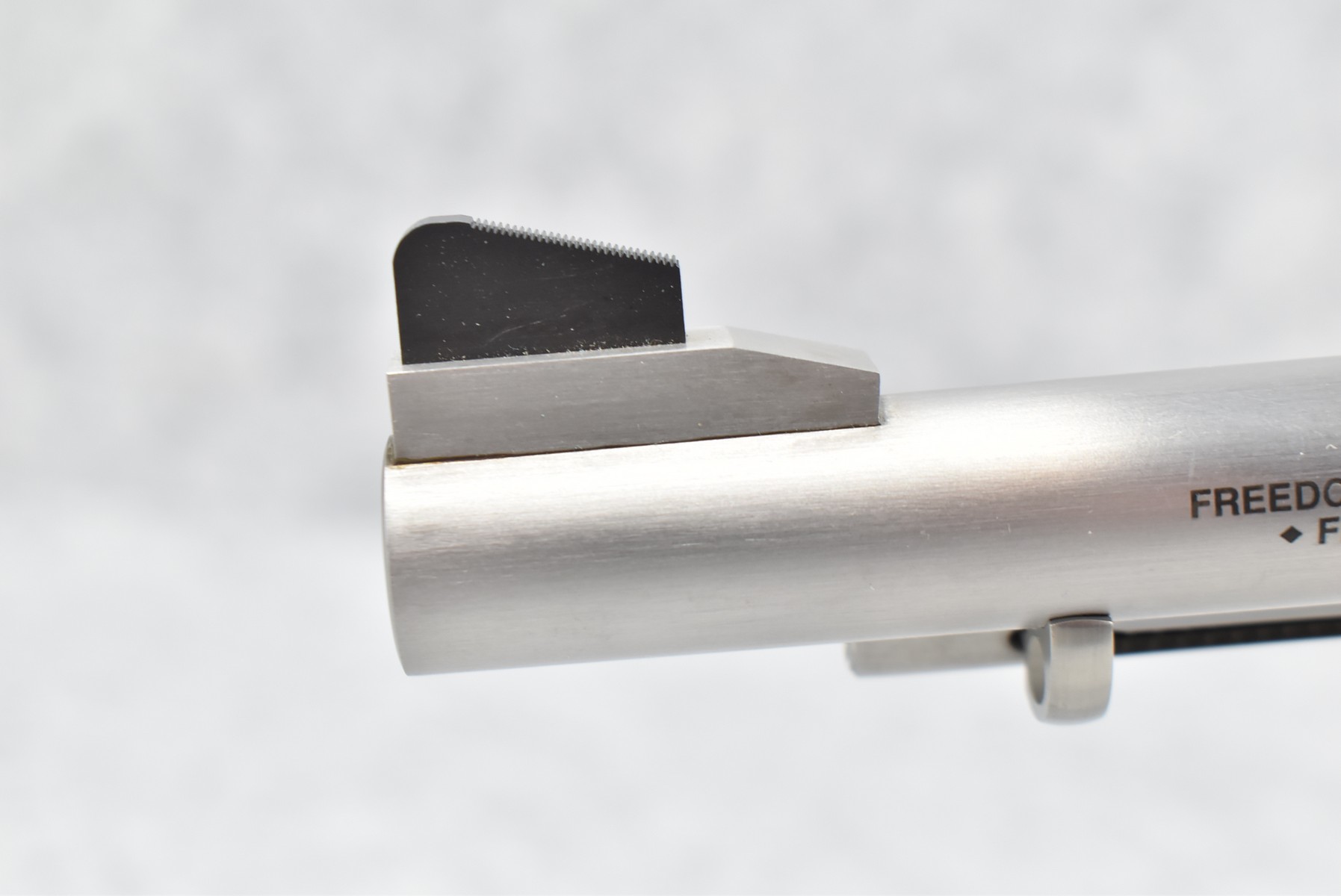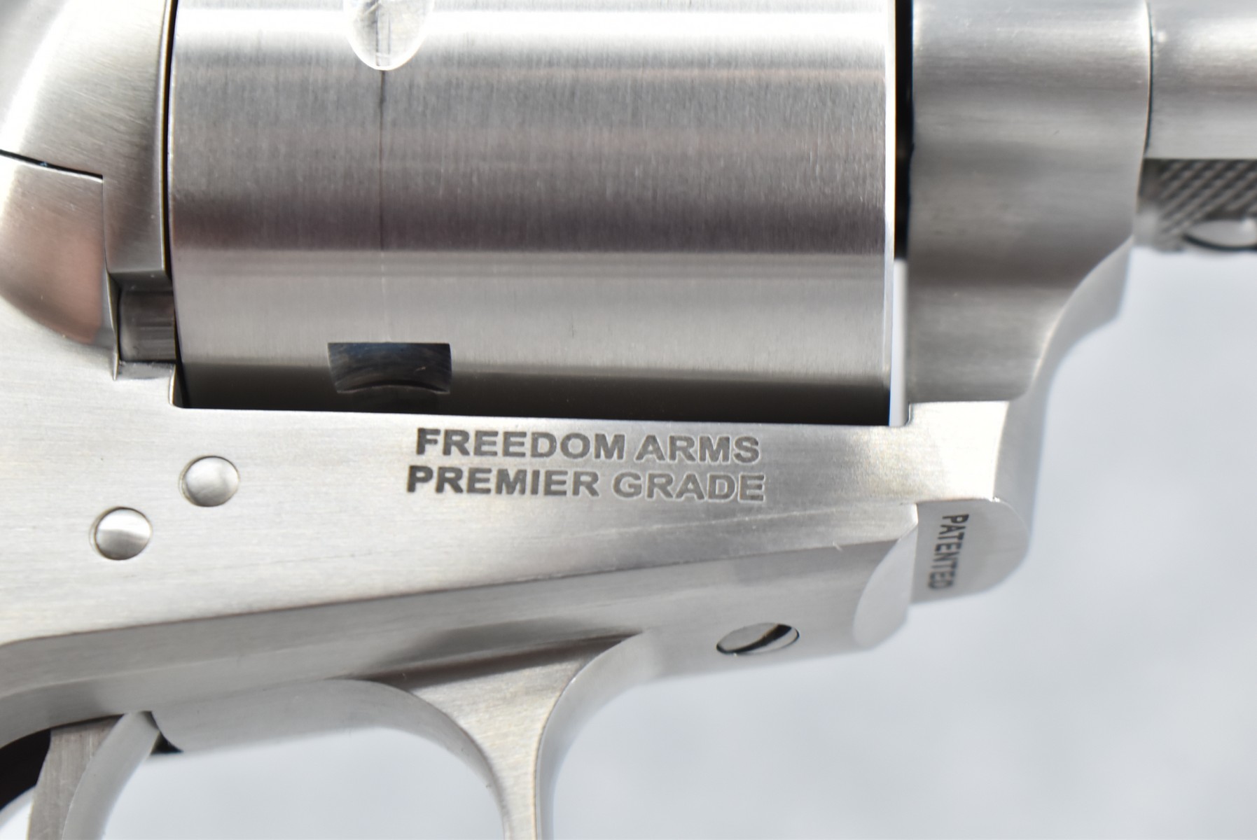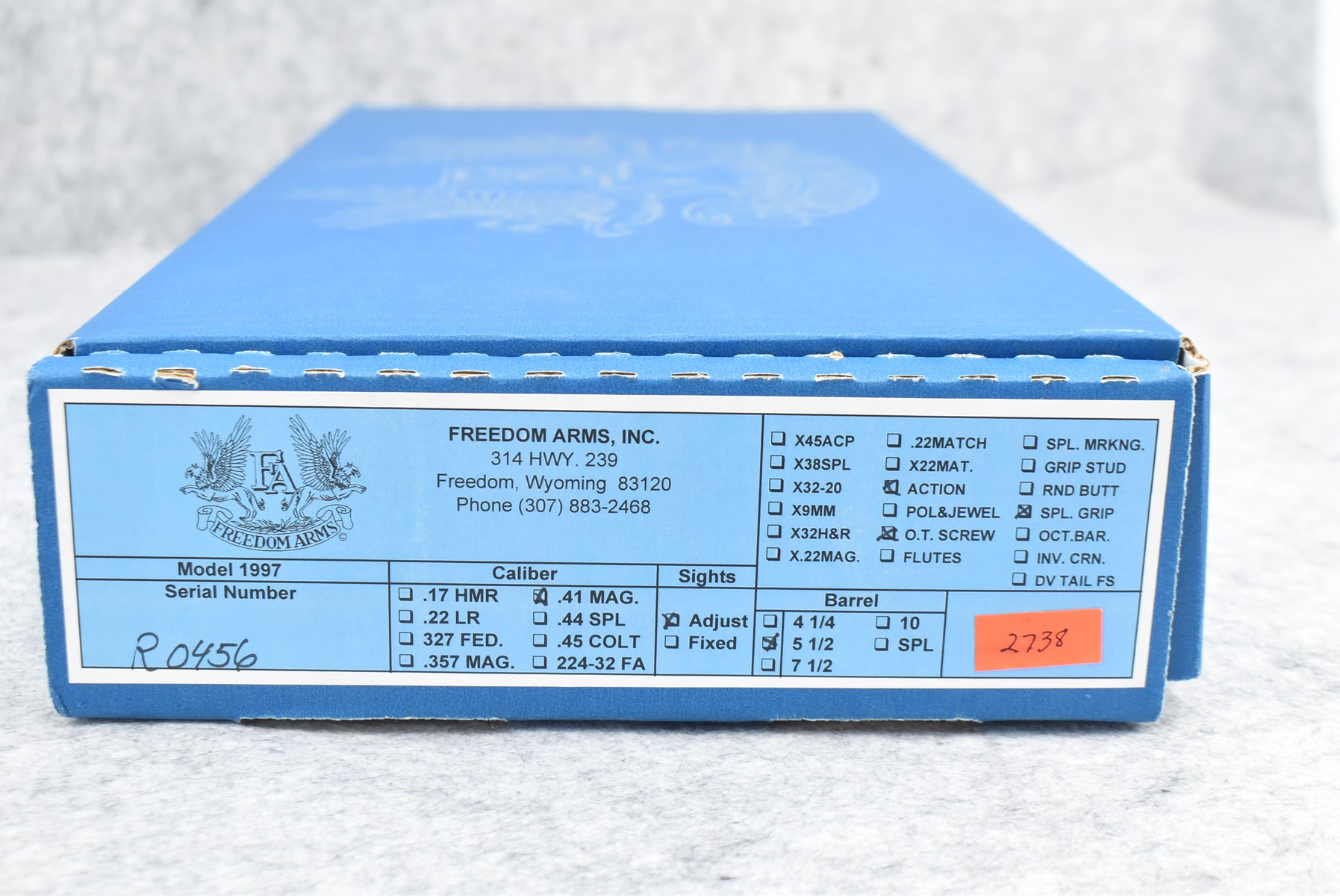1R. Freedom Arms – Mod. 97 Premier Grade – 41 Rem. Mag. Cal. Single Action Revolver – w/5½” Barrel w/Ramp Blade Front Adjustable Rear Notch Sights – Stainless Finish – w/Black Smooth Hardwood Grips – w/Unfluted Cylinder – New in Factory Box w/Manual and Test Target