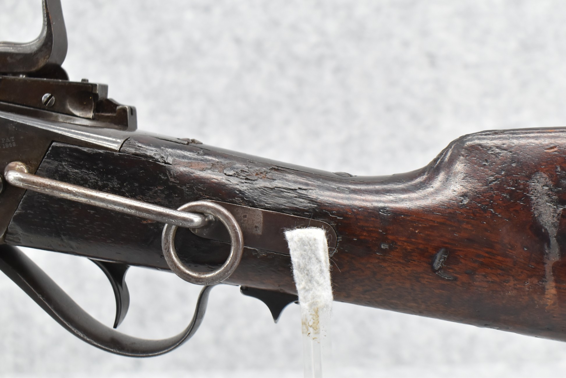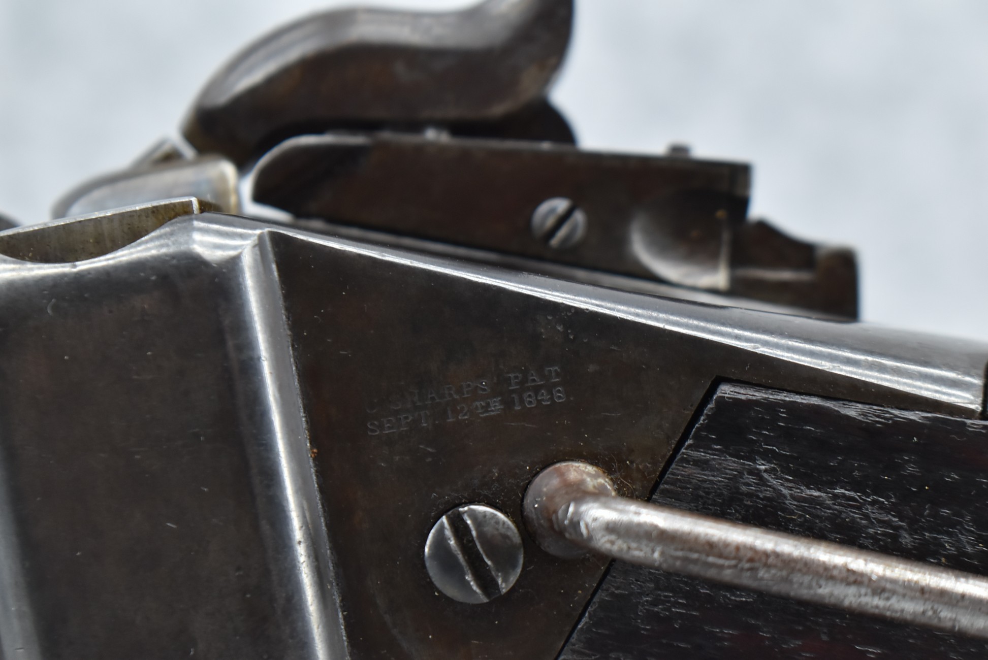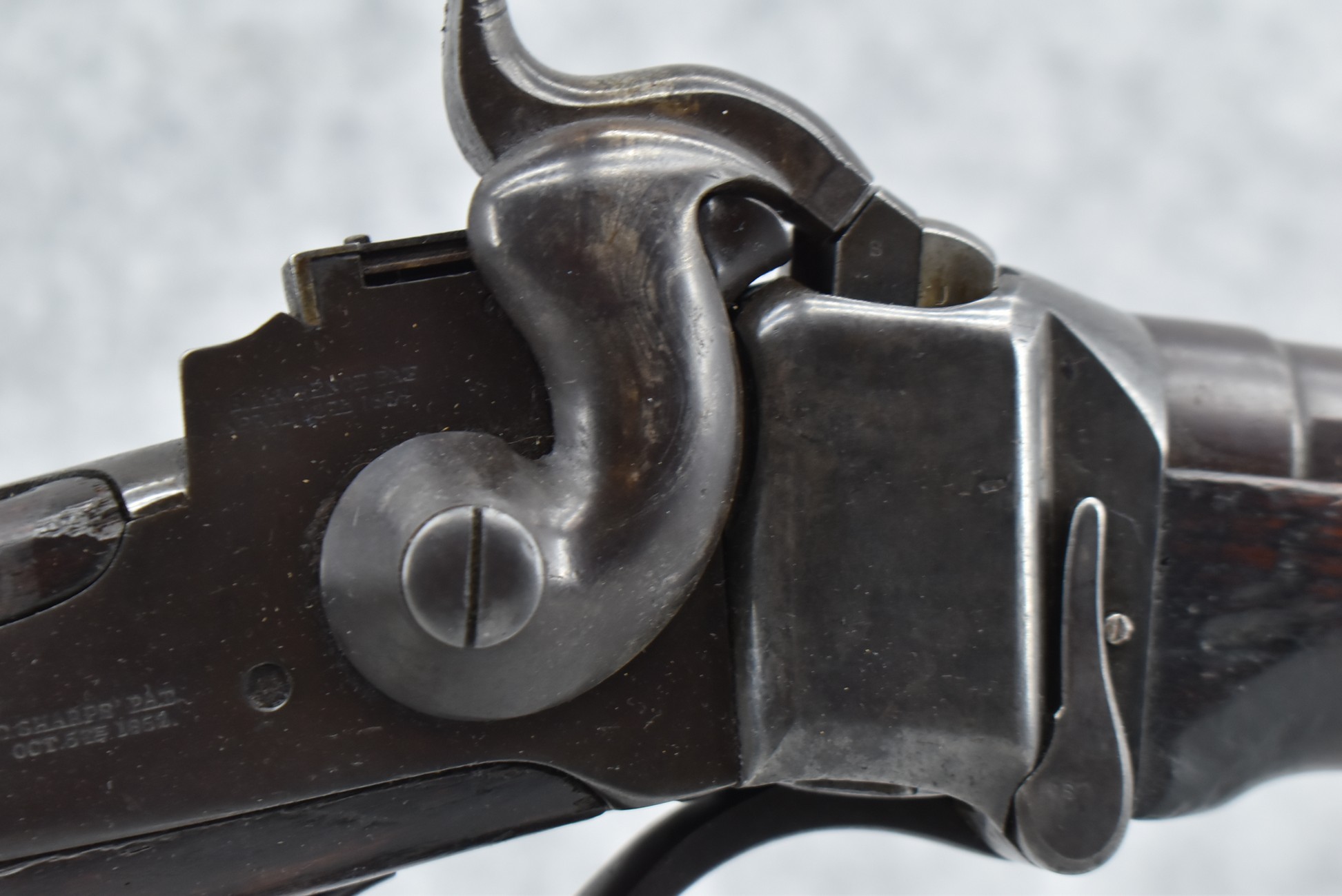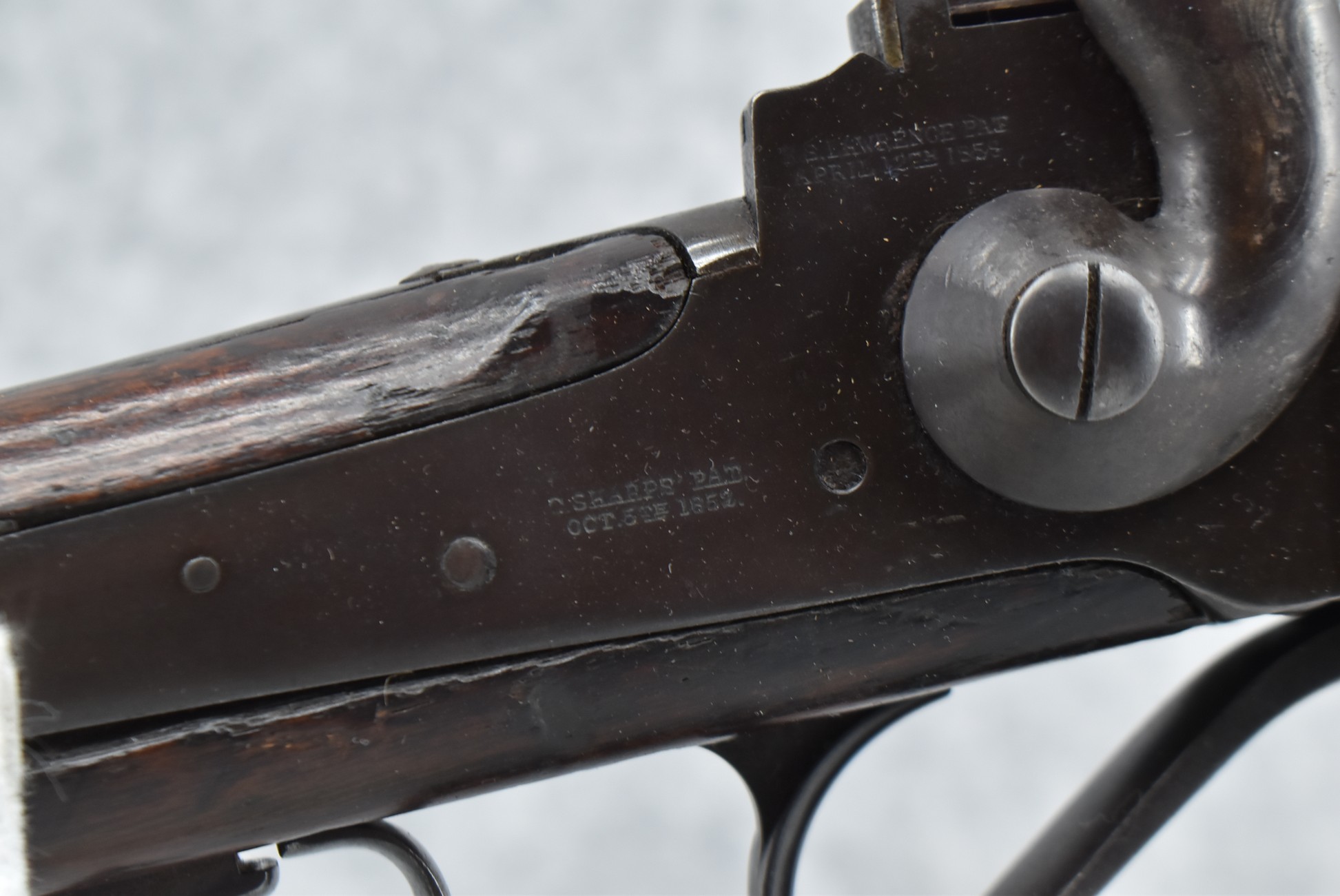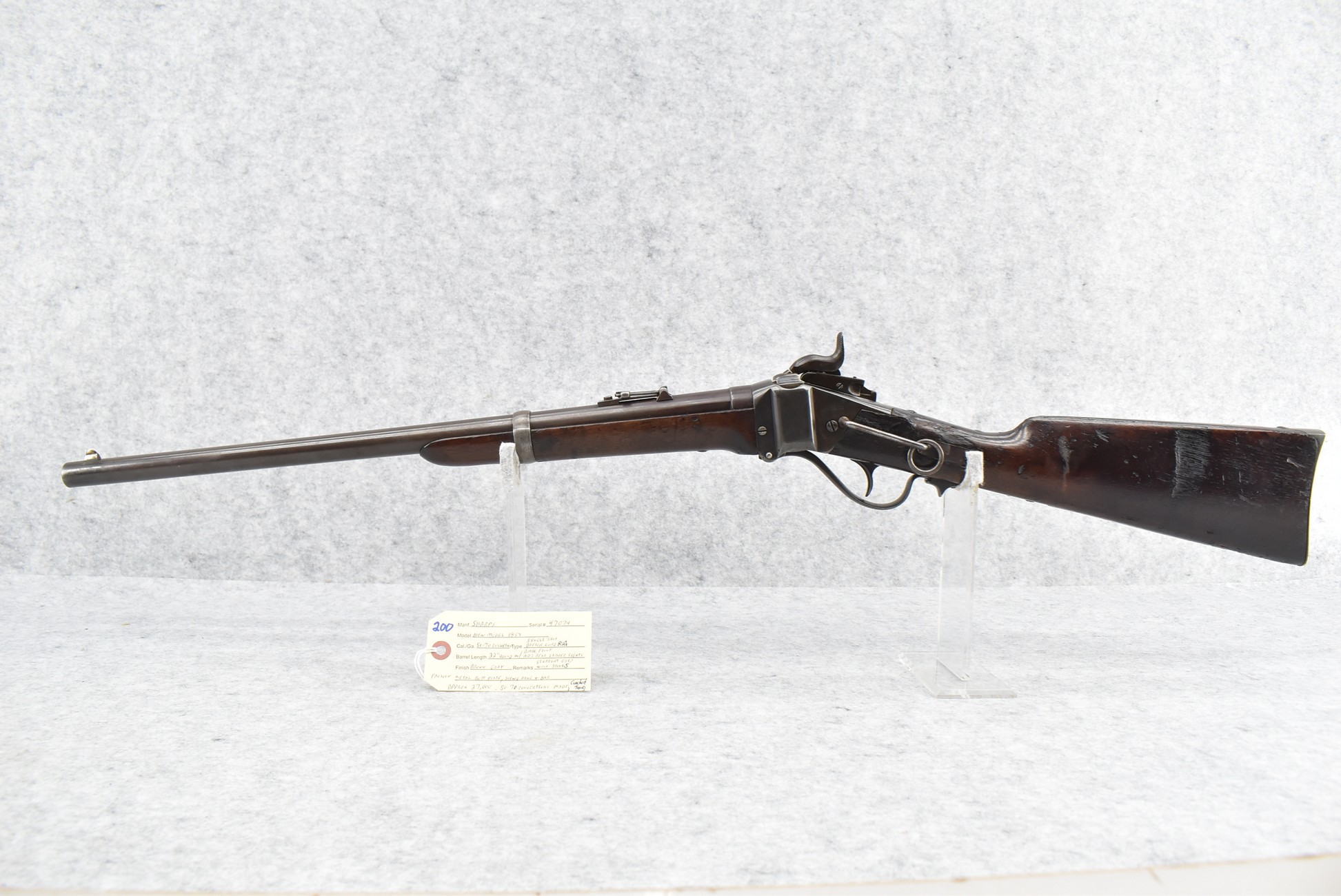 200. Sharps – New Model 1859 – 50-70 Conversion Single Shot Falling Block Rifle – w/22” Round Barrel w/Blade Front & Adj. Rear Ladder Sights – Brown/Gray Finish – w/Straight Grip Wood Stocks w/Factory Metal Butt Plate – w/Sling Ring & Bar – Approx. 27,000 Converted to 50-70 – Note: Cracked Tang