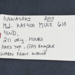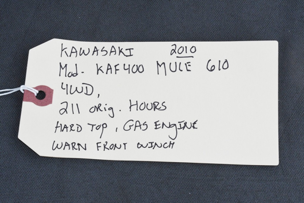 2010 Kawasaki – Mod. KAF400 Mule 610 4wd – Gas Engine w/211 Original Miles – w/Hard Top & Warn Front Winch