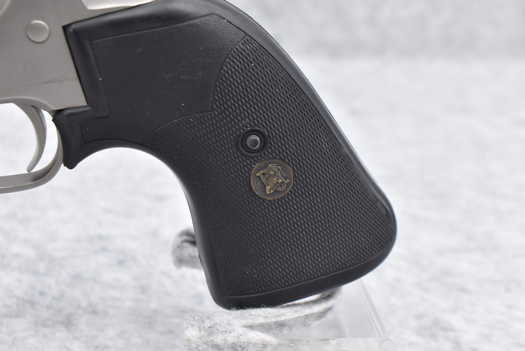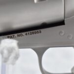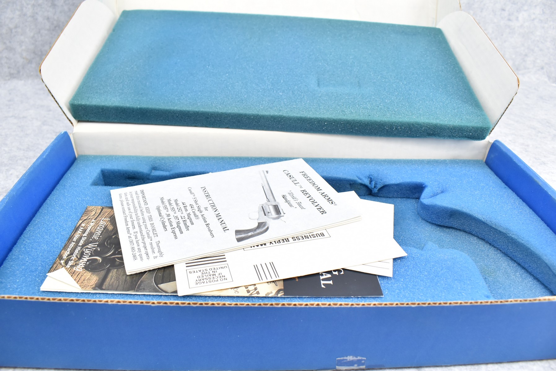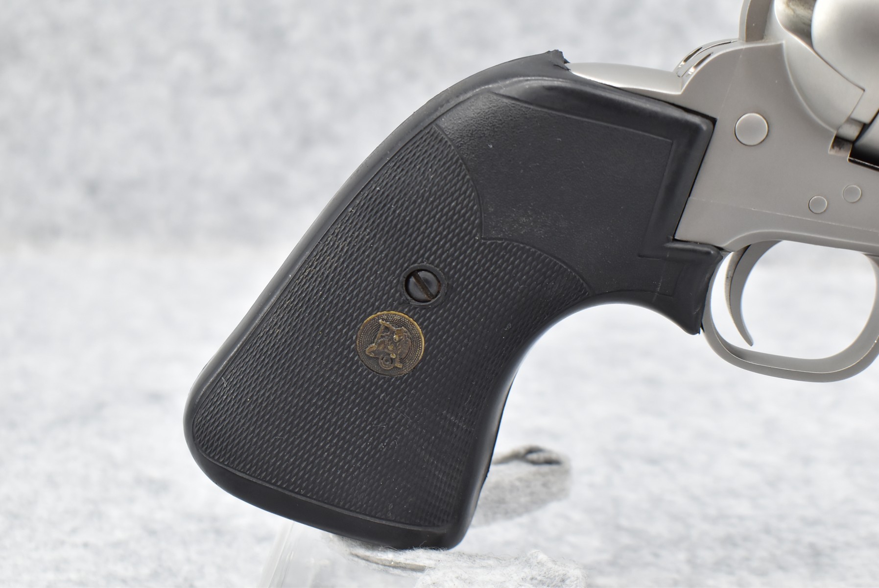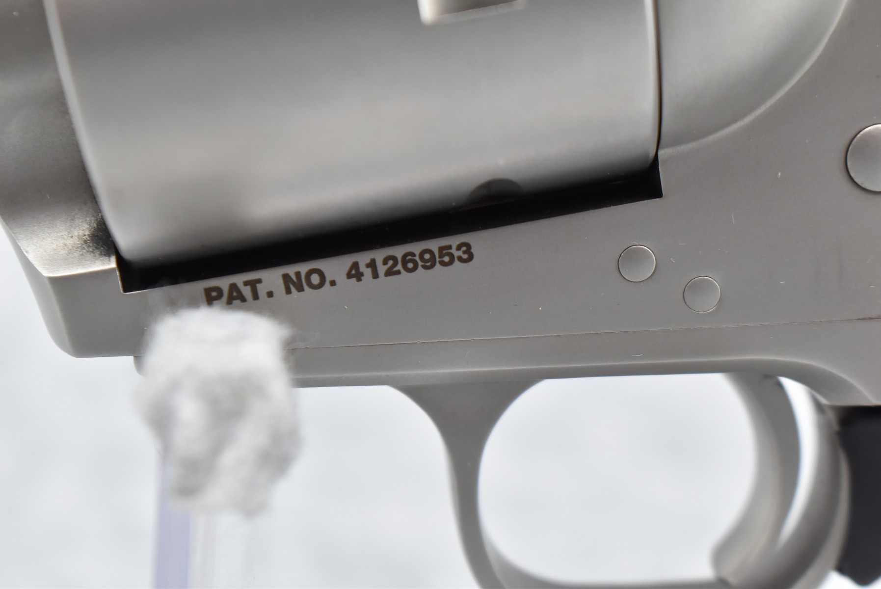201R. Freedom Arms – Mod. 555 – 50 AE Cal. Single Action Revolver – w/5½” Barrel w/Ramp Blade Front and Adjustable Rear Notch Sights – Satin Stainless Finish – w/Pachmayr Checkered Molded Black Rubber Grips – w/Factory Box and Manuals