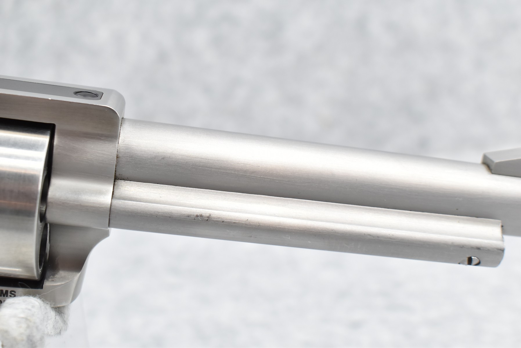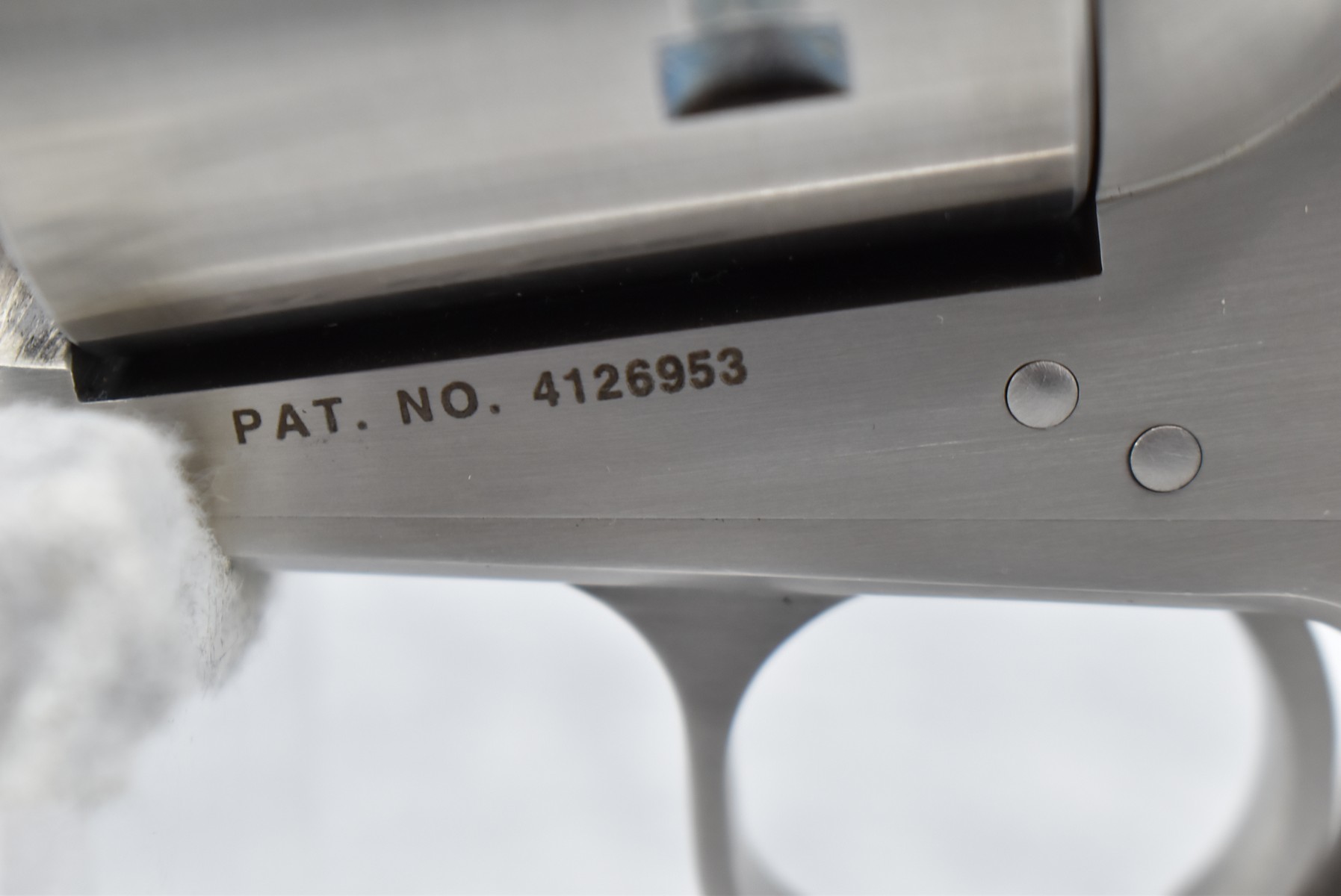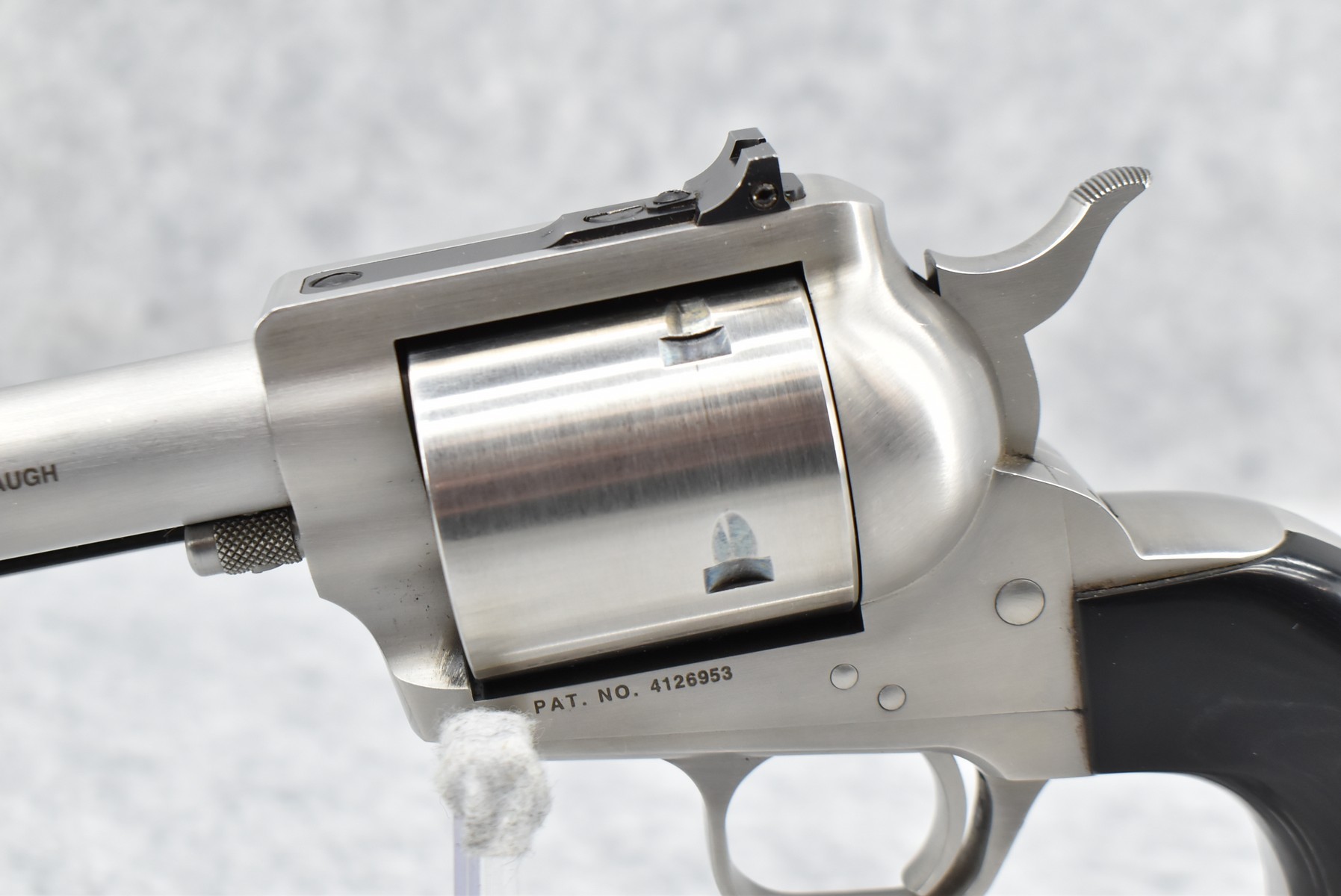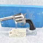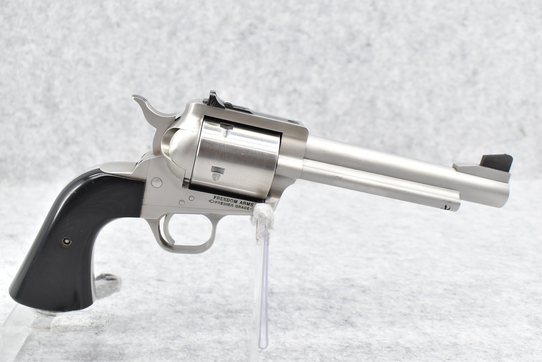 202R. Freedom Arms – Mod. 83 – 475 Linebaugh Cal. Single Action Revolver – w/6” Barrel w/Ramp Blade Front and Adjustable Rear Notch Sights – Stainless Finish – w/Factory Black Smooth Laminated Wood Grips – w/Factory Box, Manuals, Barrel Lock, and Key