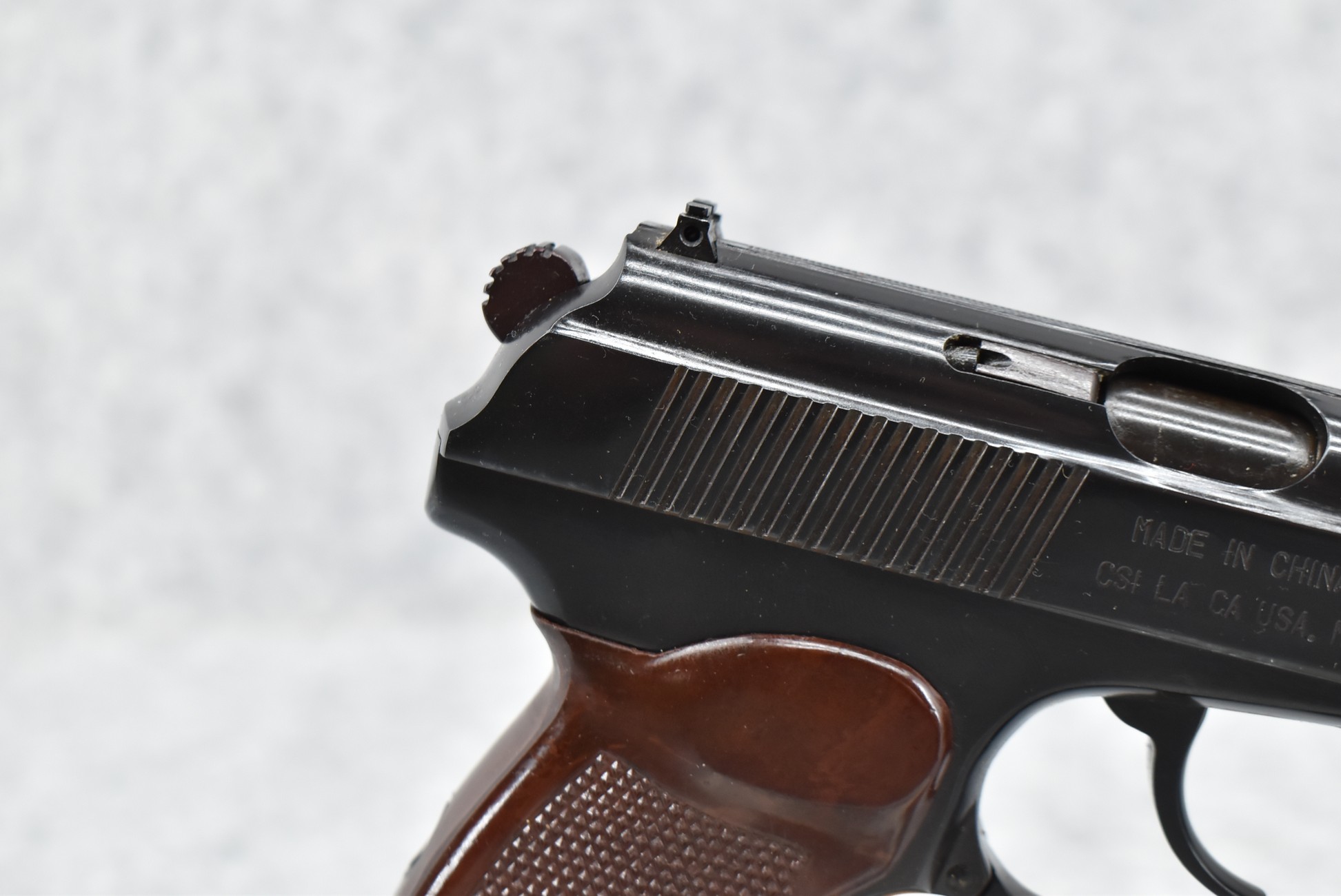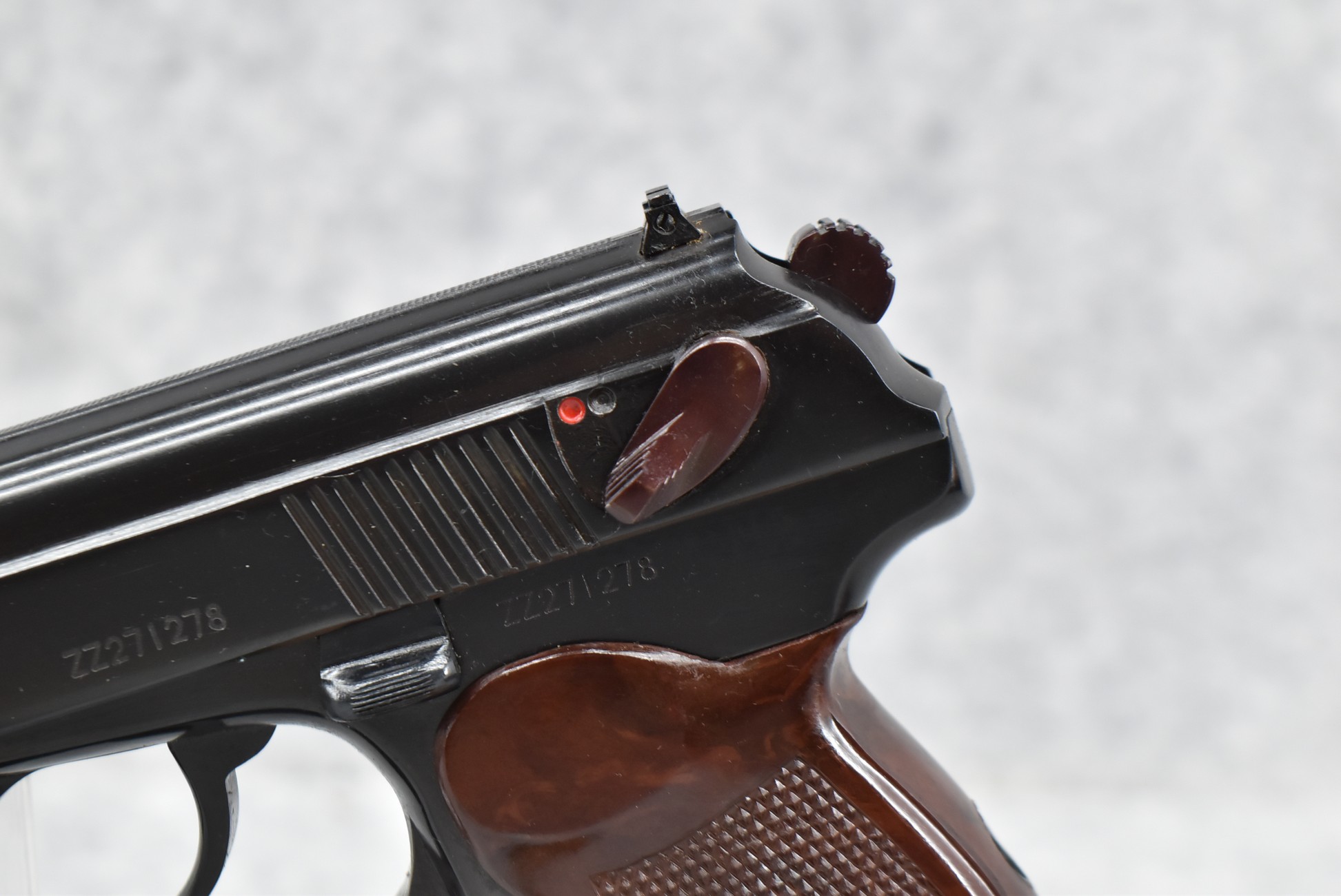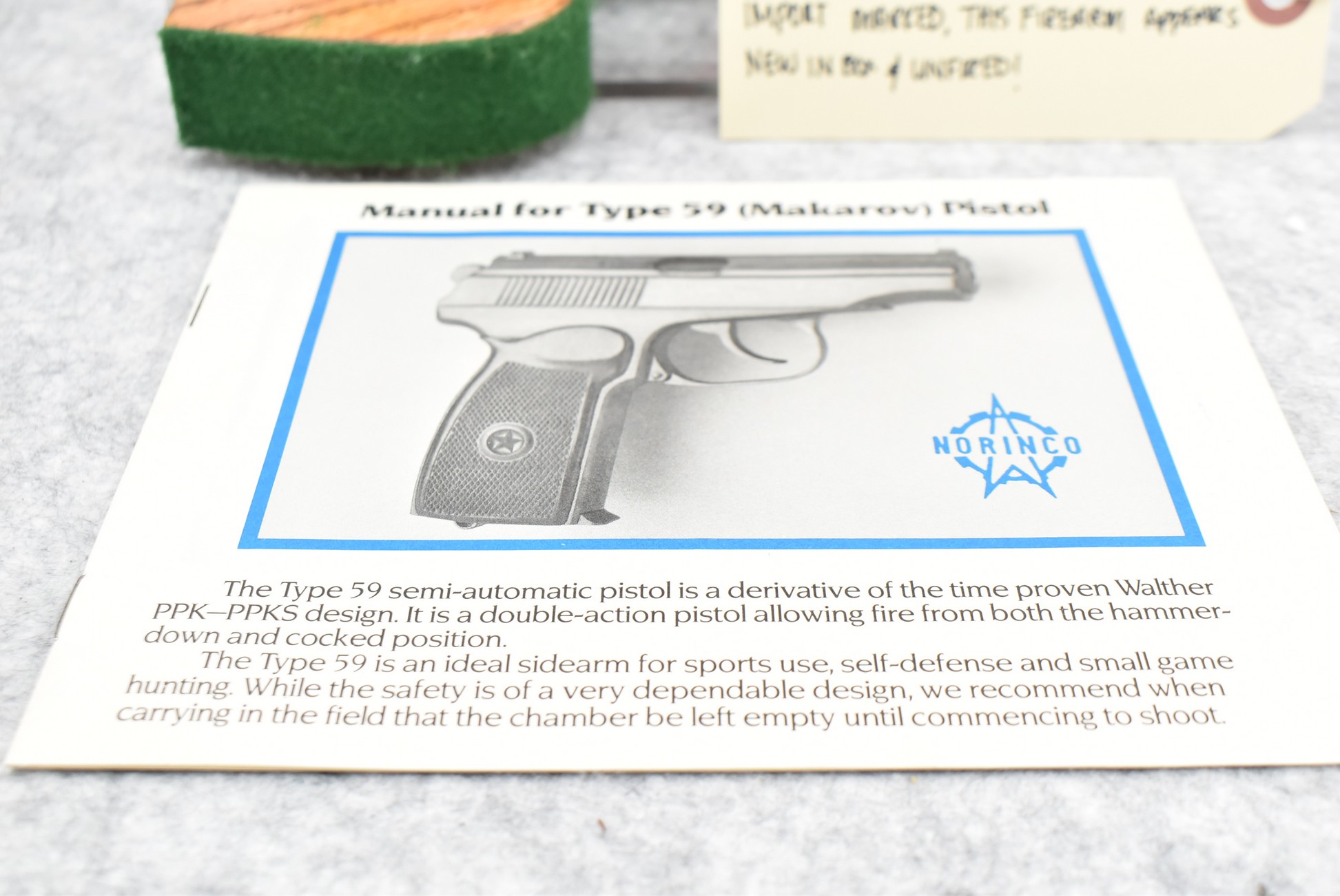 202R. Norinco – Mod. 59 Makarov – 9x18mm Cal. Semi-Auto Pistol – w/3.5” Barrel w/Front & Rear Iron Sights – Blued Finish – w/Factory Checkered Brown Bakelite Grips – Appears New & Unfired w/Factory Box, 2 Factory Magazines, Manual & Tools – Import Marked