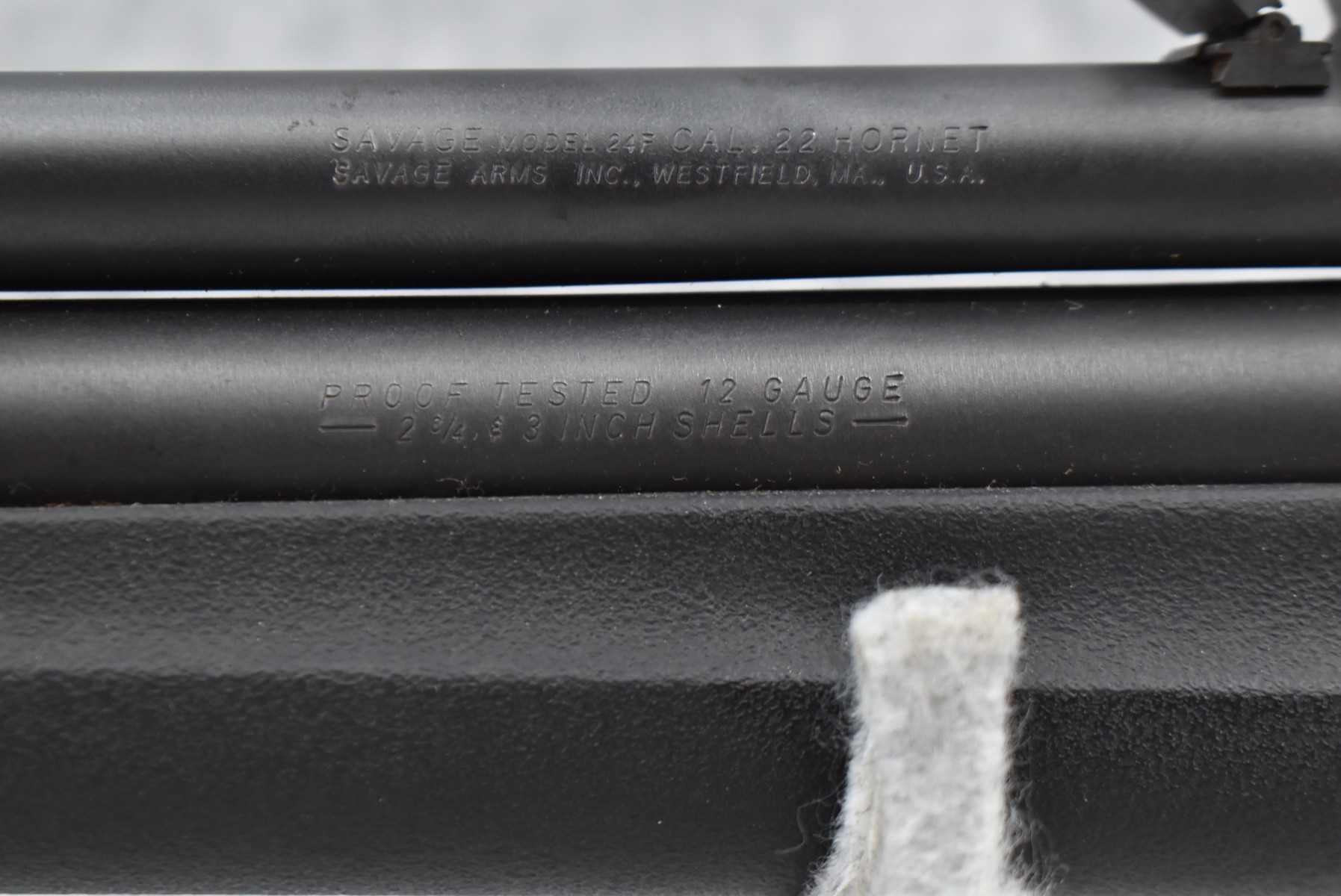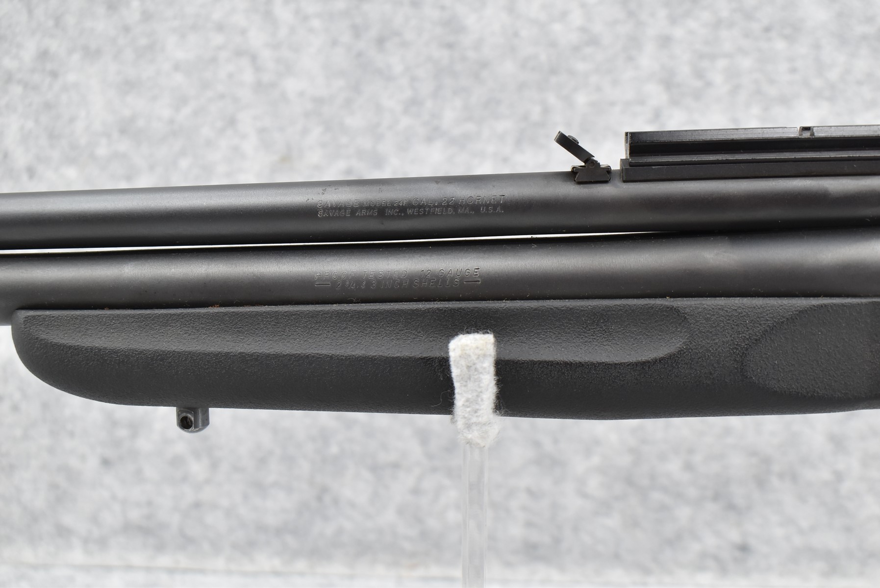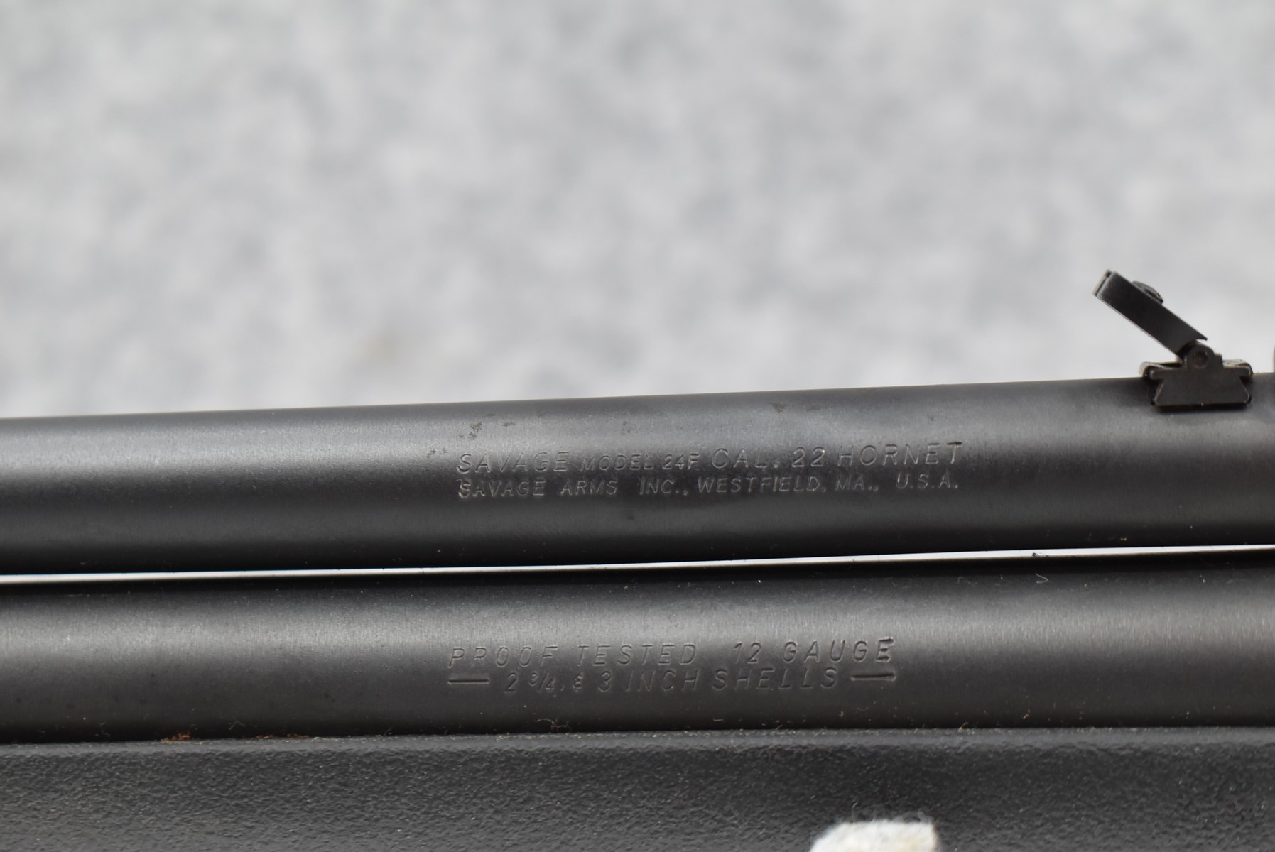 203R. Savage – Mod. 24F – 22 Hornet Cal. Over 12ga. Over-Under Rifle Shotgun Combo – w/24” Barrels w/Front Blade & Rear Adj. Sights – Matte Blued Finish – w/Pistol Grip Black Synthetic Stocks w/Factory Butt Plate – w/Scope Base – w/Extra Custom Choke