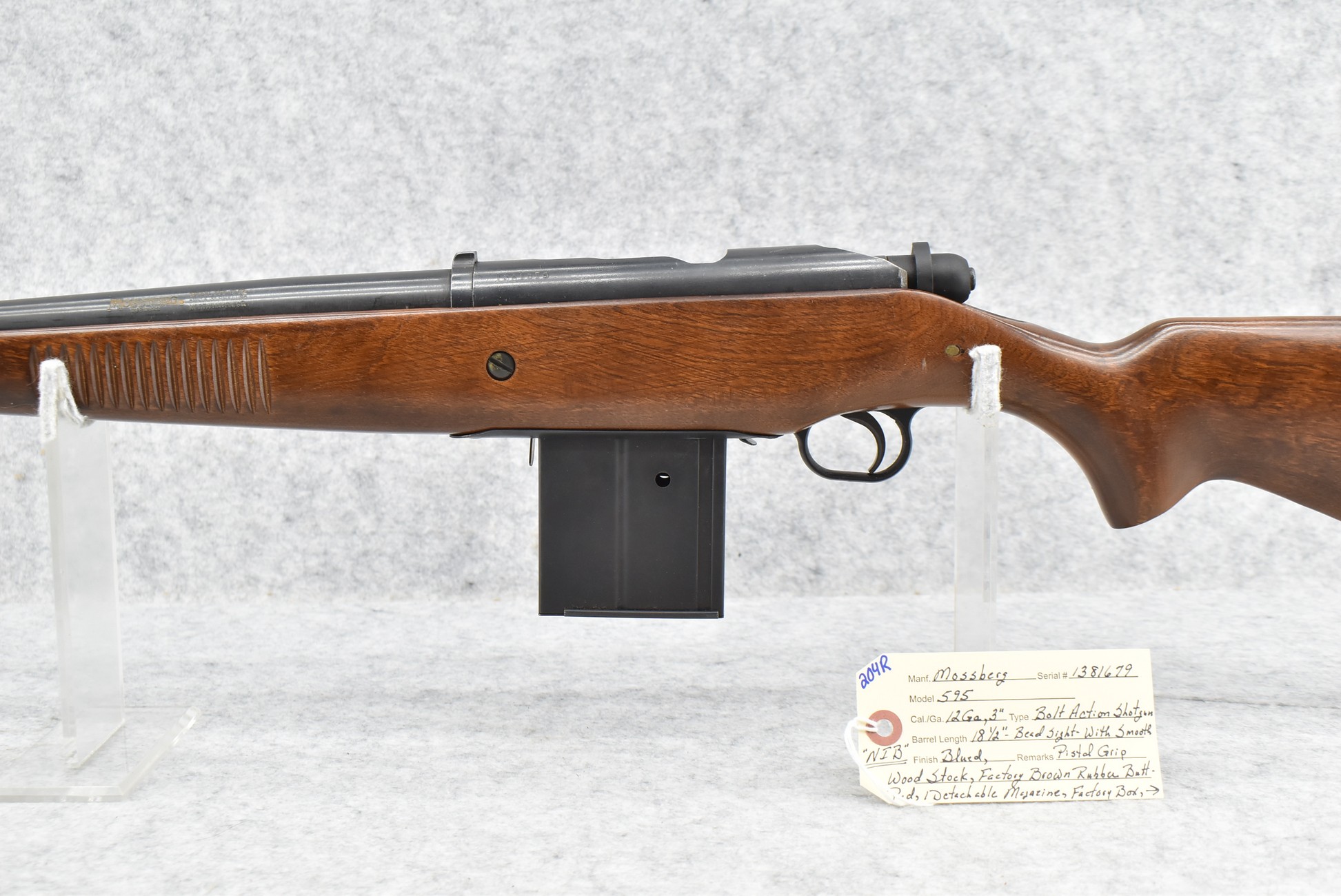 204R. Mossberg – Mod. 595 – 12ga. 3” Bolt Action Shotgun – w/18½” Barrel w/Bead Sight – Blued Finish – w/Smooth Pistol Grip Wood Stock w/Factory Brown Rubber Butt Pad – w/1 Detachable Magazine – New in Factory Box w/Pamphlet