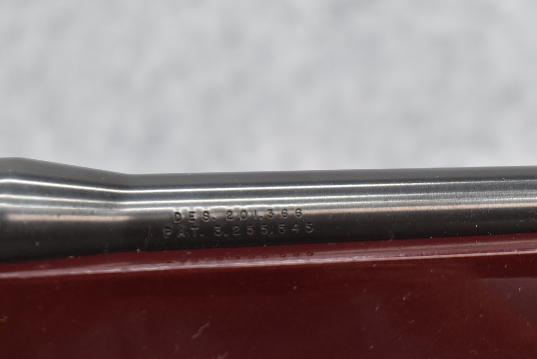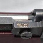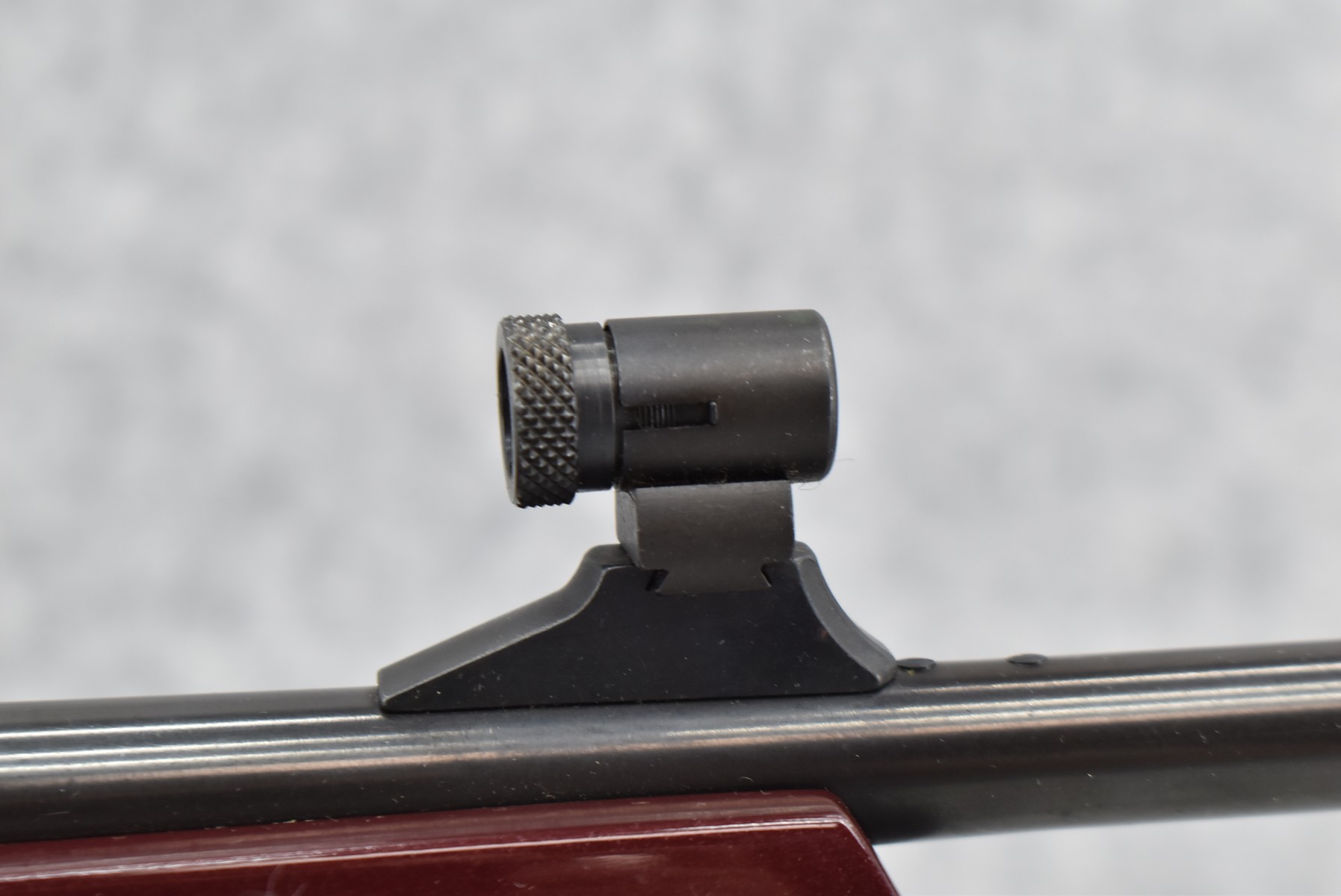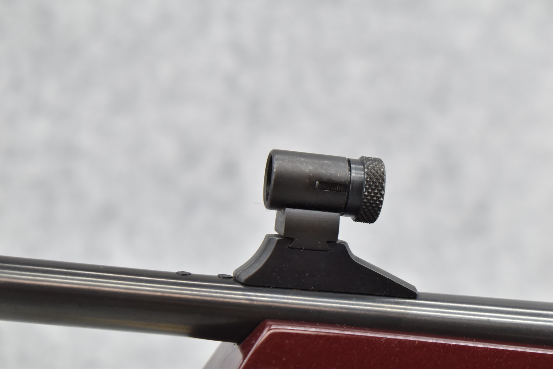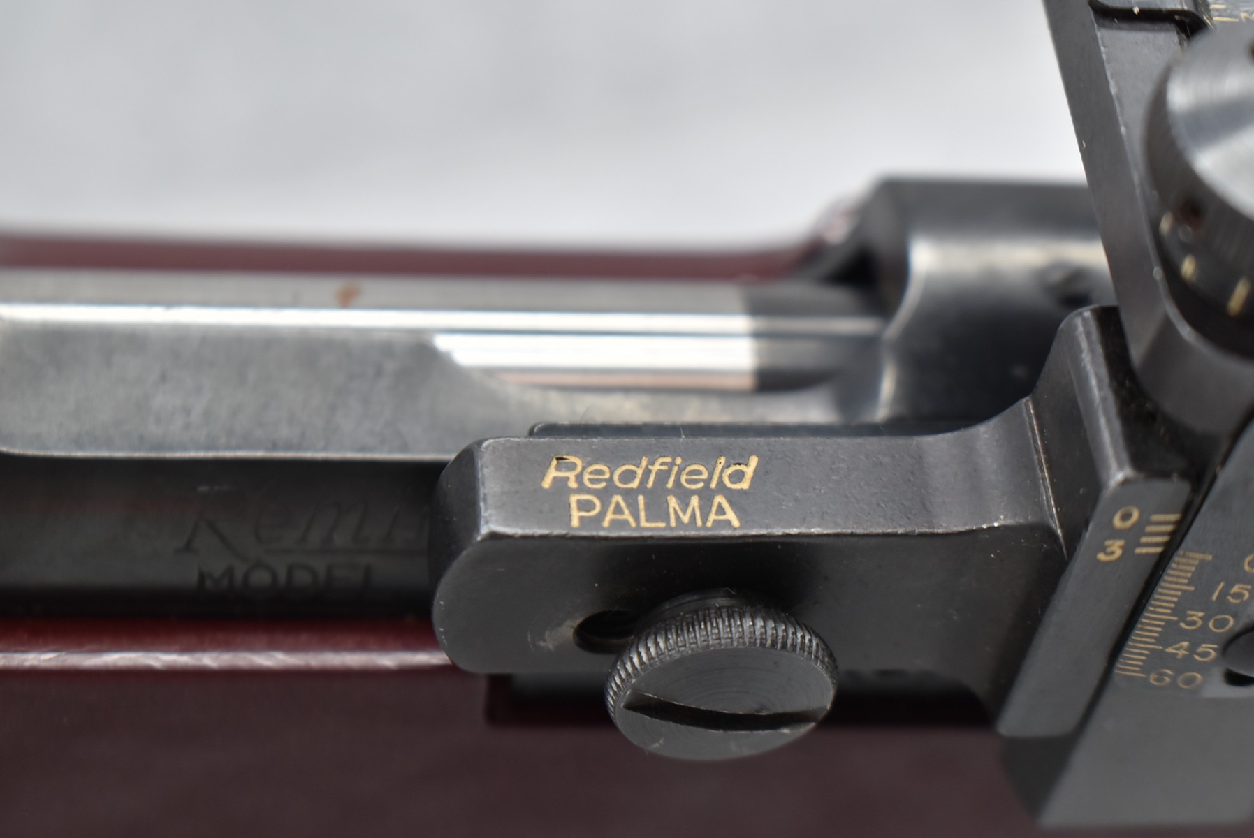 204R. Remington – Mod. XP-100 – 7mm BR Re-Chambered to 7mm-08 Rem. Cal. Bolt Action Single Shot Pistol – w/15” Barrel w/Target Globe Front & Redfield Palma Rear Receiver Large Disc Peep Sights – Blued Finish – w/Custom Maroon Synthetic Left Hand Thumb-Hole Stock