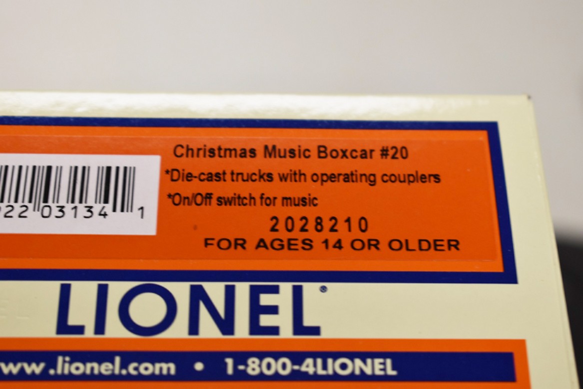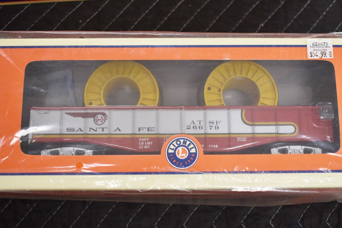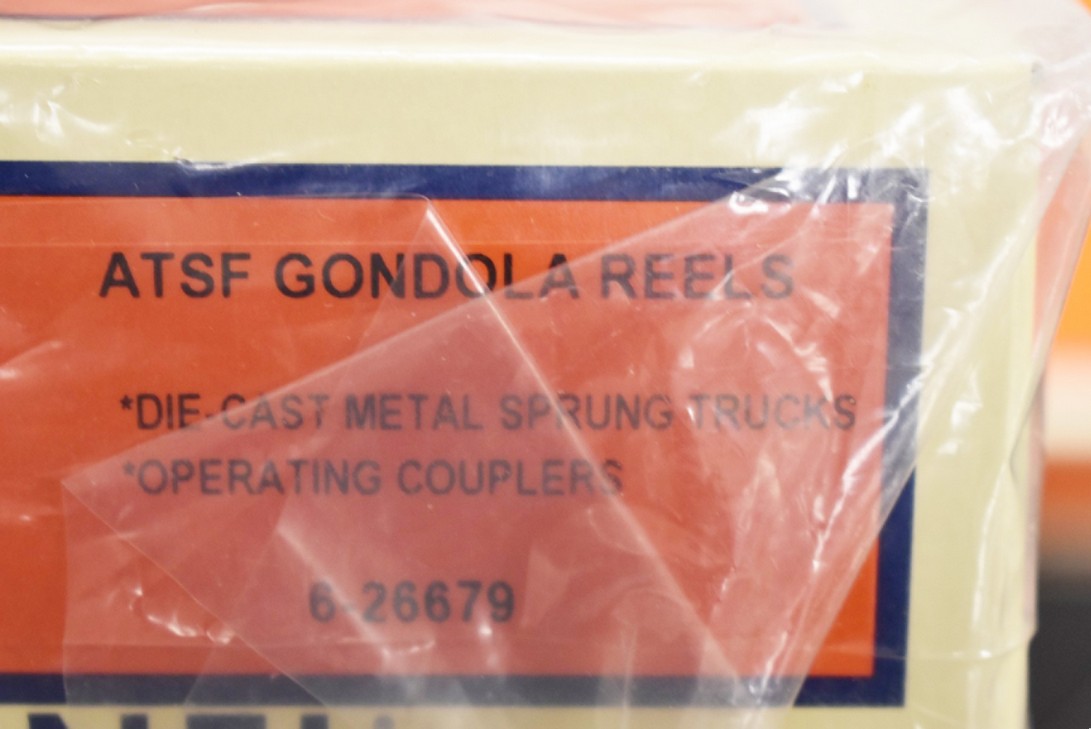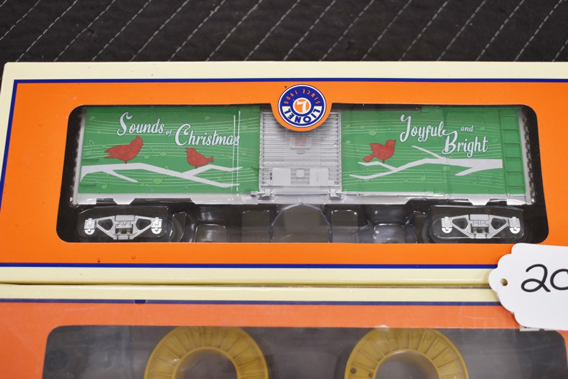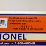 205. Pair of Lionel O-Gauge Cars – Including Christmas Music Box Car No. 20 2028210 and Lionel ATSF Gondola Reels No. 6-26679 – Both w/Boxes