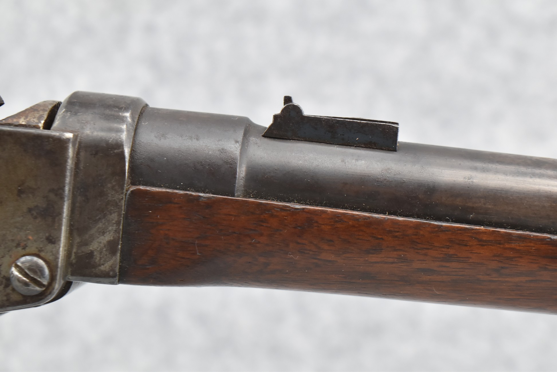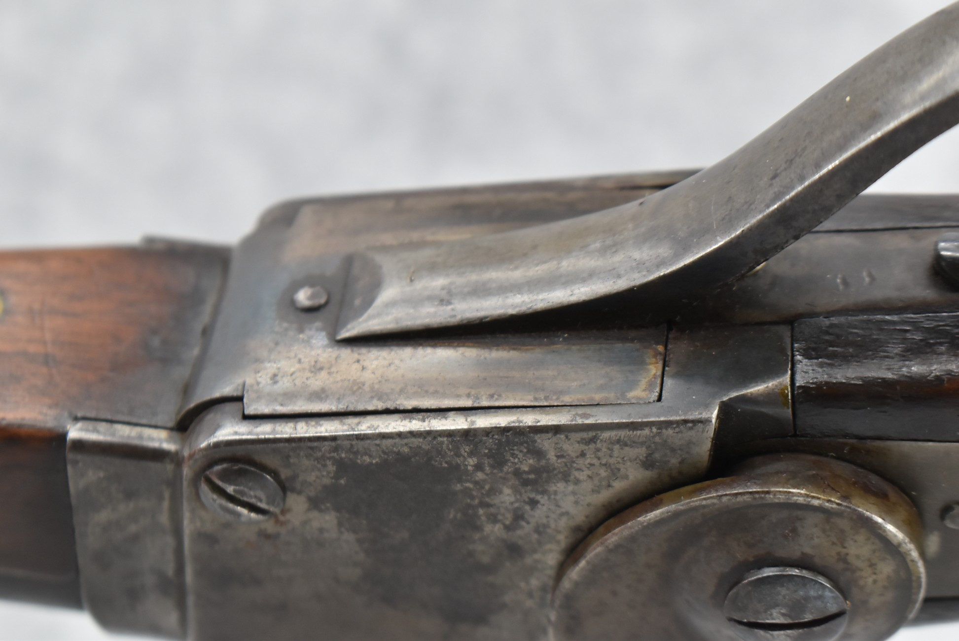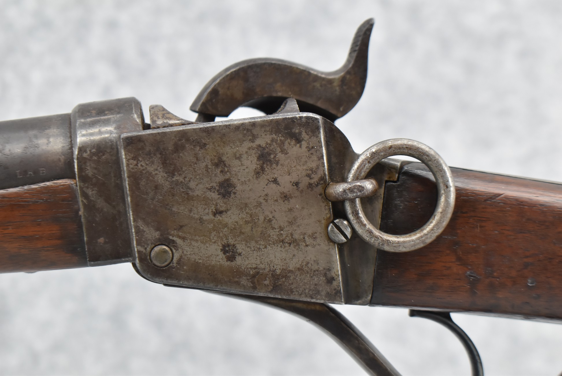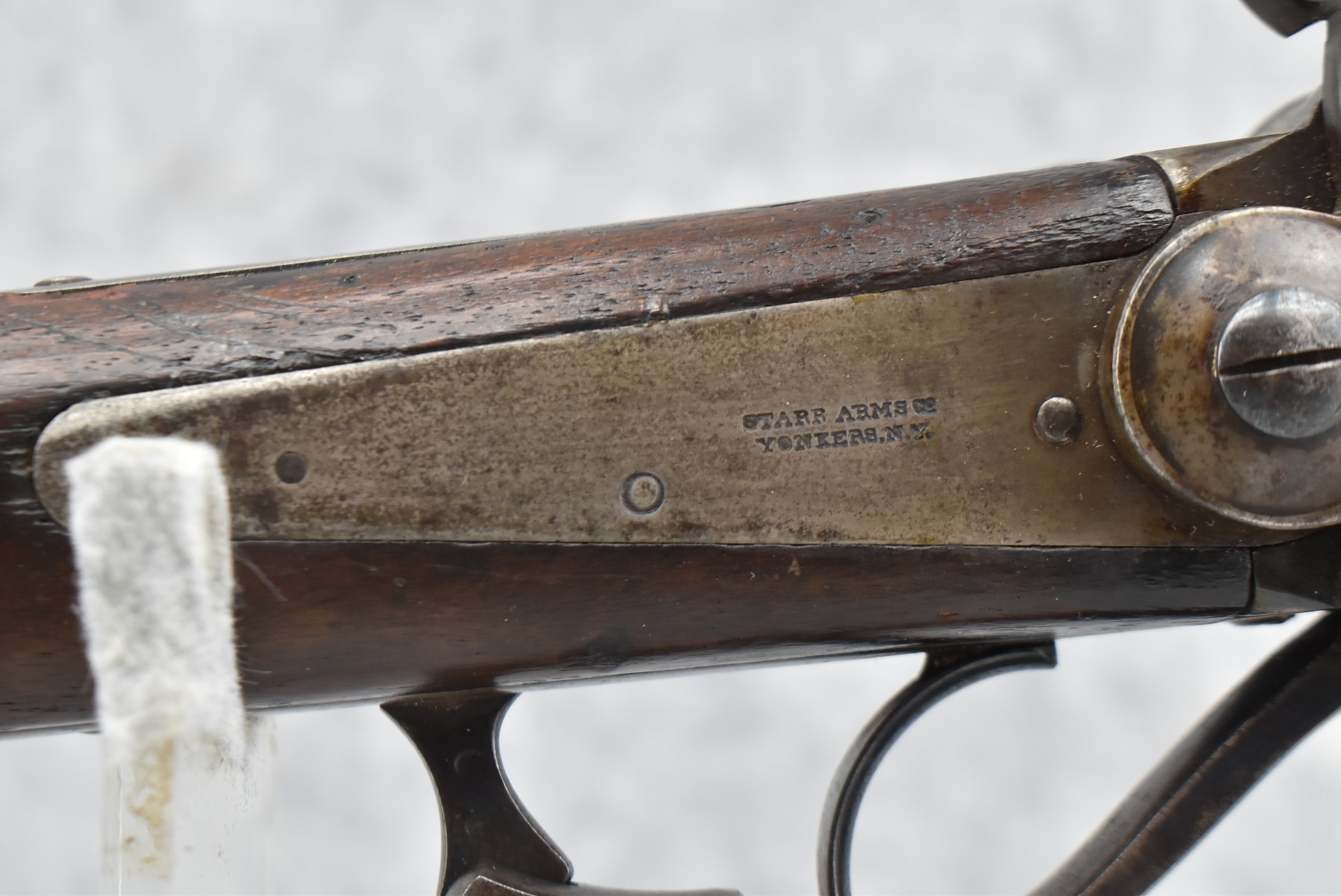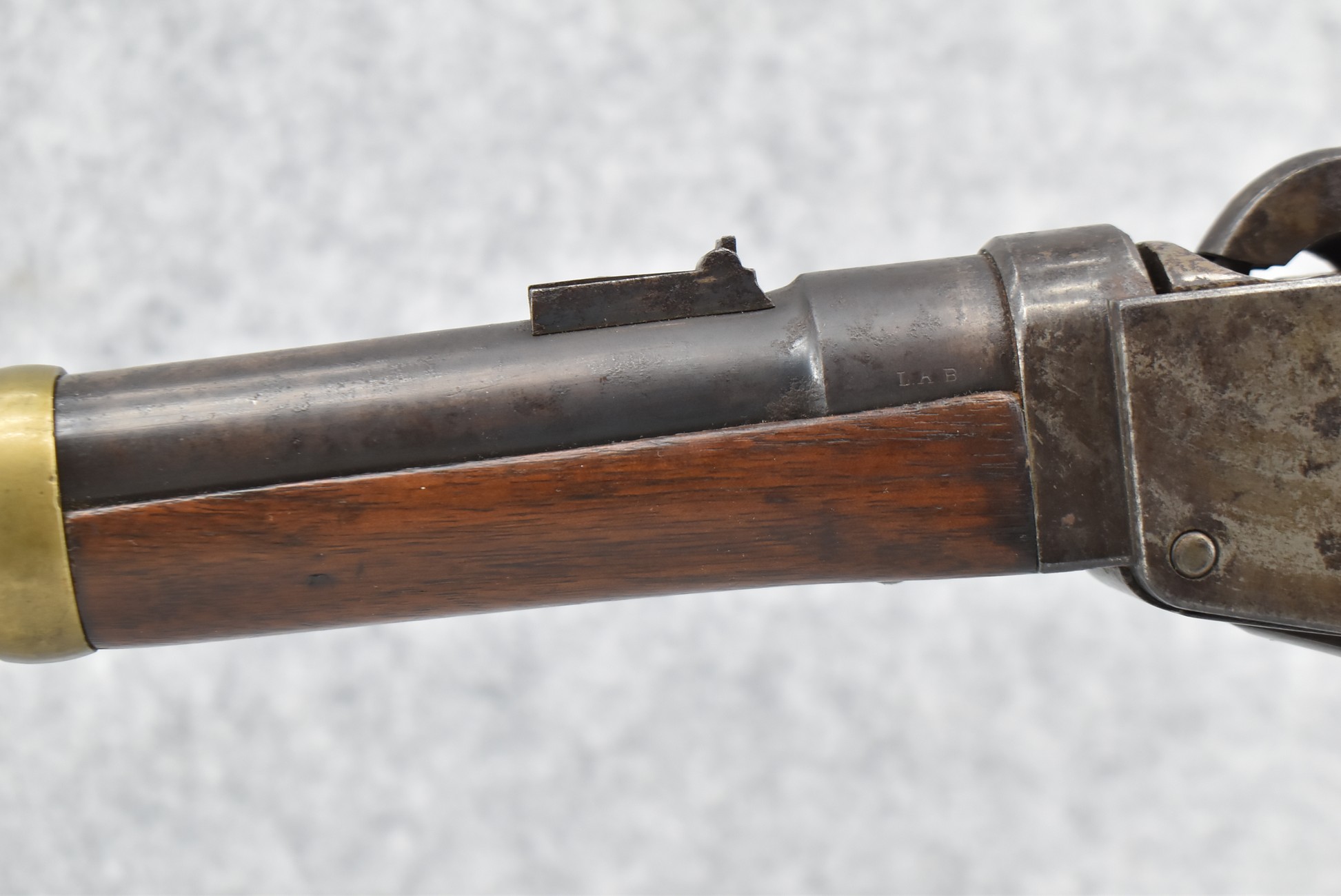 205. Starr Arms – Mod. Starr Percussion Carbine – 54 Cal. Percussion Black Powder Carbine – w/21” Barrel w/Blade Front & 2-Leaf Flip Up Rear Sights – Gray/Case Colored/Blued Finish – w/Straight Grip Wood Stock w/Single Brass Barrel Band & Butt Plate – w/Combination Trigger Guard/Lever – 20,601 Total Mfg. Between 1862-1865