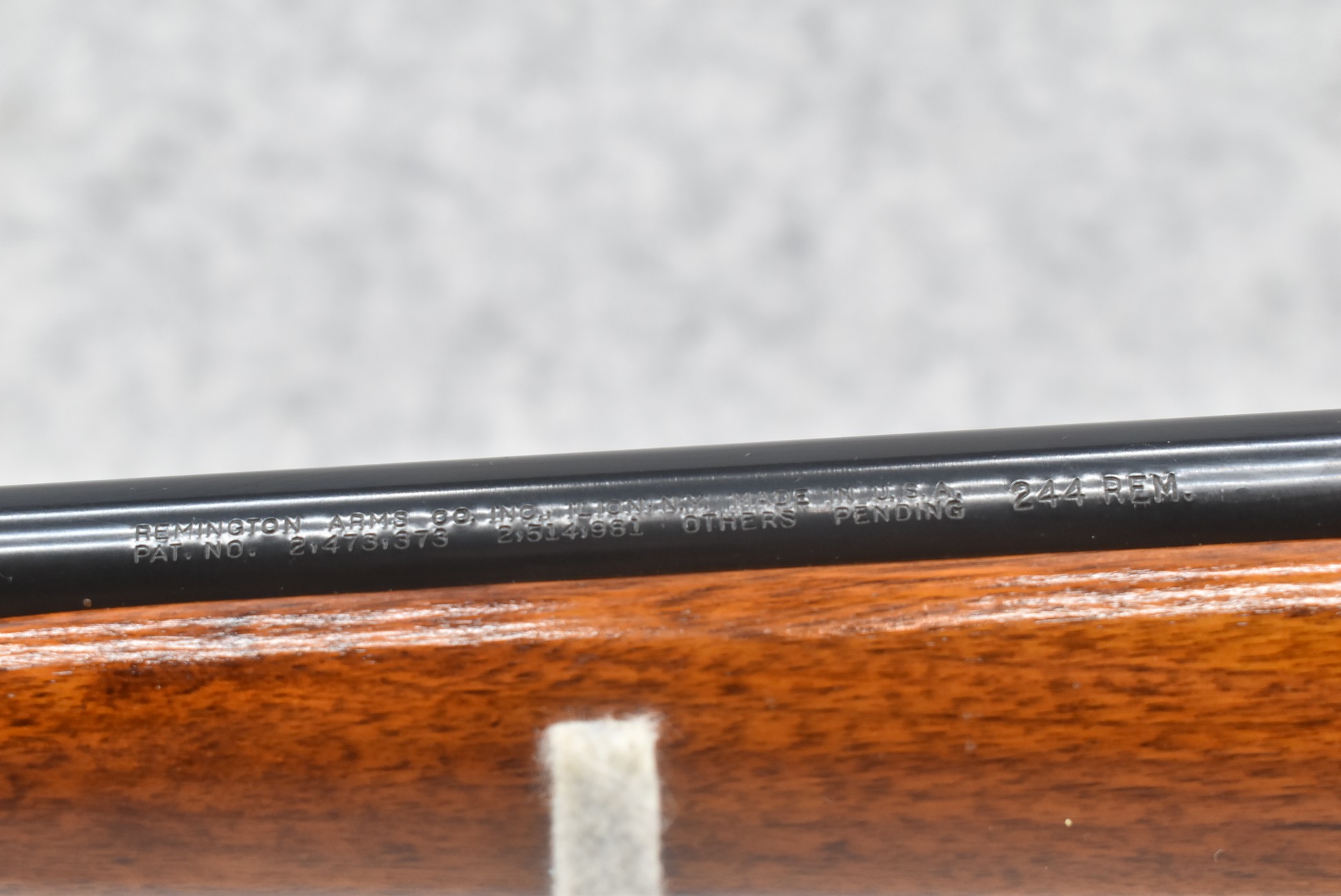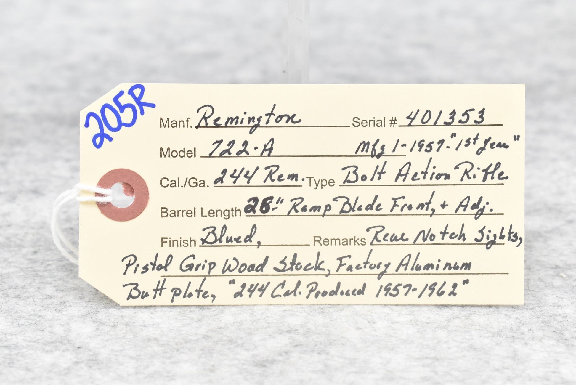 205R. Remington – Mod. 722-A – 244 Rem. Cal. Bolt Action Rifle – w/26” Barrel w/Ramp Blade Front & Adj. Rear Notch Sights – Blued Finish – w/Pistol Grip Wood Stock w/Factory Aluminum Butt Plate – 244 Rem. Mag. Was Mfg. Between 1957-1962 Only