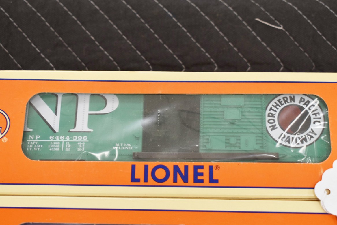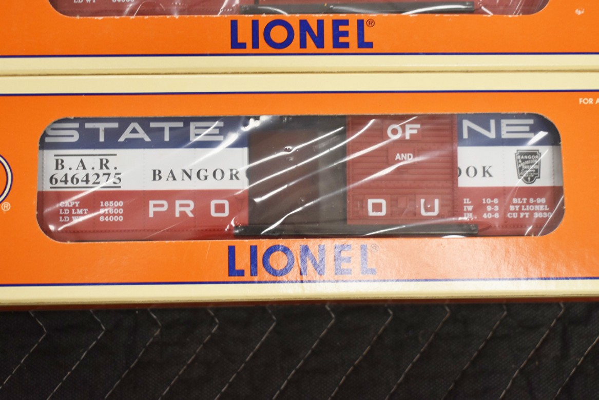 206. Lot of 3 Lionel Train Cars – Including (2) 6464-275 Bangor and Aroostook State of Maine Boxcars 6-19285 and 6464 Northern Pacific Boxcar 6-19284