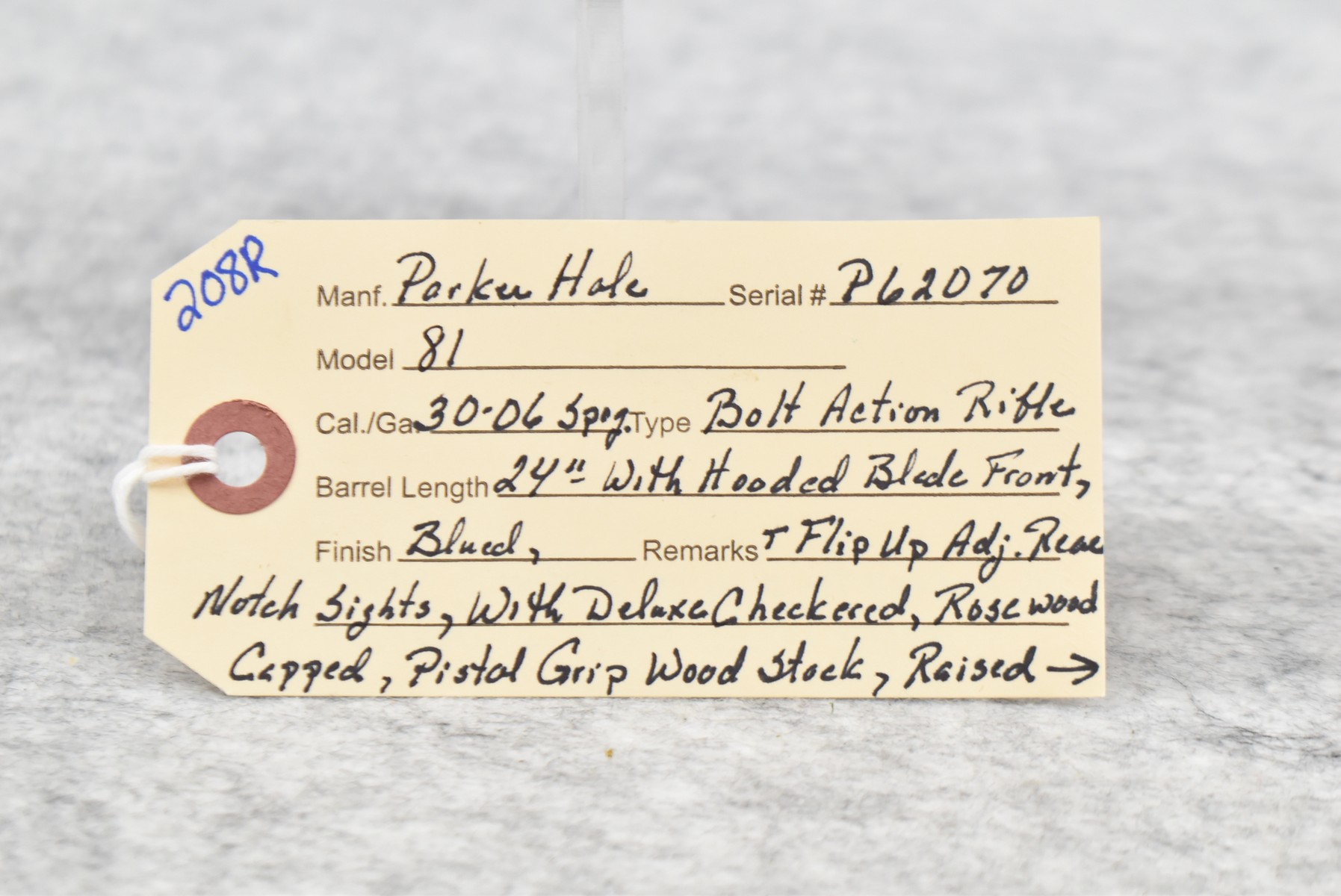 208R. Parker Hale – Mod. 81 – 30-06 Sprg. Cal. Bolt Action Rifle – w/24” Barrel w/Hooded Blade Front & Flip Up Adj. Rear Notch Sights – Blued Finish – w/Deluxe Checkered Rosewood Capped Pistol Grip Wood Stock w/Raised Cheek Piece w/Uncle Mikes Butt Pad – w/Sling Loops