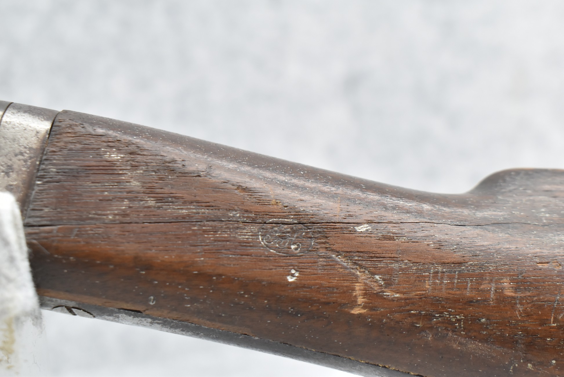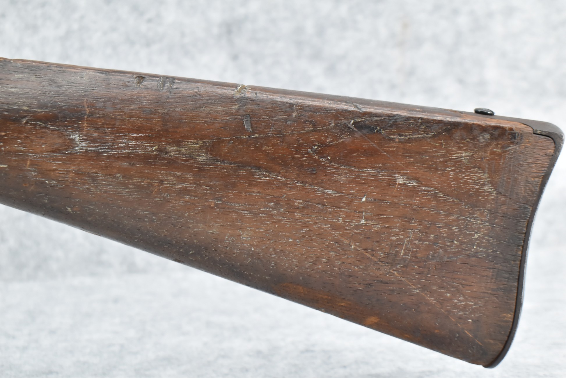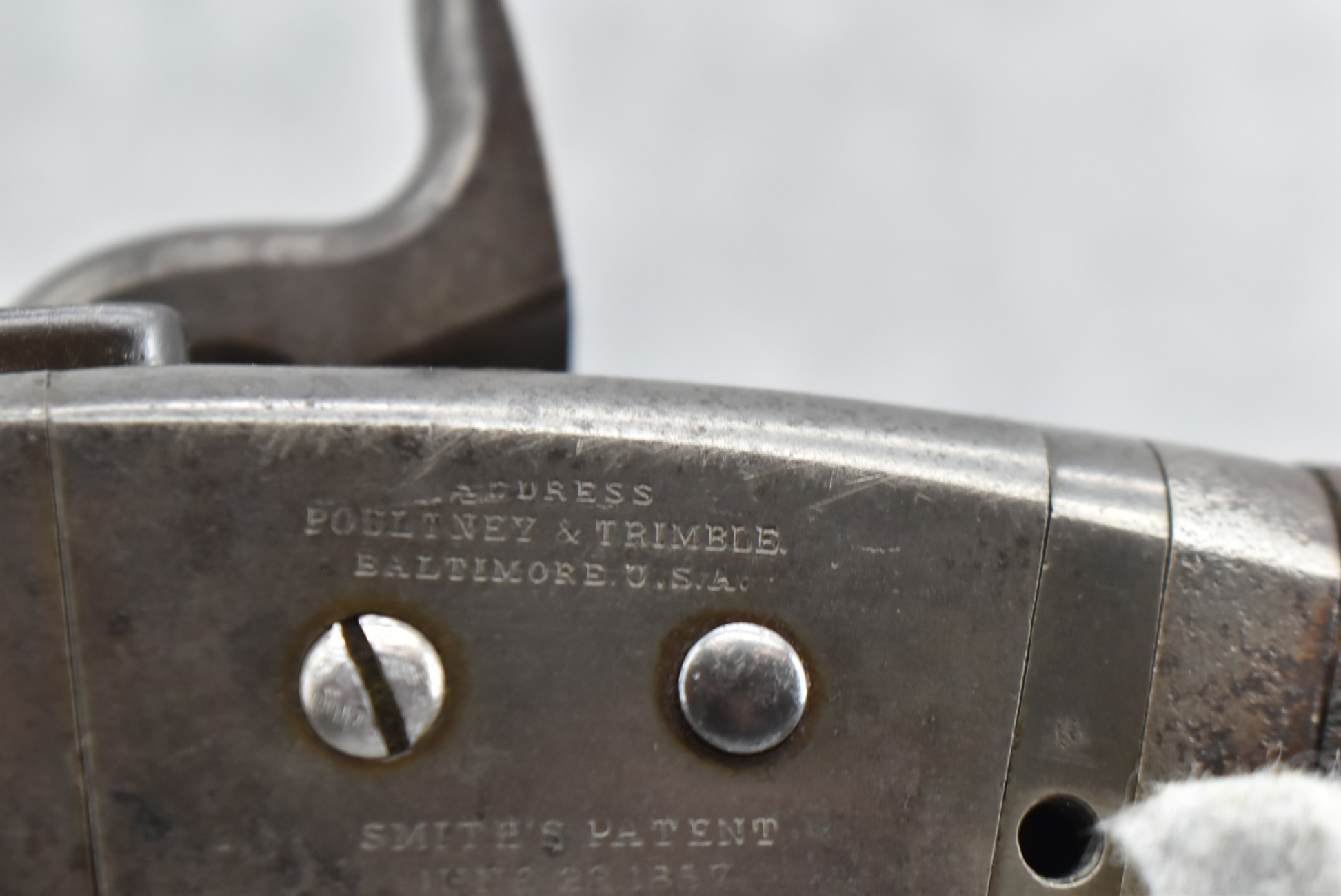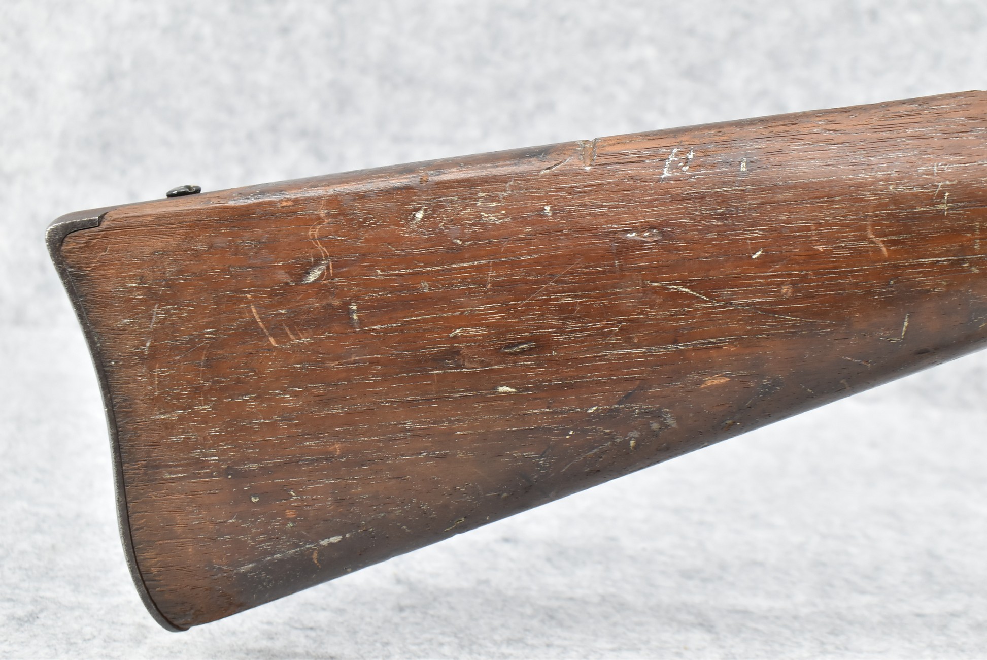 209. Poultney & Trimble – Mod. Smiths Carbine – 50 Cal. Percussion Breech Load Rifle – w/21 5/8” Round Barrel w/Blade Front & Adj. Rear Ladder Sights – Brown/Gray Finish – w/Straight Grip Wood Stock w/Factory Metal Butt Plate w/Vivid Stock Cartouche on Left Side – Approx. 30,000 Mfg. Between 1861-1865 – Note: Missing Saddle Ring & Bar