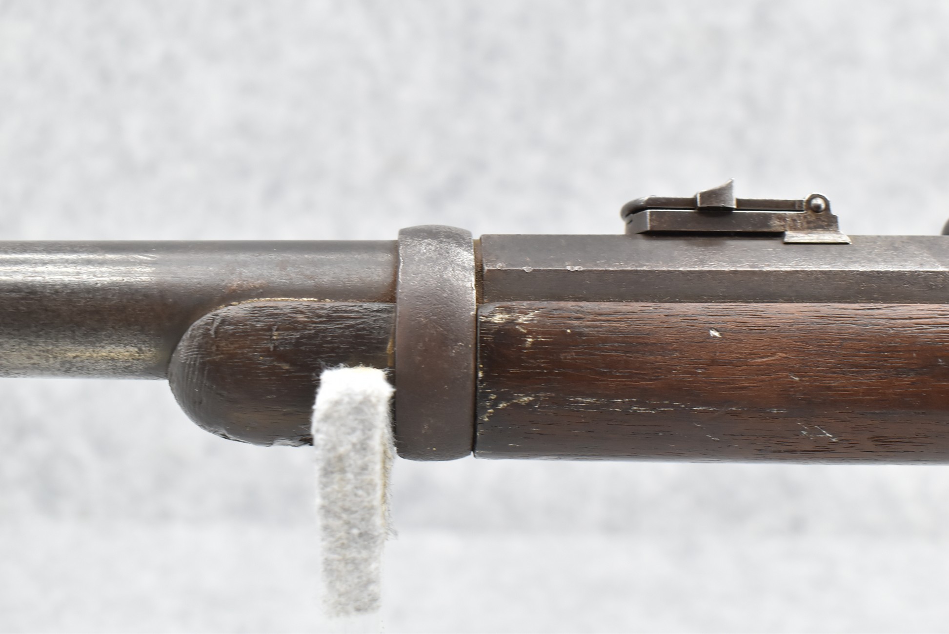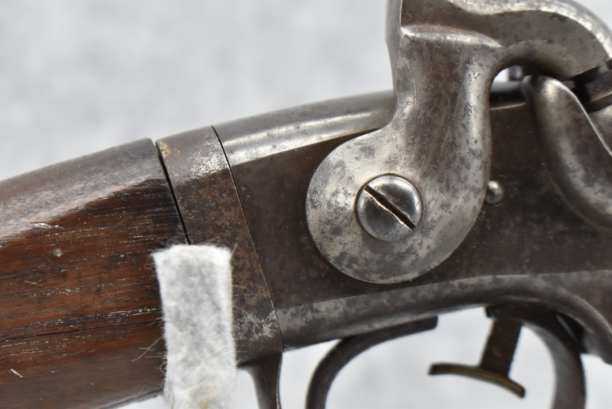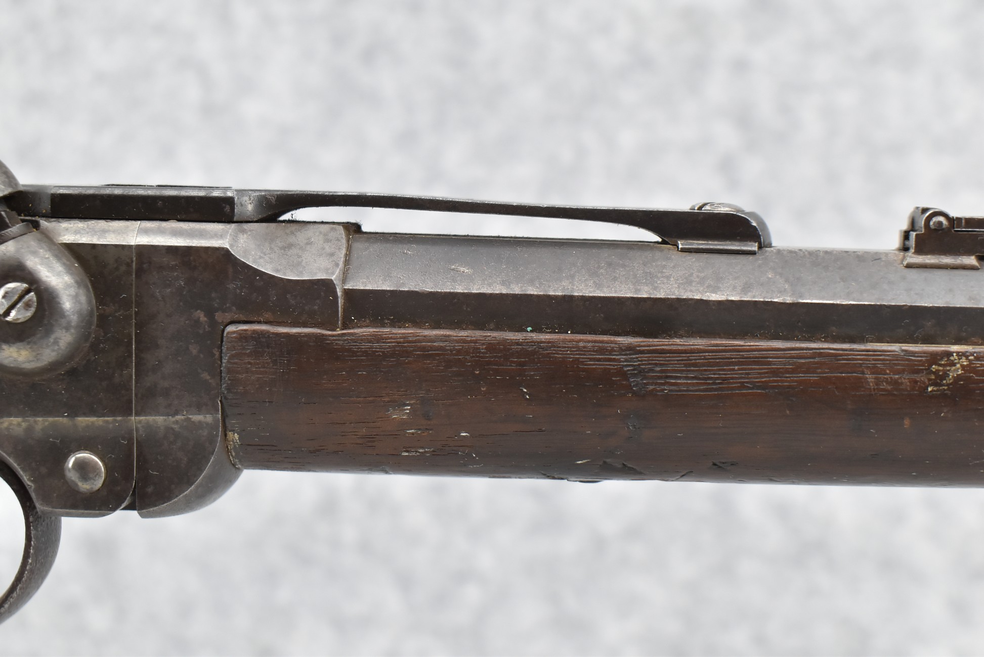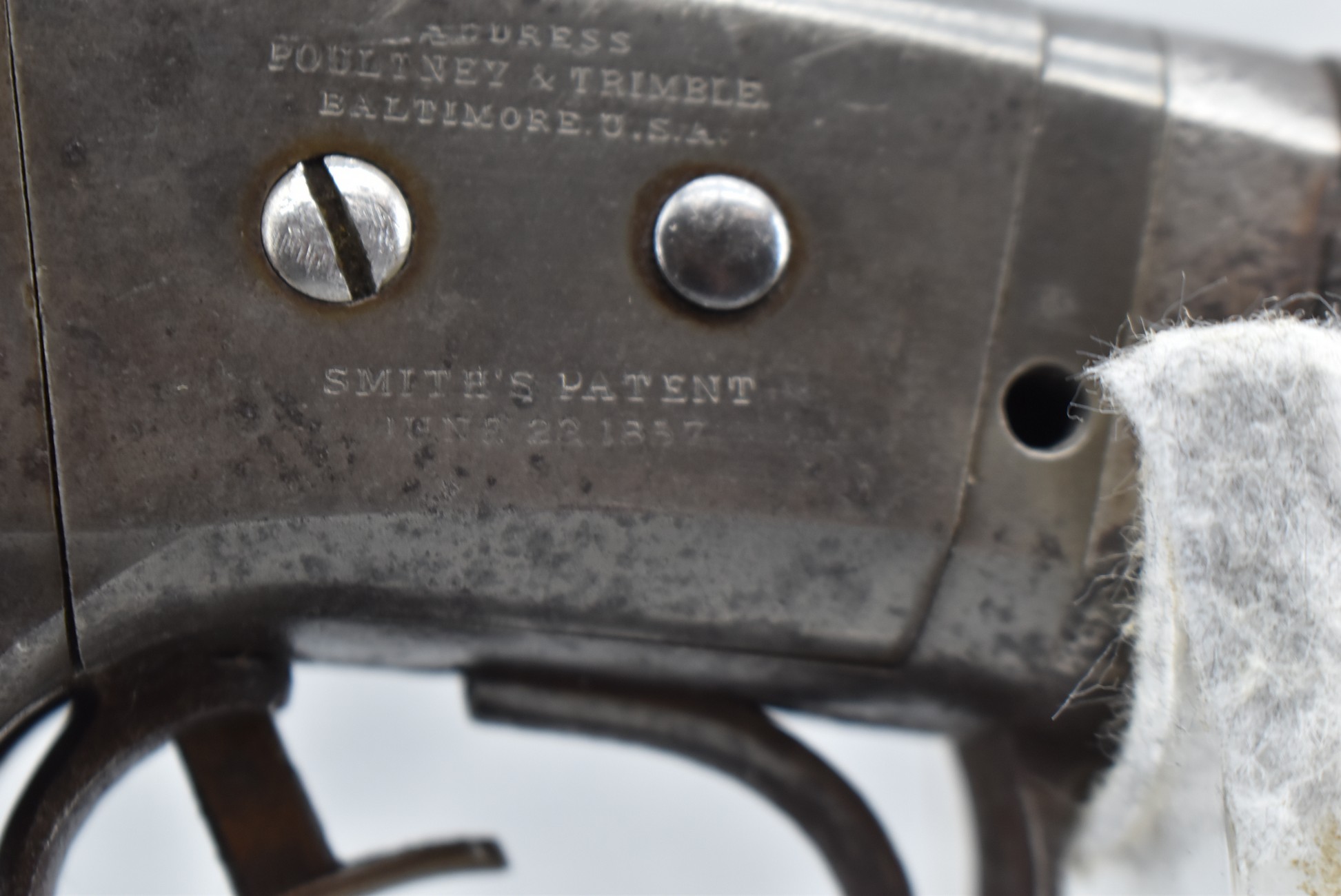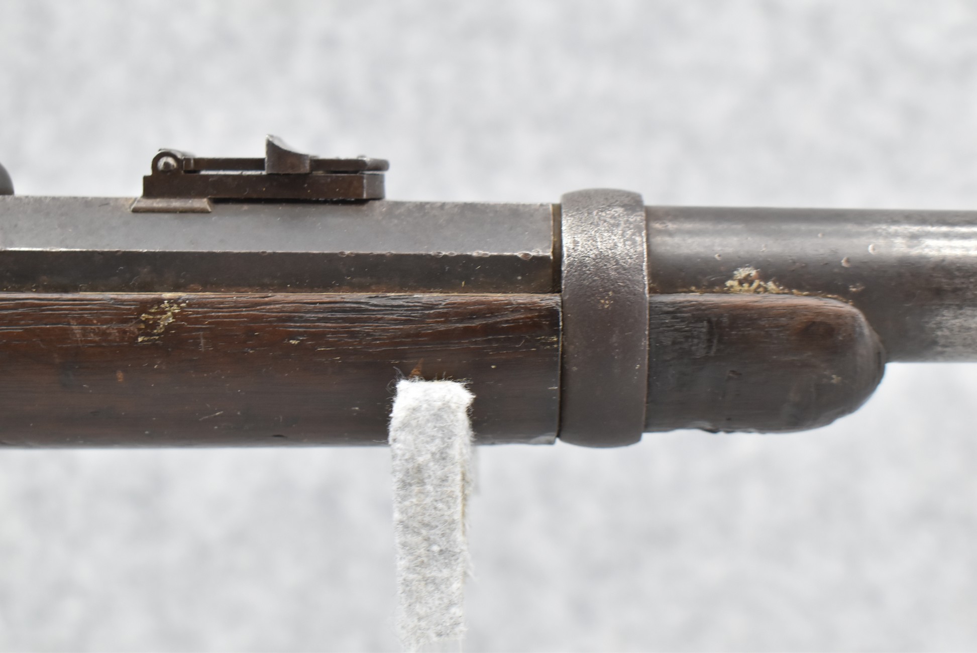 209. Poultney & Trimble – Mod. Smiths Carbine – 50 Cal. Percussion Breech Load Rifle – w/21 5/8” Round Barrel w/Blade Front & Adj. Rear Ladder Sights – Brown/Gray Finish – w/Straight Grip Wood Stock w/Factory Metal Butt Plate w/Vivid Stock Cartouche on Left Side – Approx. 30,000 Mfg. Between 1861-1865 – Note: Missing Saddle Ring & Bar