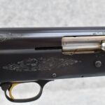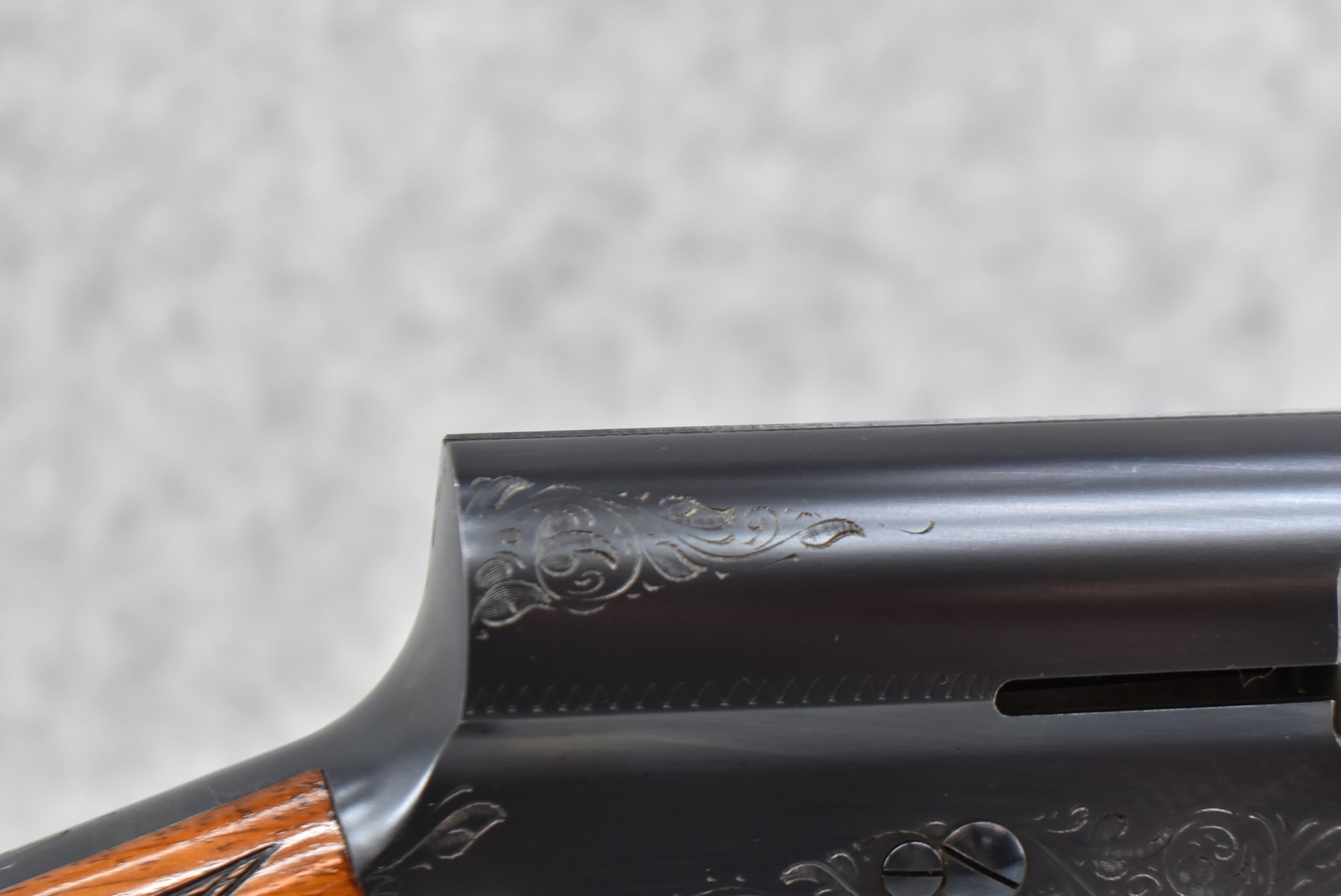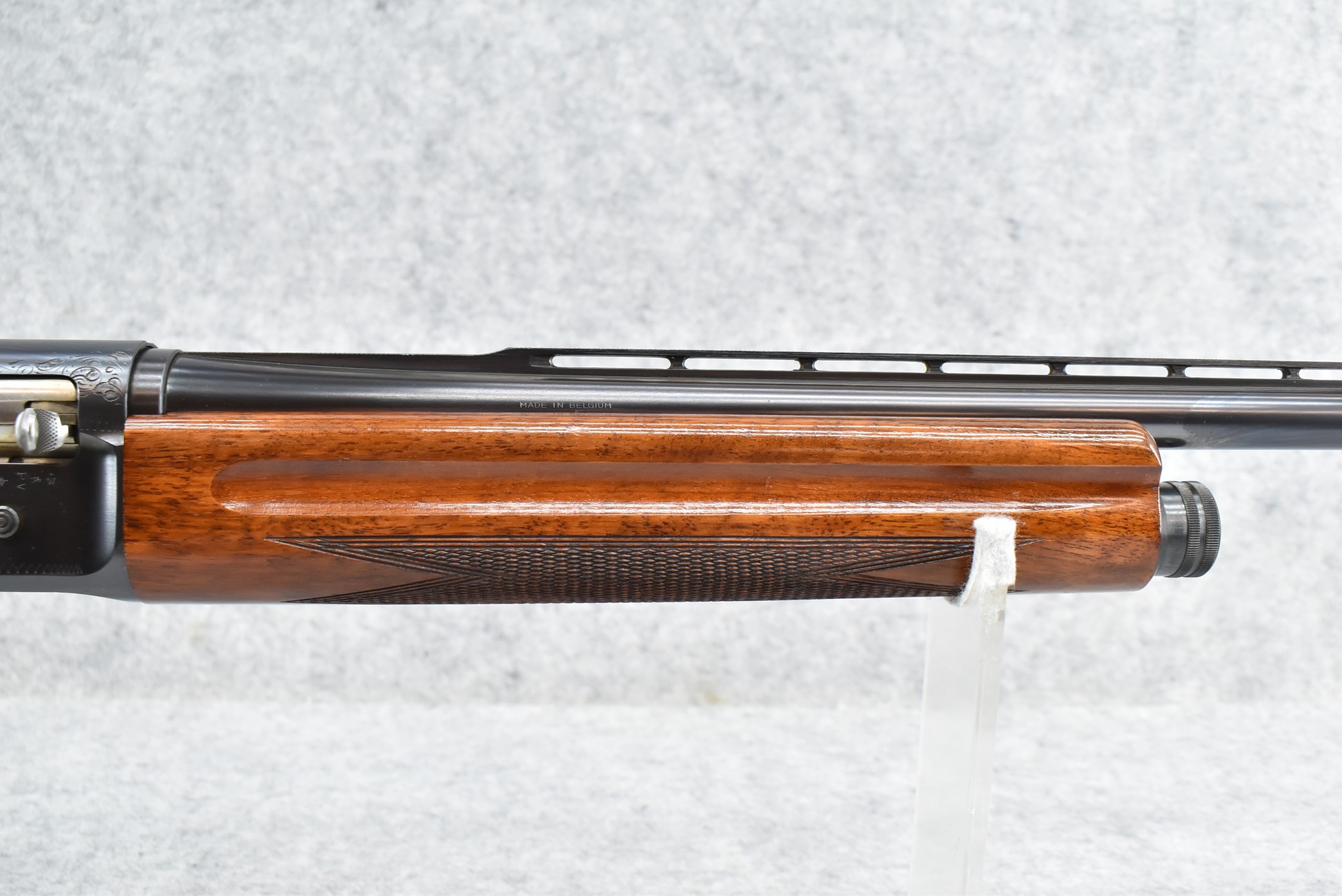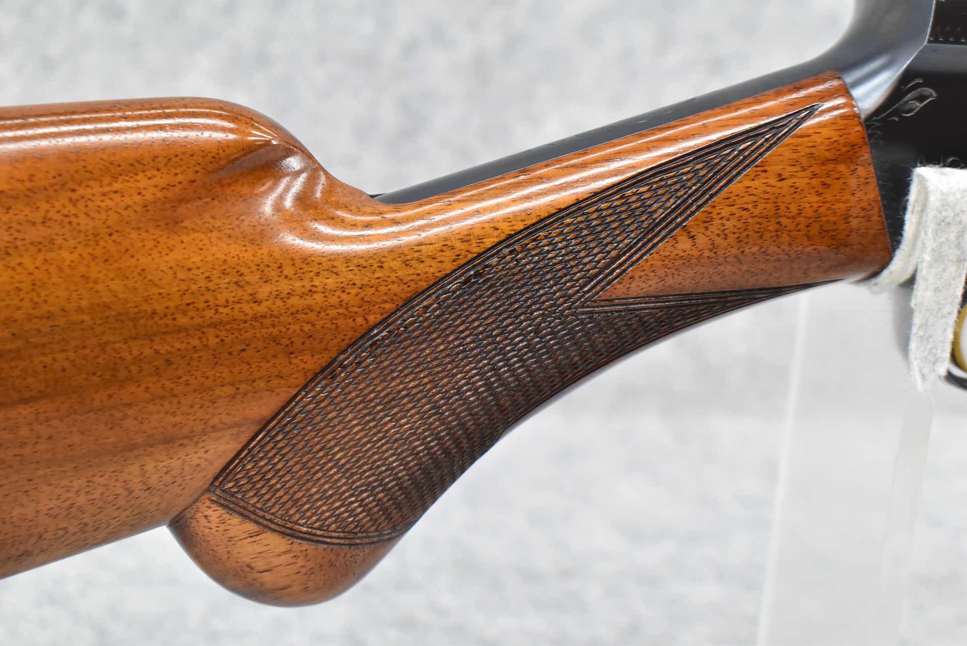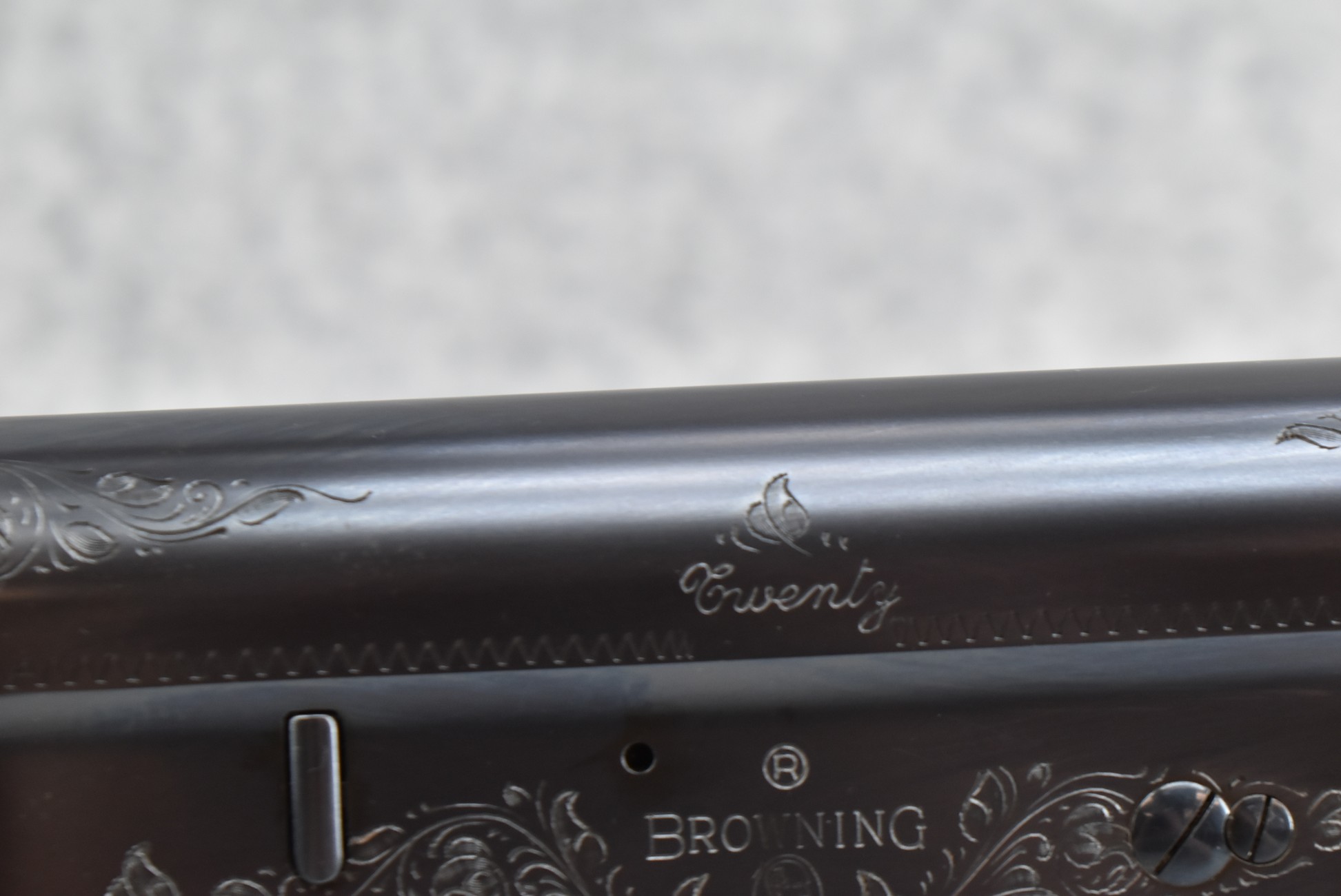 209R.     Browning (Belgian) – Mod. Auto-5 Twenty – 20ga. 2 ¾” Semi-Auto Shotgun – w/26” Mod Choke, Vent-Rib Barrel w/Front Bead Sight – Blued Finish – w/Engraved Receiver – w/Checkered Rounded Knob Pistol Grip Wood Stock w/Factory Butt Plate – w/Gold Trigger
