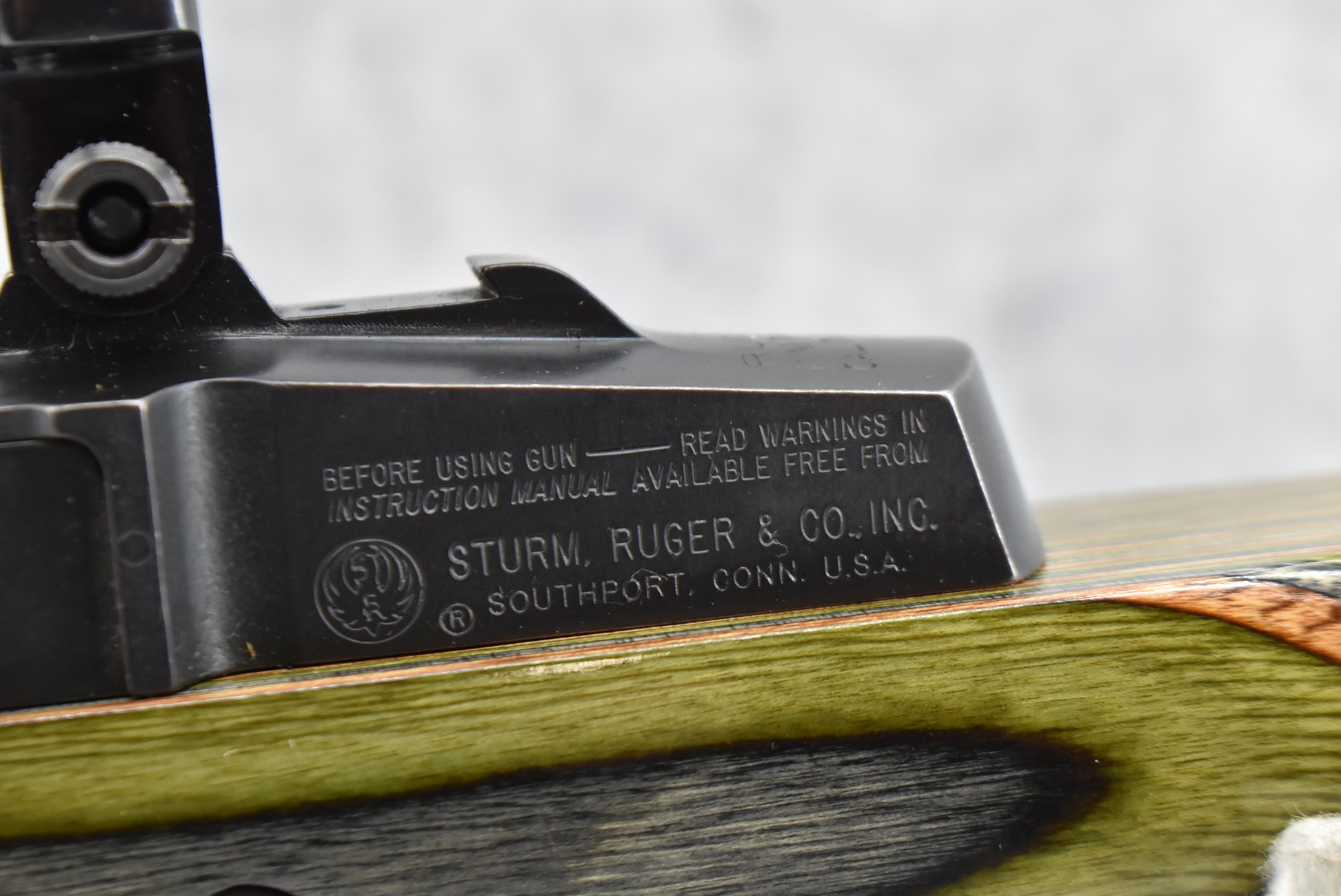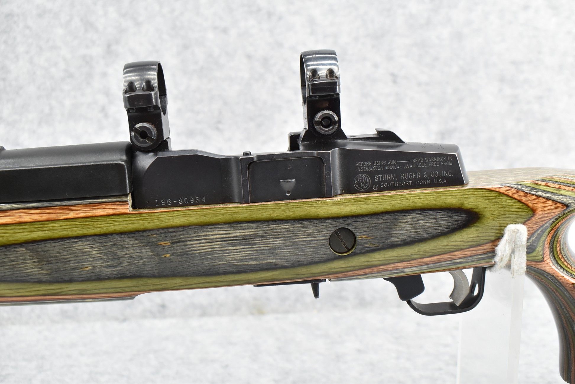 20R. Ruger – Mod. Mini Thirty – 7.62x39mm Cal. Semi-Auto Rifle – w/21” Barrel w/Ruger 1” Mounting Rings – Blued Finish – w/Custom Revelations Green Laminated Thumbhole Pistol Grip Wood Stock w/Butt Pad – w/1 Factory Detachable Magazine