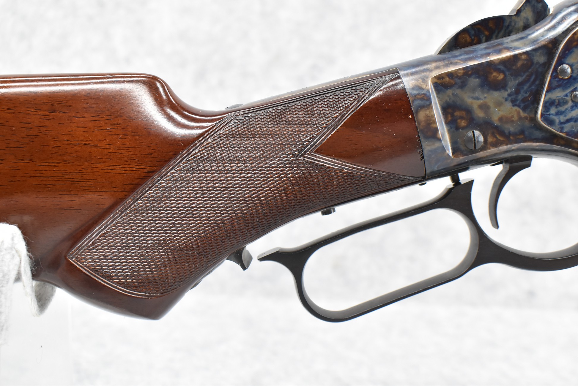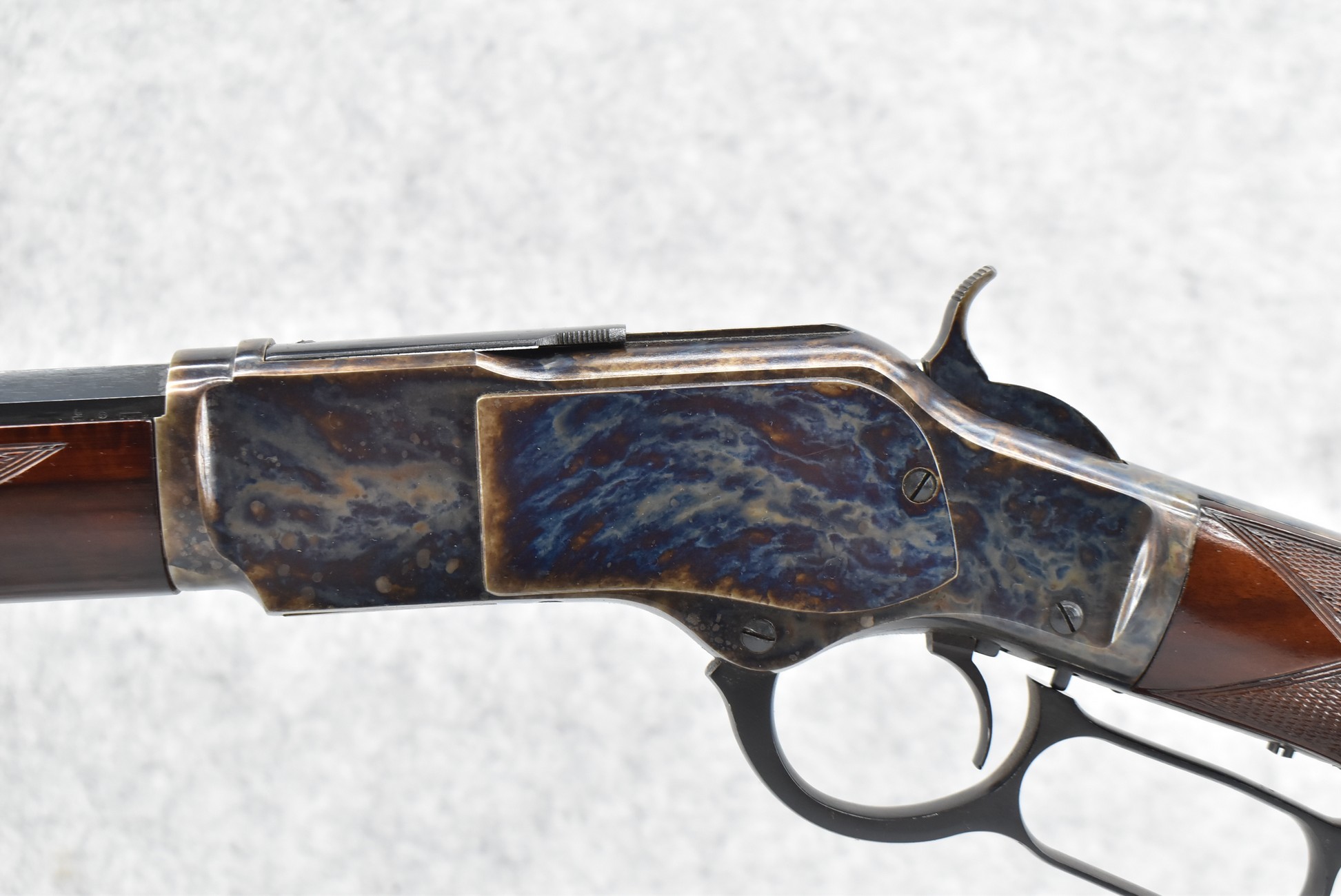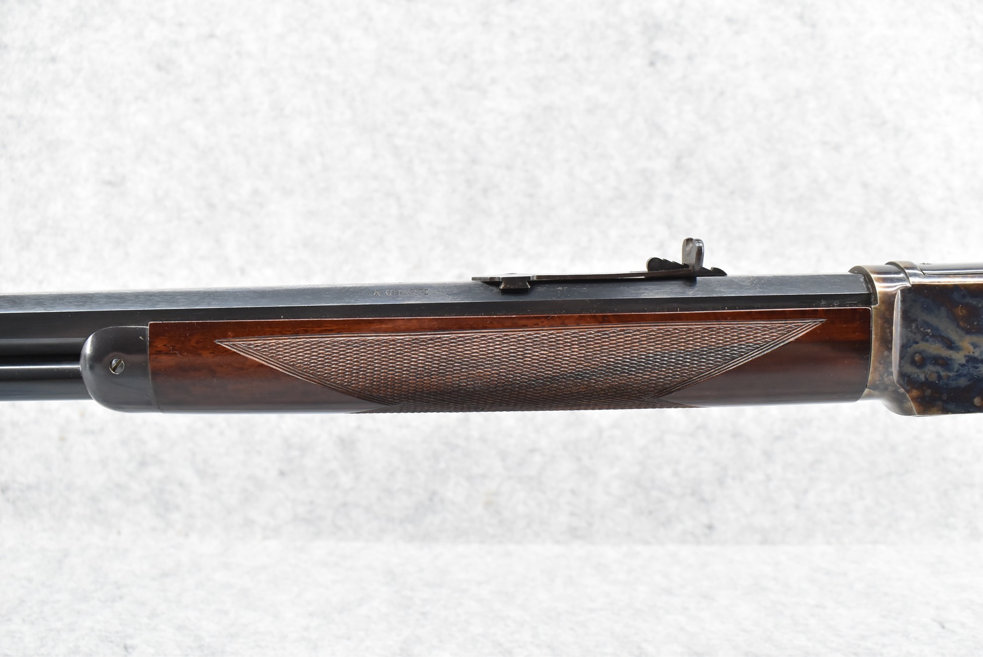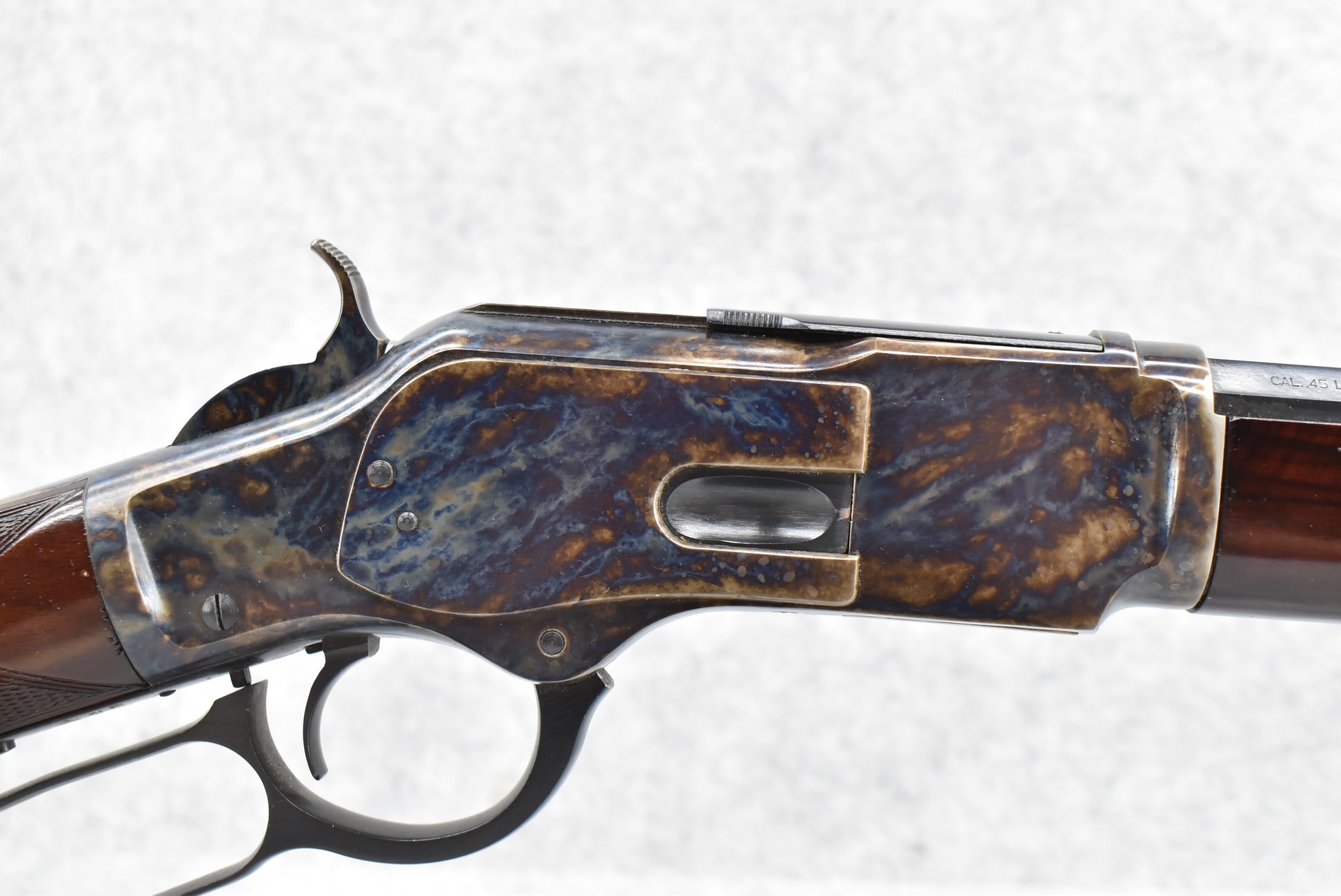 20R. Uberti – Mod. 1873 Deluxe – 45 Long Colt Cal. Lever Action Rifle – w/30” Octagon Barrel w/Blade Front and Adjustable Rear Semi-Buckhorn Sights – Blued Finish w/Case Hardened Frame – w/Checkered Pistol Grip Wood Stocks w/Crescent Butt Plate – w/Full Length Tubular Magazine