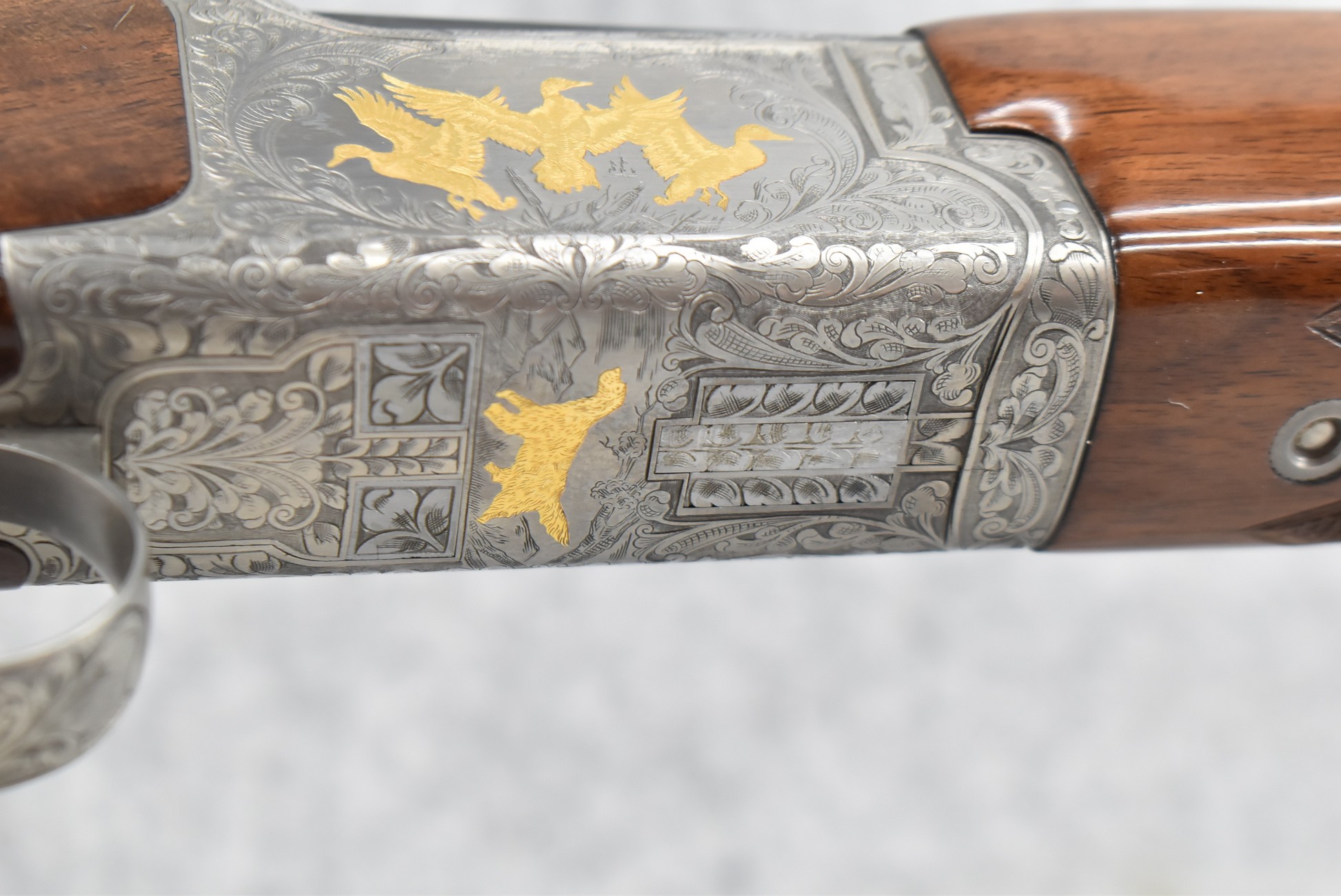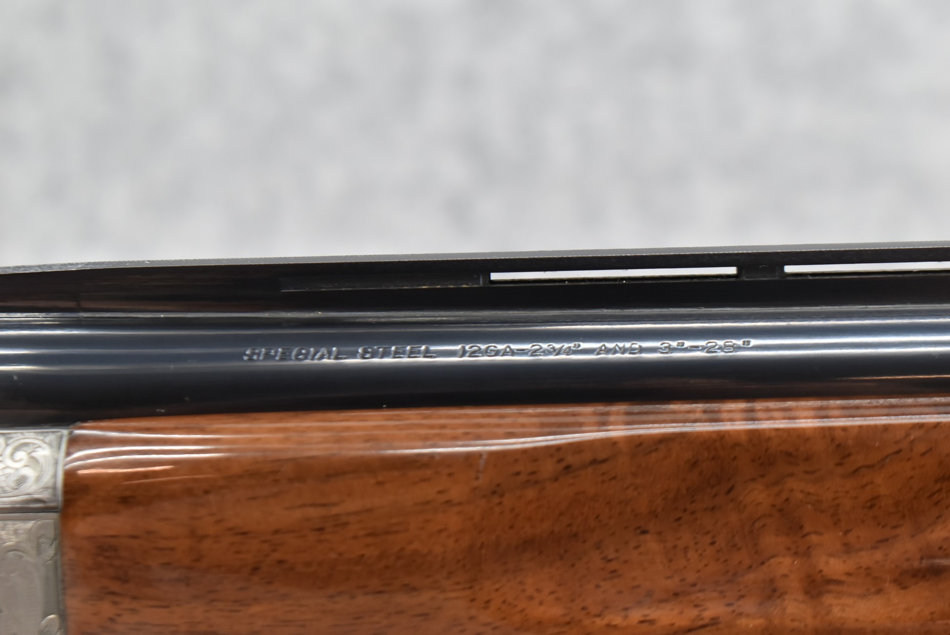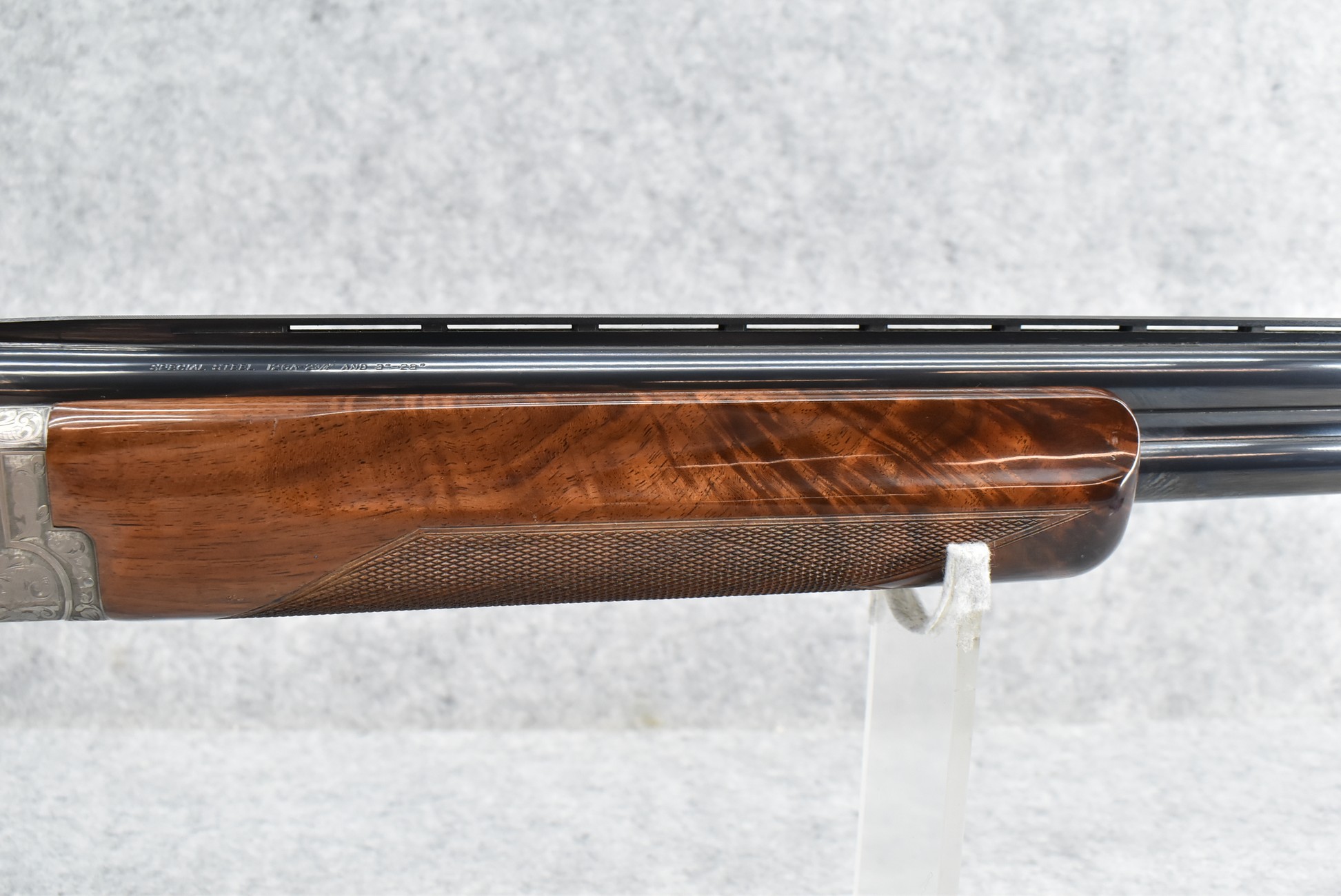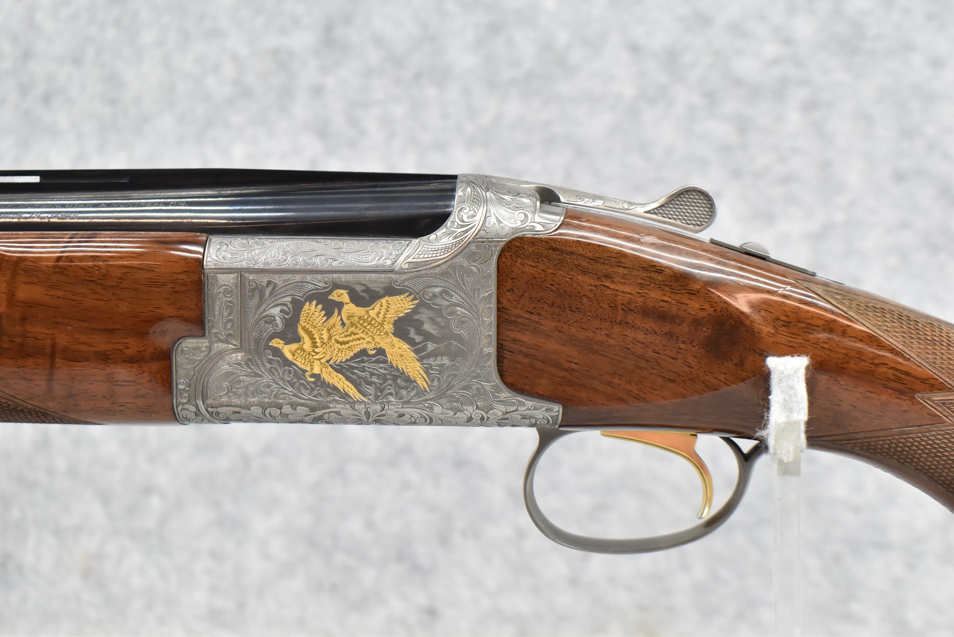 210R.     Browning – Mod. Citori Lightning Guide VI – 12ga. 3” Over-Under Shotgun – w/28” Inv. Choked, Vent-Rib Barrels w/Bead Sight – Blued/Stainless Finish w/Gold Accents – w/Extensively Engraved Frame on All Sides Including Trigger Guard & Barrel Latch w/Gold Accented Pheasant, Mallard, Quail & Hunting Dog Scenes – w/Highly Figured Deluxe Checkered Pistol Grip Wood Stocks w/Factory Butt Pad – w/Single Select Trigger