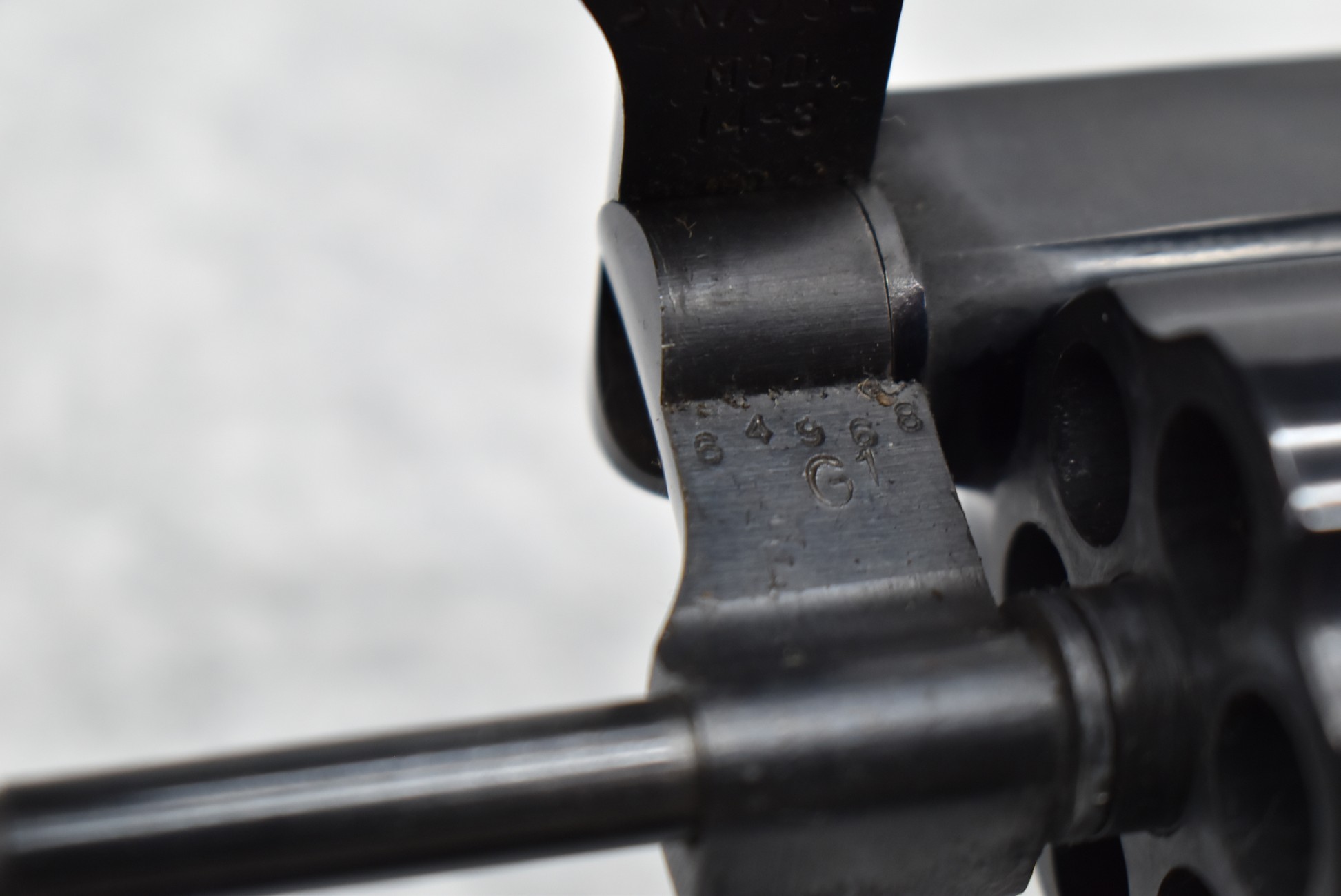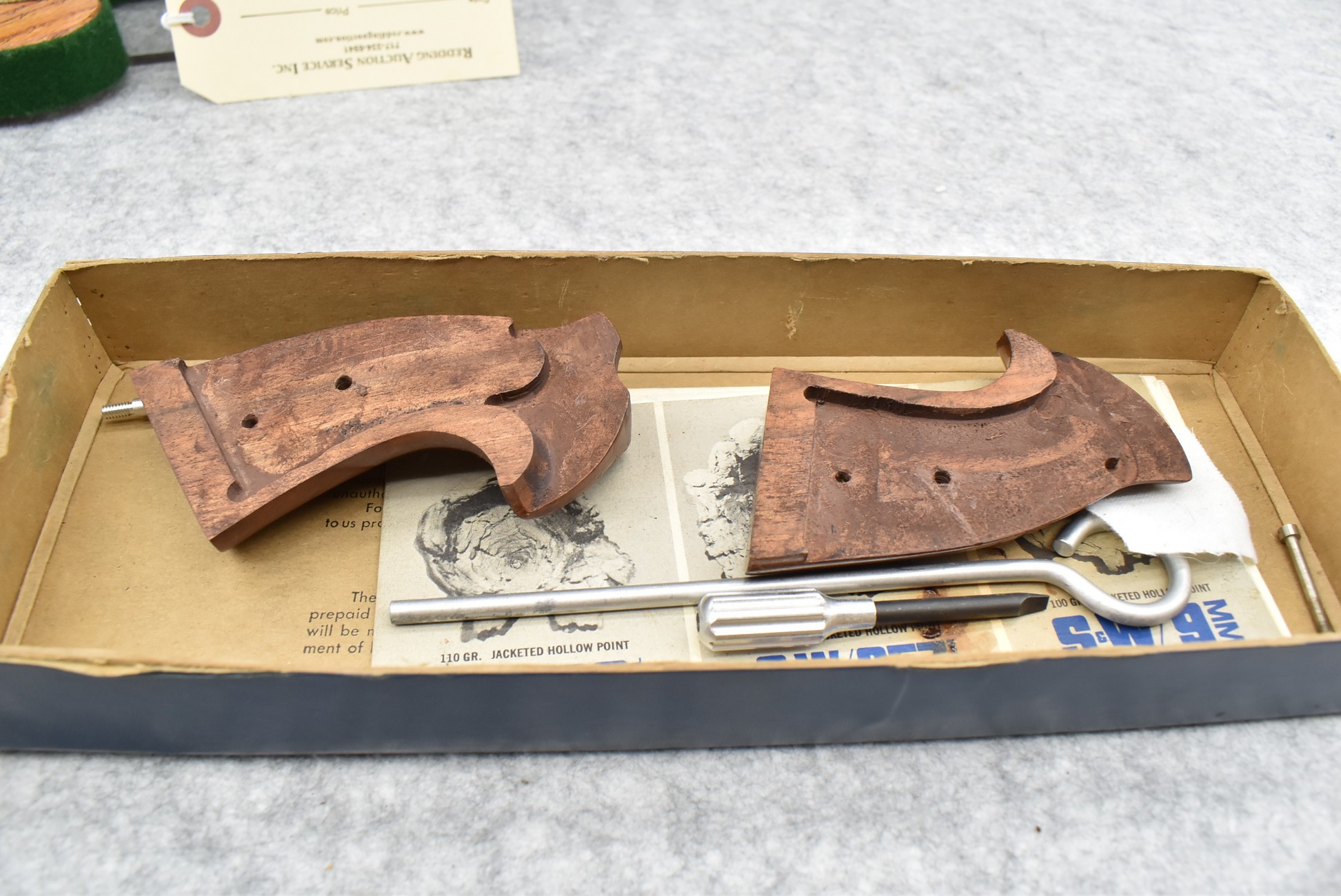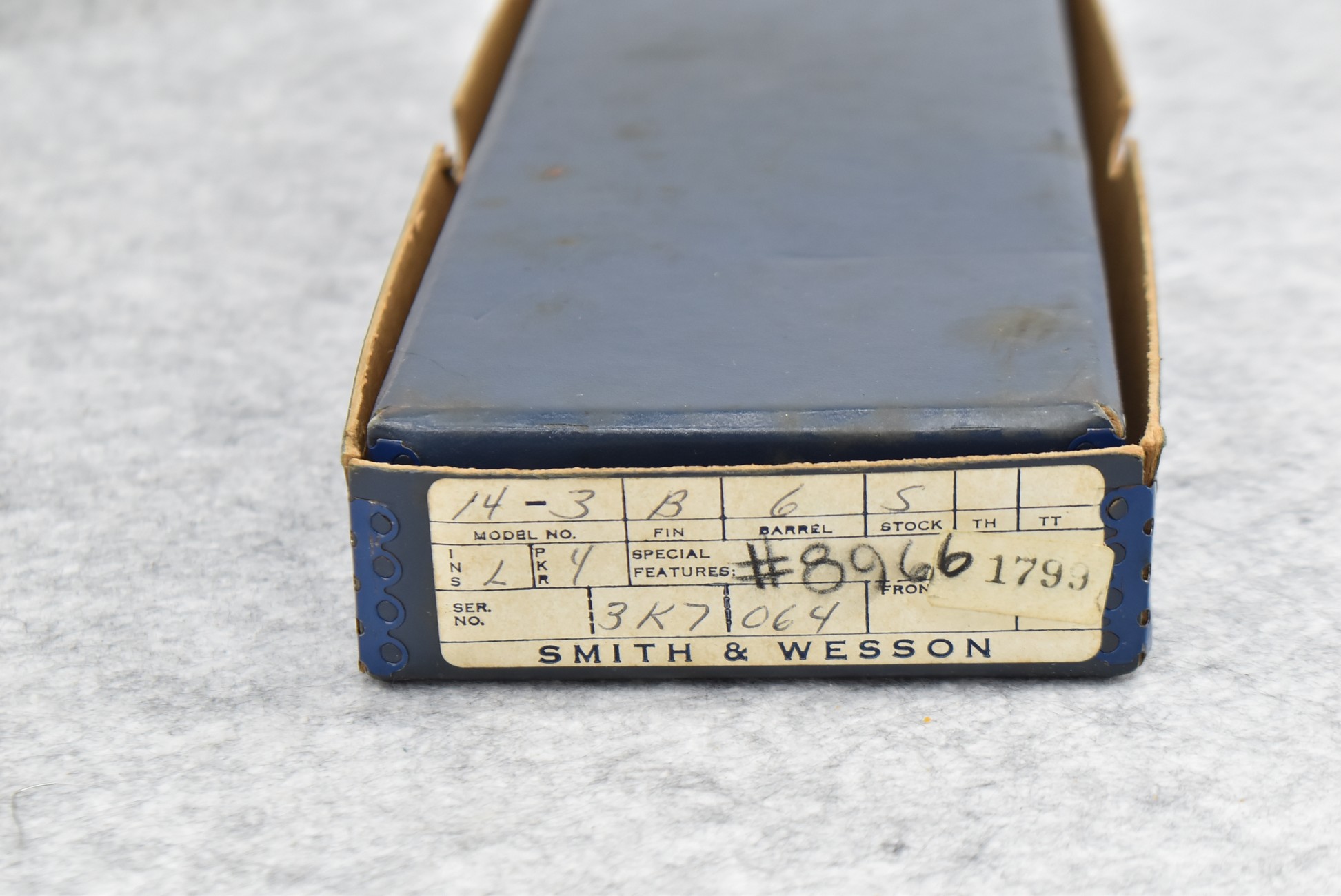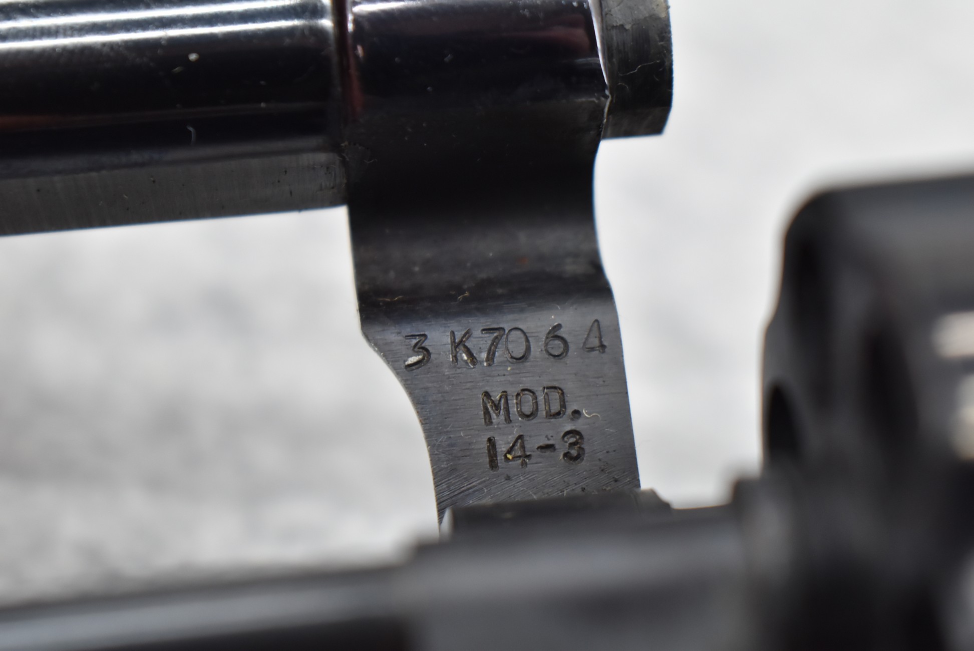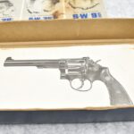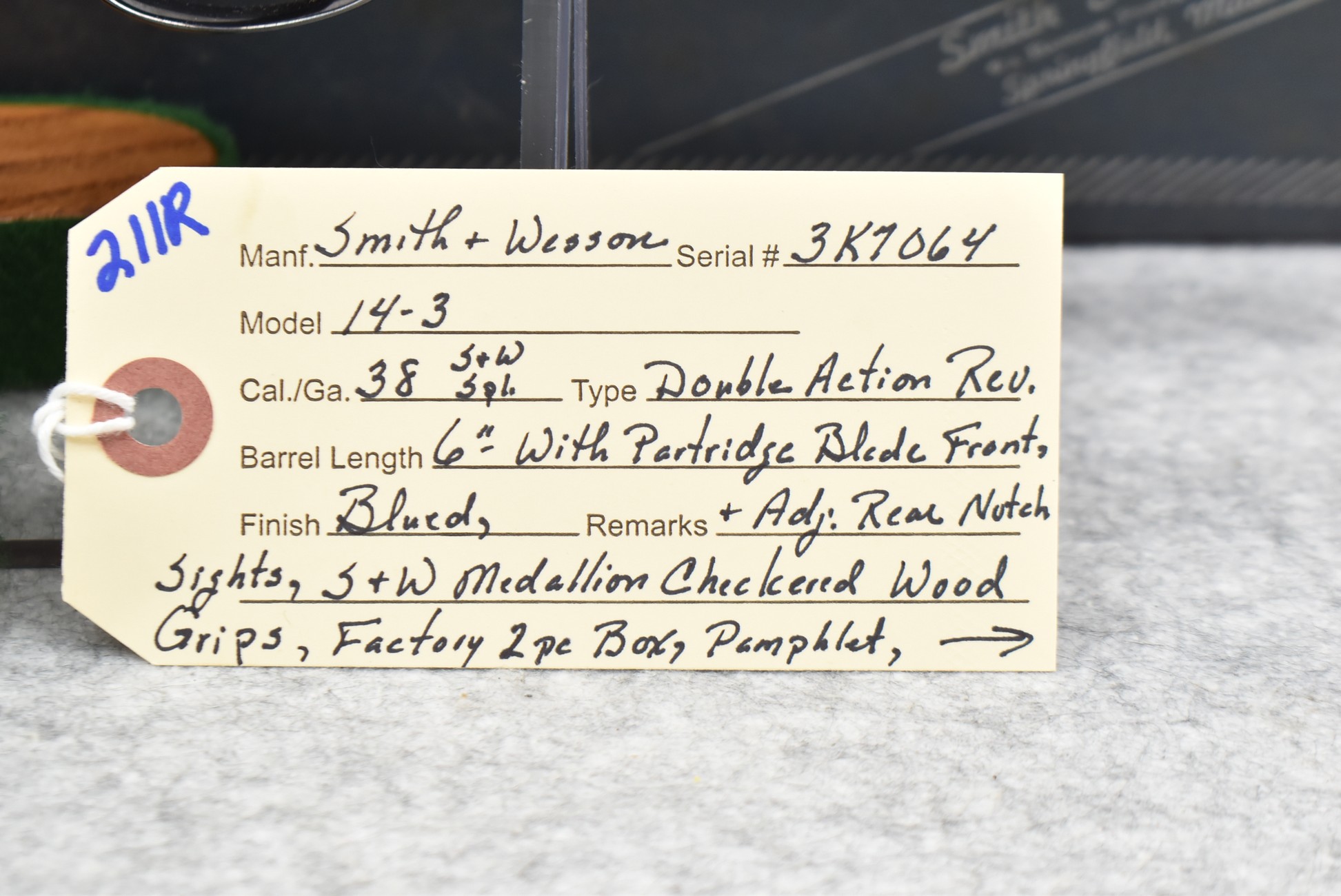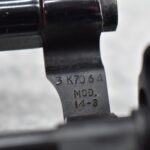 211R. Smith & Wesson – Mod. 14-3 – 38 S&W Spl. Cal. Double Action Revolver – w/6” Barrel w/Partridge Blade Front & Adj. Rear Notch Sights – Blued w/S&W Medallion Checkered Wood Grips – w/Factory 2pc. Box, Pamphlet, Tools & Extra Custom Checkered Wood Target Grips