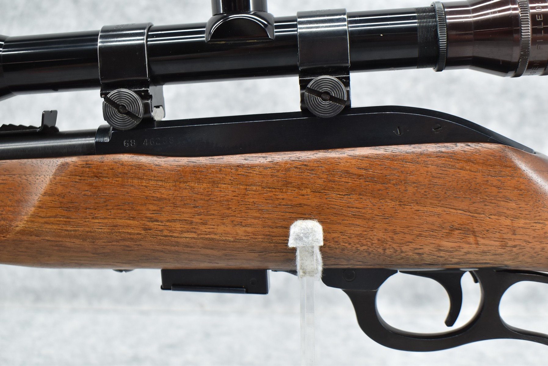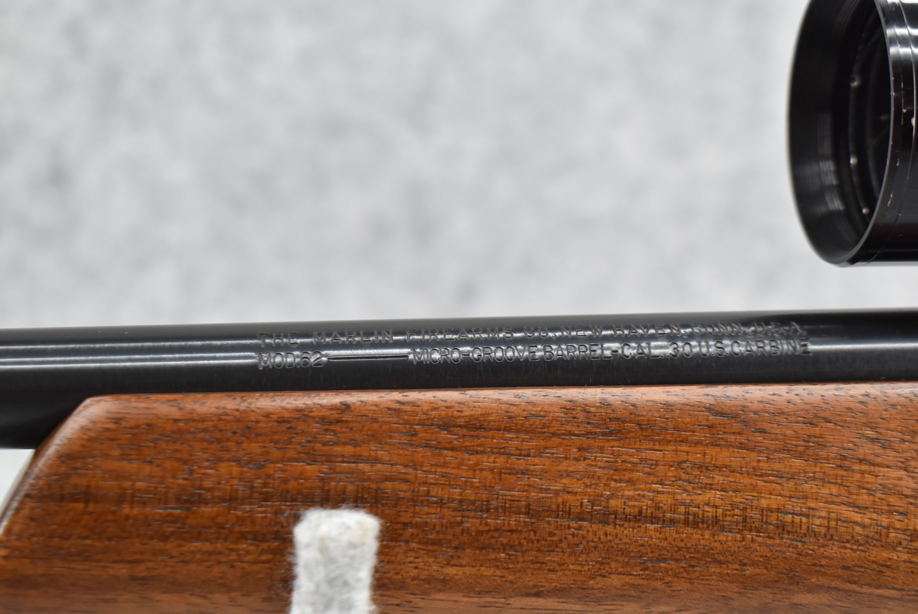 214R. Marlin – Mod. 62 Levermatic – 30 US (30 Carbine) Cal. Lever Action Rifle – w/19.5” Barrel w/Hooded Front & Adj. Rear Sights – Blued Finish – w/Pistol Grip Capped Wood Stock w/Factory Butt Plate – w/Marlin 700 6×40 “S Plus X” Scope – w/Weaver Base – Mfg. 1963-69