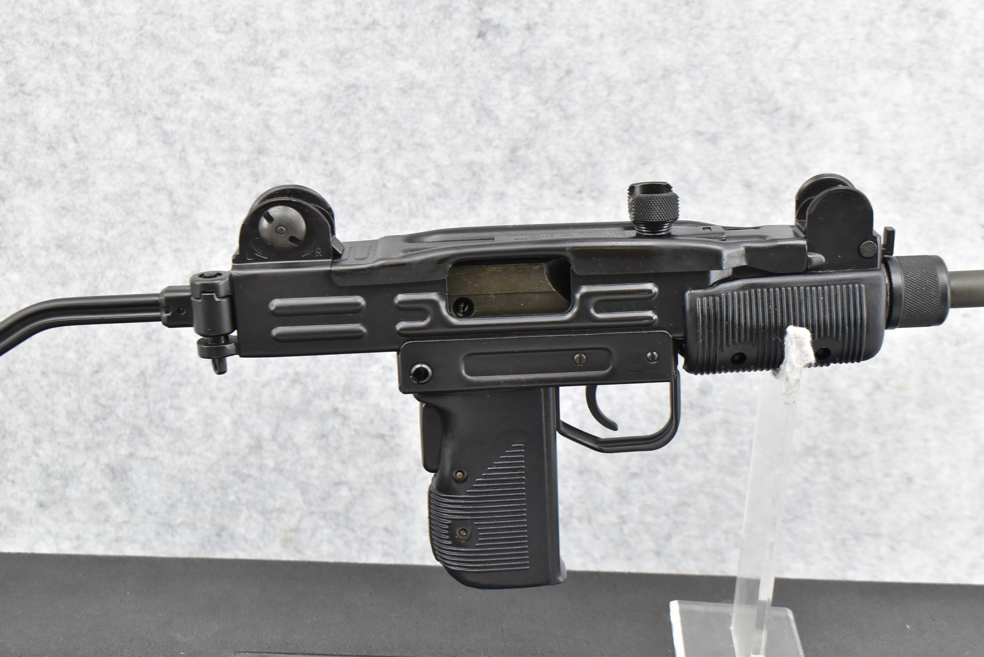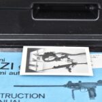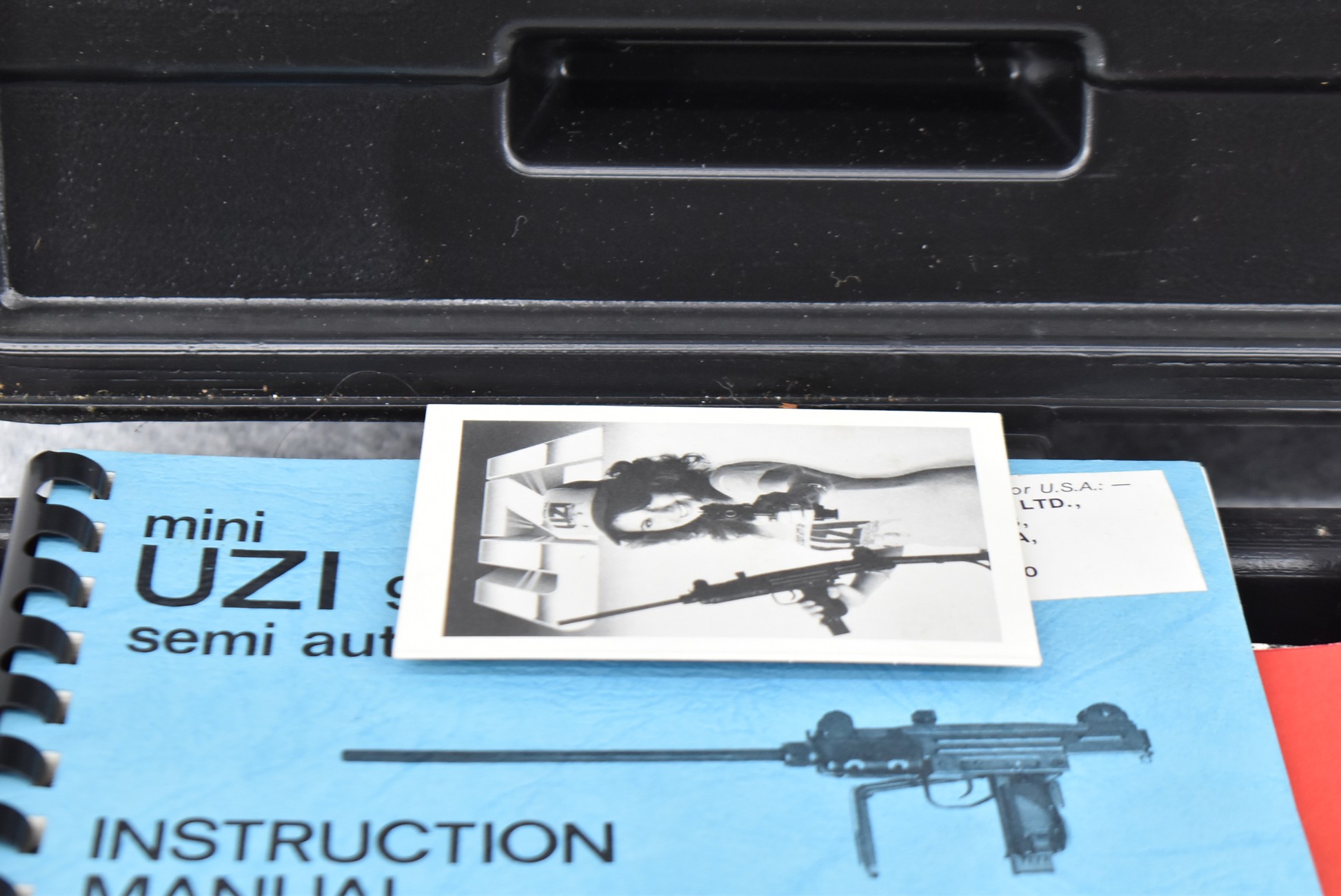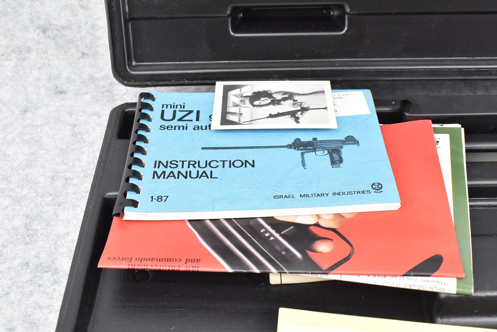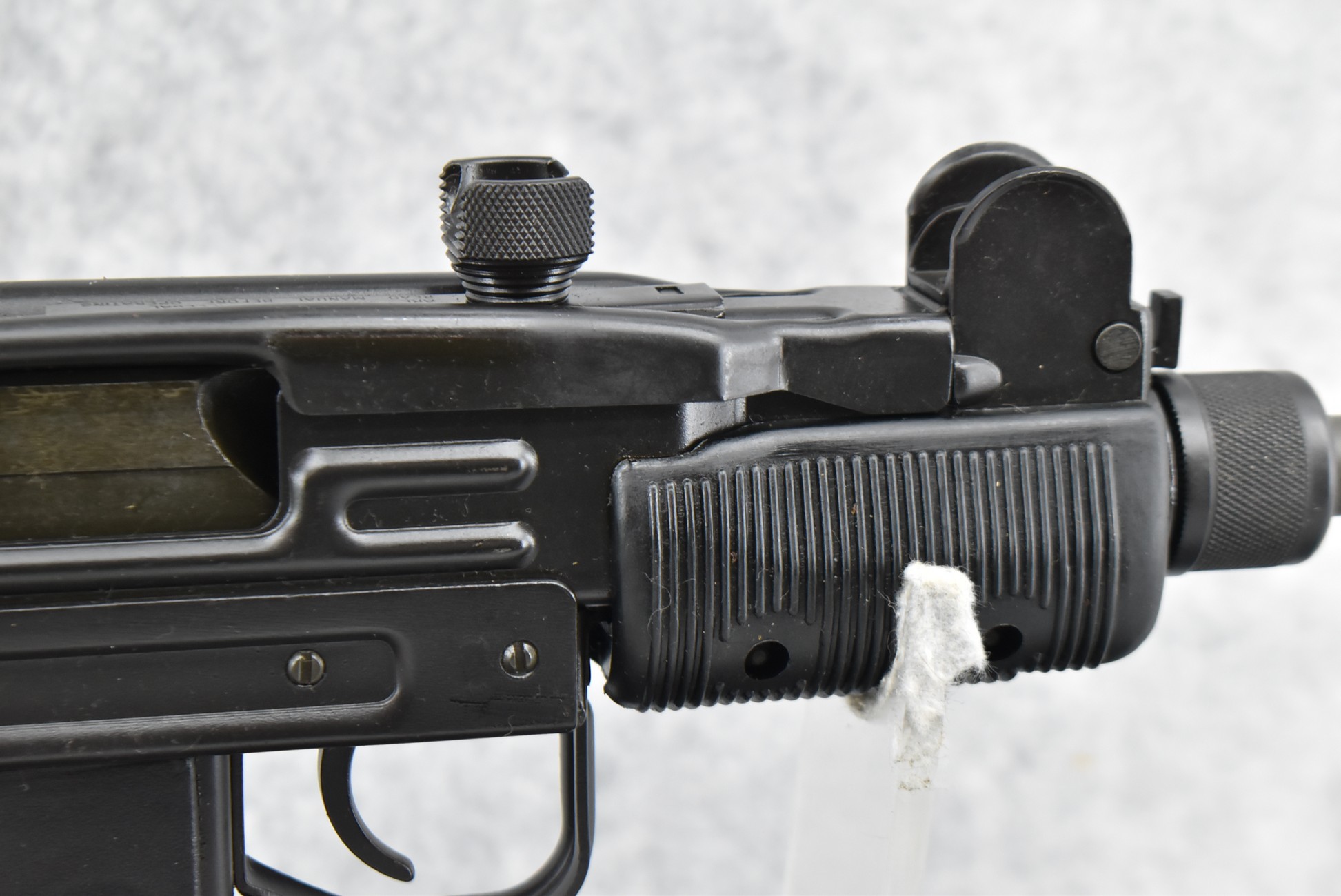 214R. UZI – Mod. Mini Carbine – 9mm Para Cal. Semi-Auto Rifle – w/20” Barrel w/Pin Front & Rear peep Adj. Sights – Blued Finish – w/Black Synthetic Pistol Grip & Forearm w/Folding Metal Butt Stock – w/Detachable Magazine – w/Sling – Unfired w/Factory Hard Case, Manuals & Dummy Barrel (CANNOT GO TO MARYLAND!)