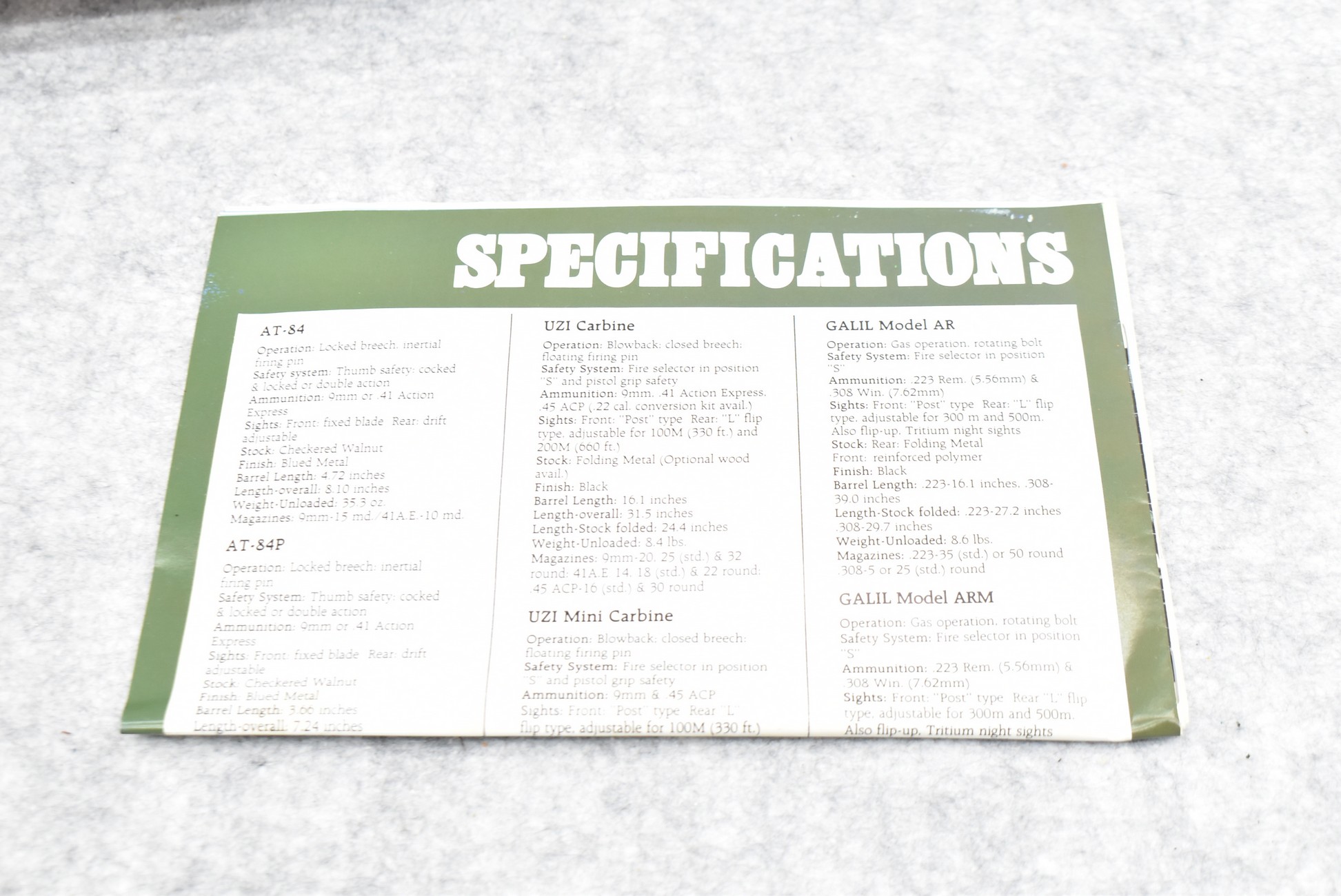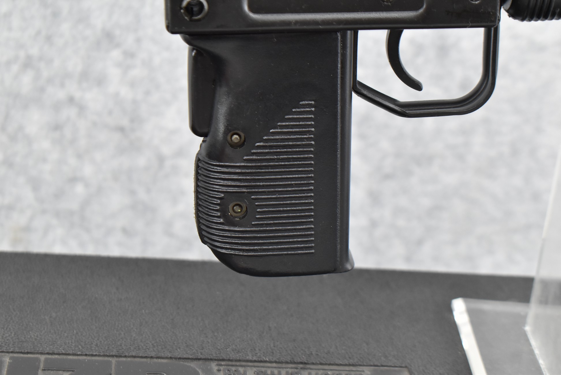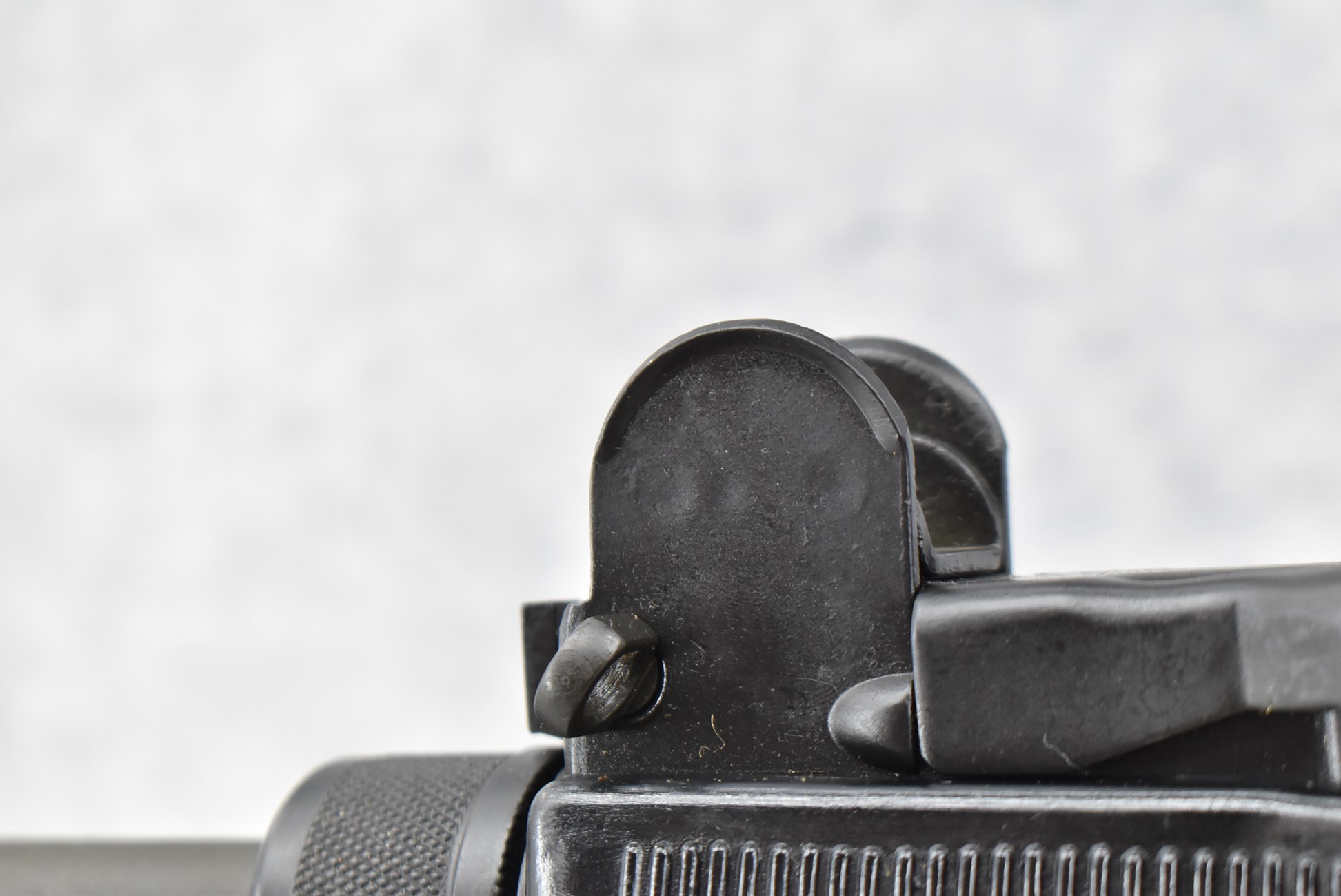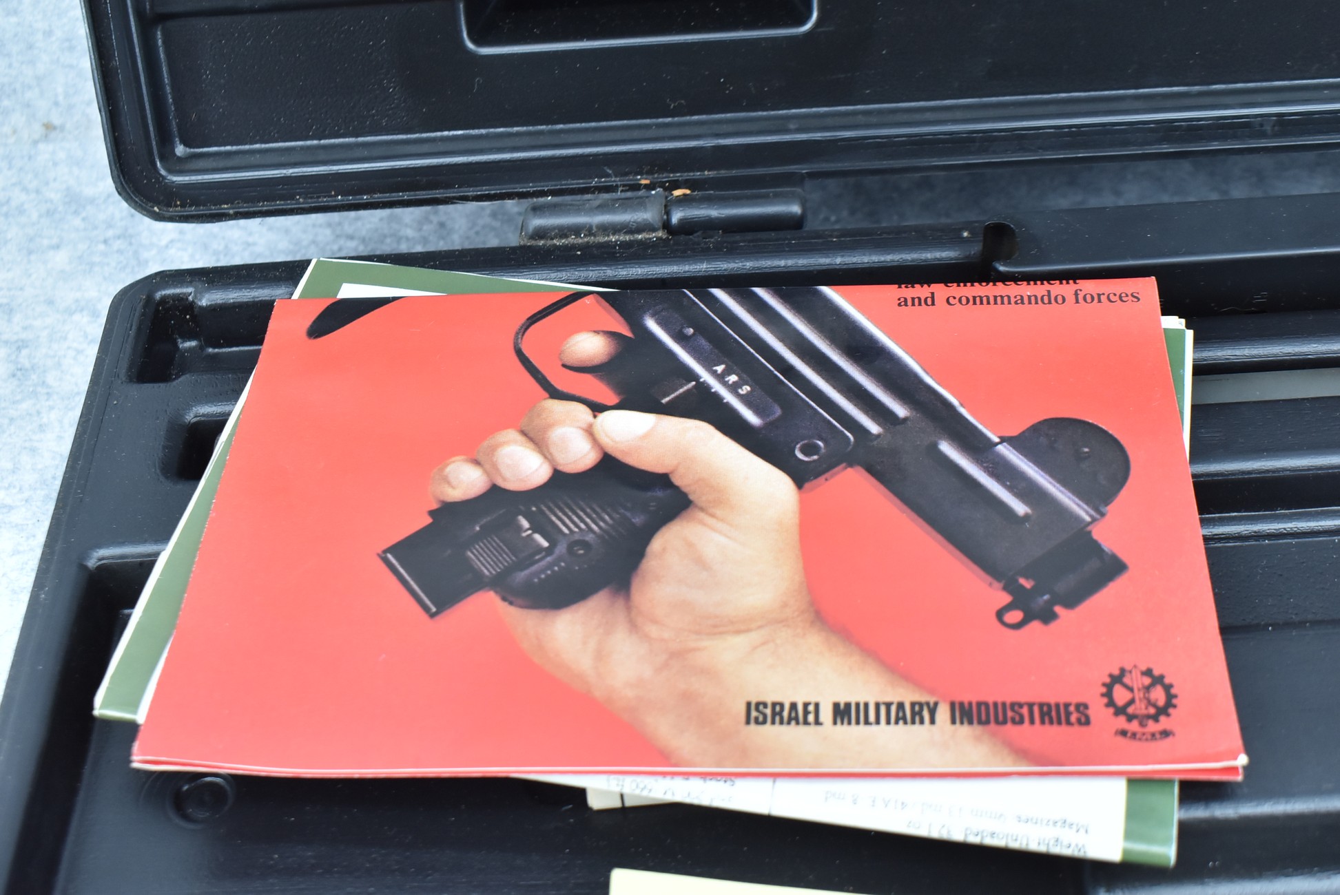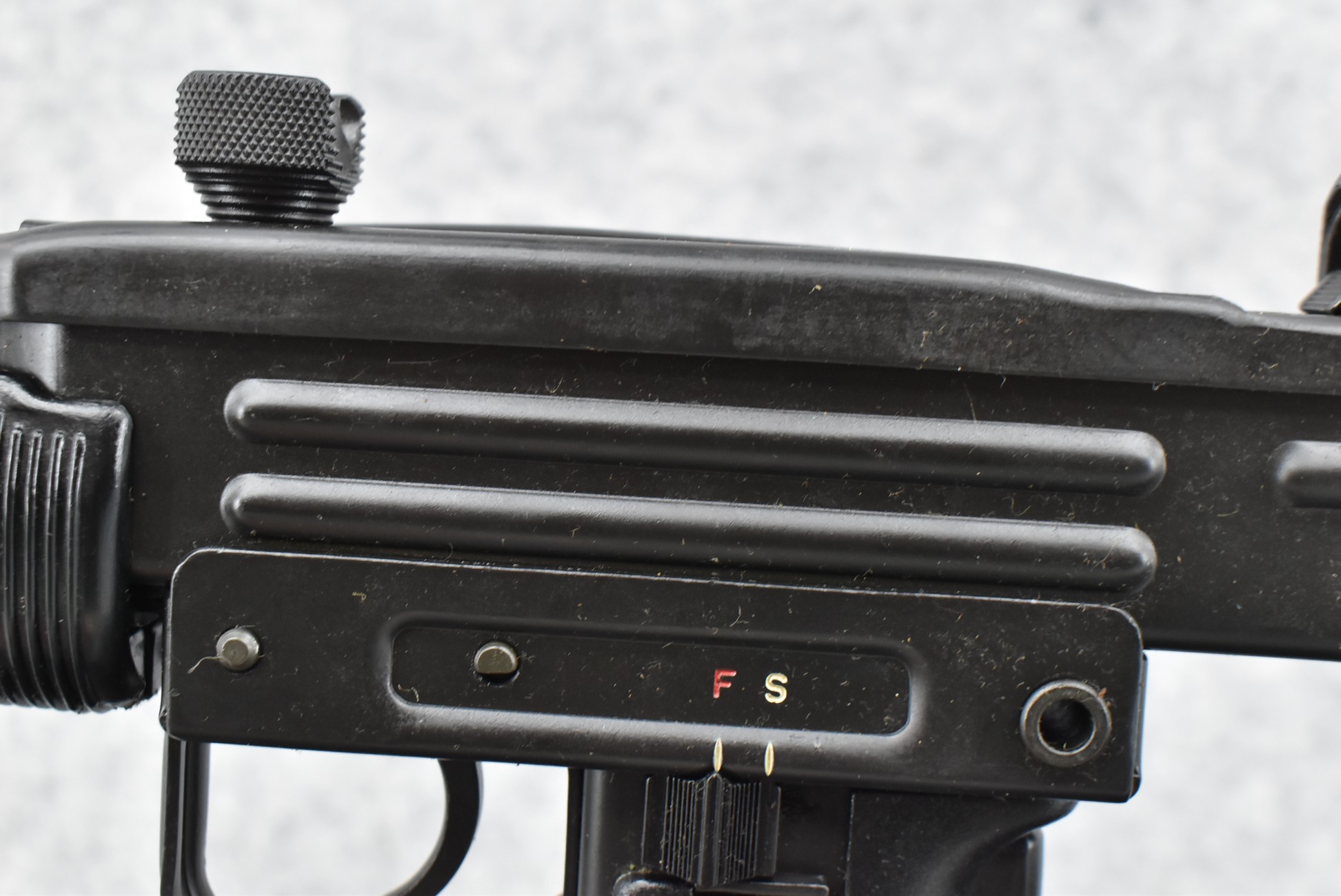 214R. UZI – Mod. Mini Carbine – 9mm Para Cal. Semi-Auto Rifle – w/20” Barrel w/Pin Front & Rear peep Adj. Sights – Blued Finish – w/Black Synthetic Pistol Grip & Forearm w/Folding Metal Butt Stock – w/Detachable Magazine – w/Sling – Unfired w/Factory Hard Case, Manuals & Dummy Barrel (CANNOT GO TO MARYLAND!)