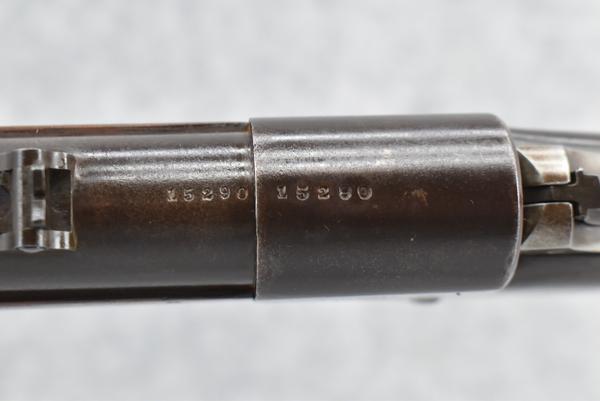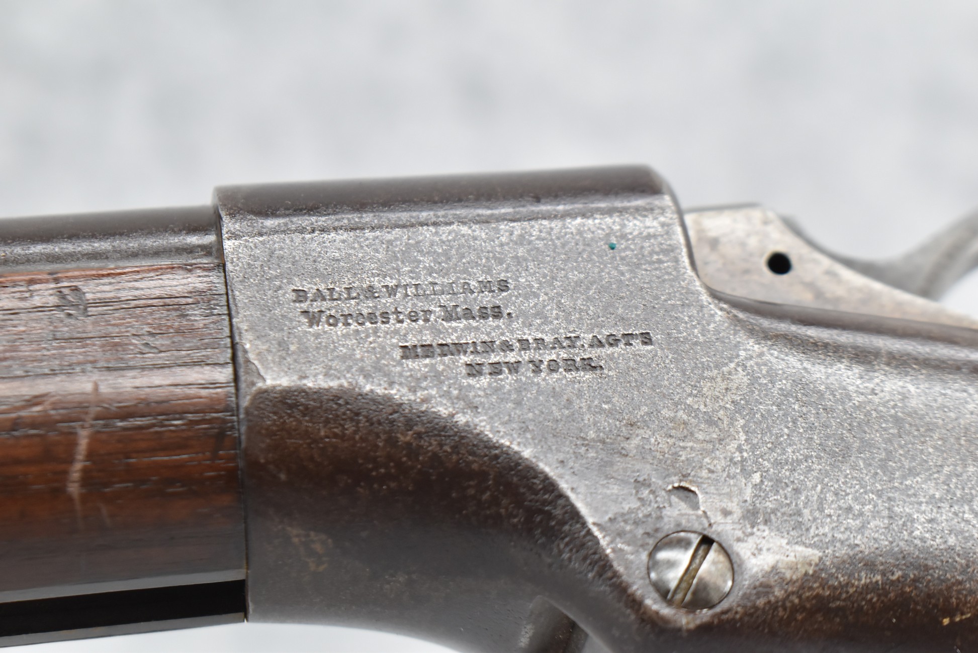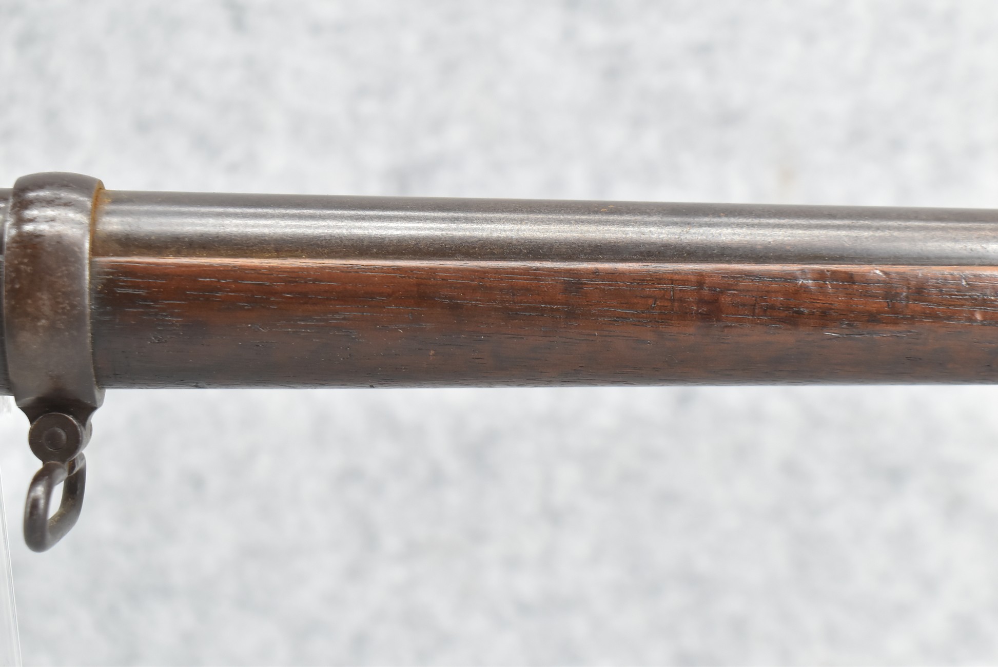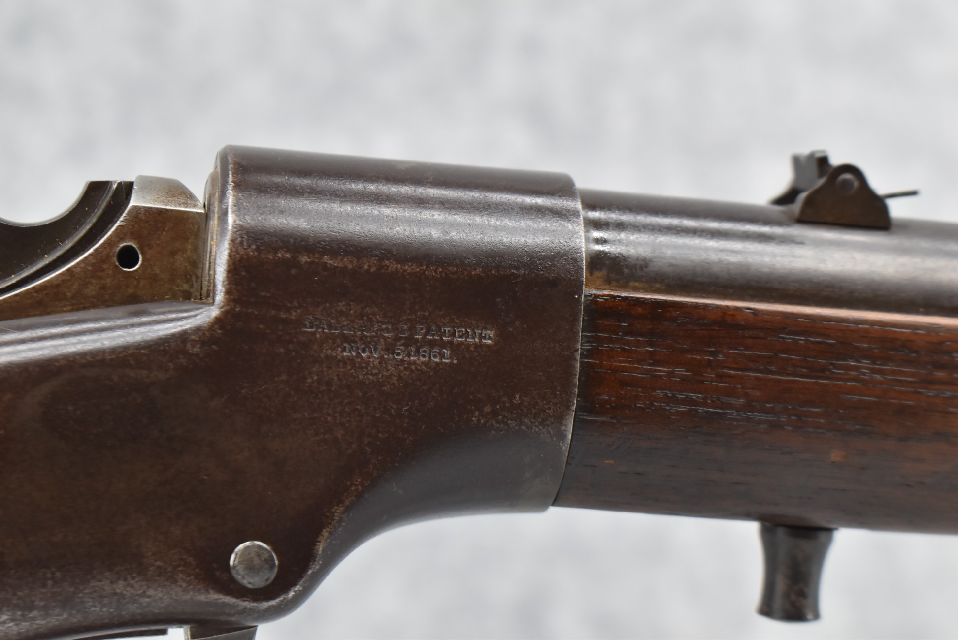 216. Ball & Williams – “Ballards Patent” Dual Ignition System aka “Alternate Ignition” – Appears 46 Rim. Cal. Single Shot Rifle – w/30” Round Barrel w/Front & Dual Flip Rear Sights – Blued/Brown Finish – w/Straight Grip Wood Butt Stock w/Metal Butt Plate & Full Length Wooden Forearm Held on by 3 Barrel Bands – w/Under Lever Ejector – w/Sling Swivels