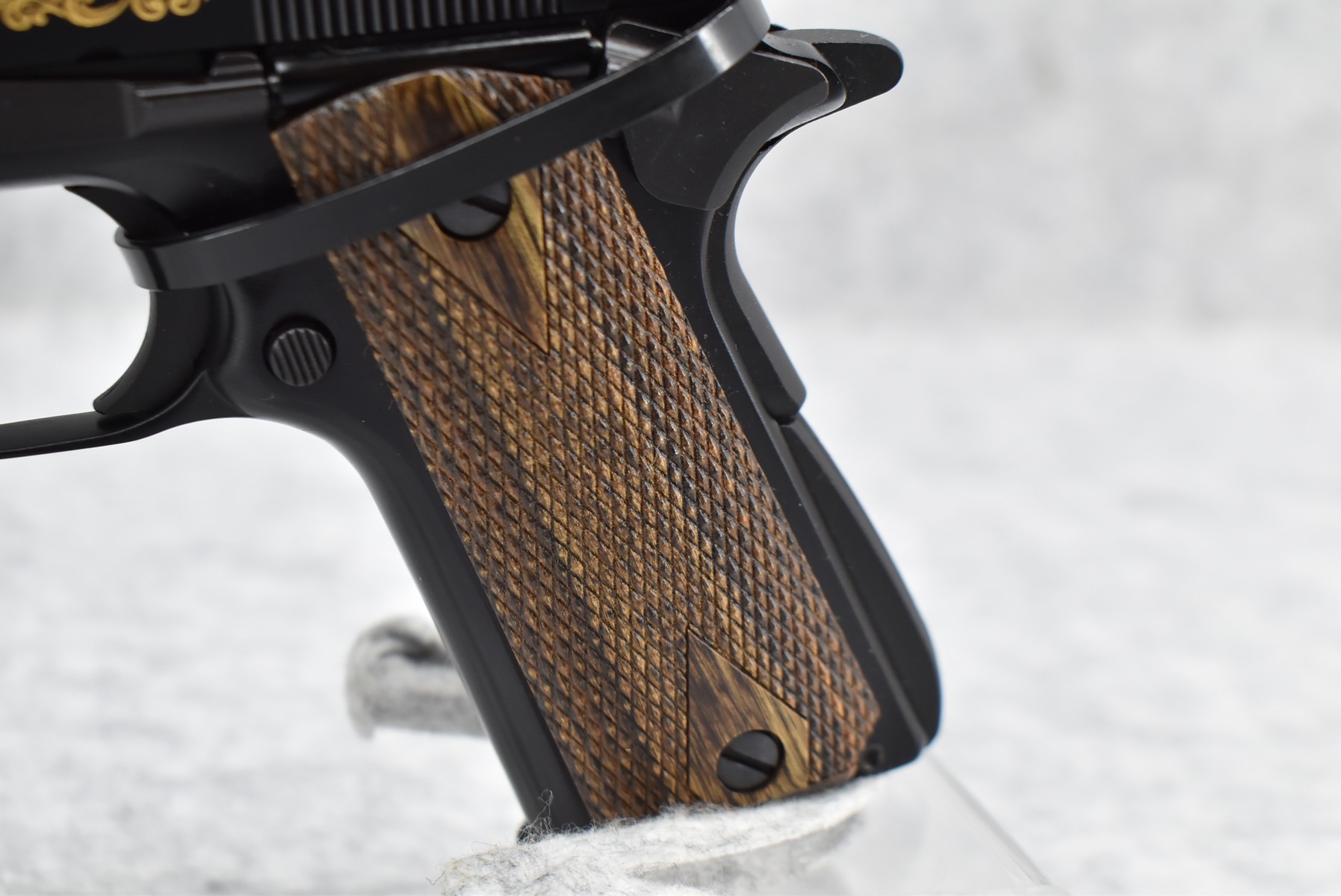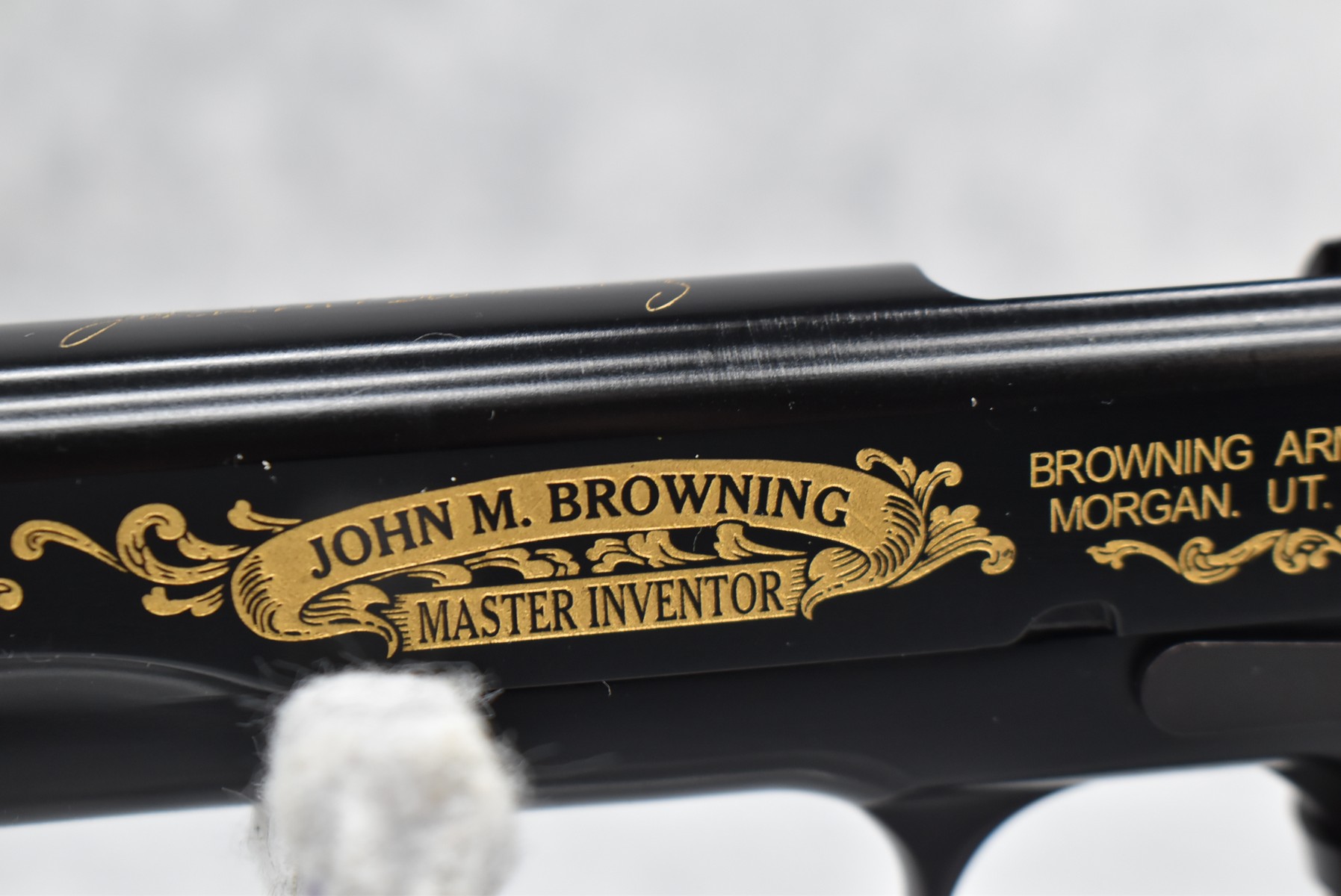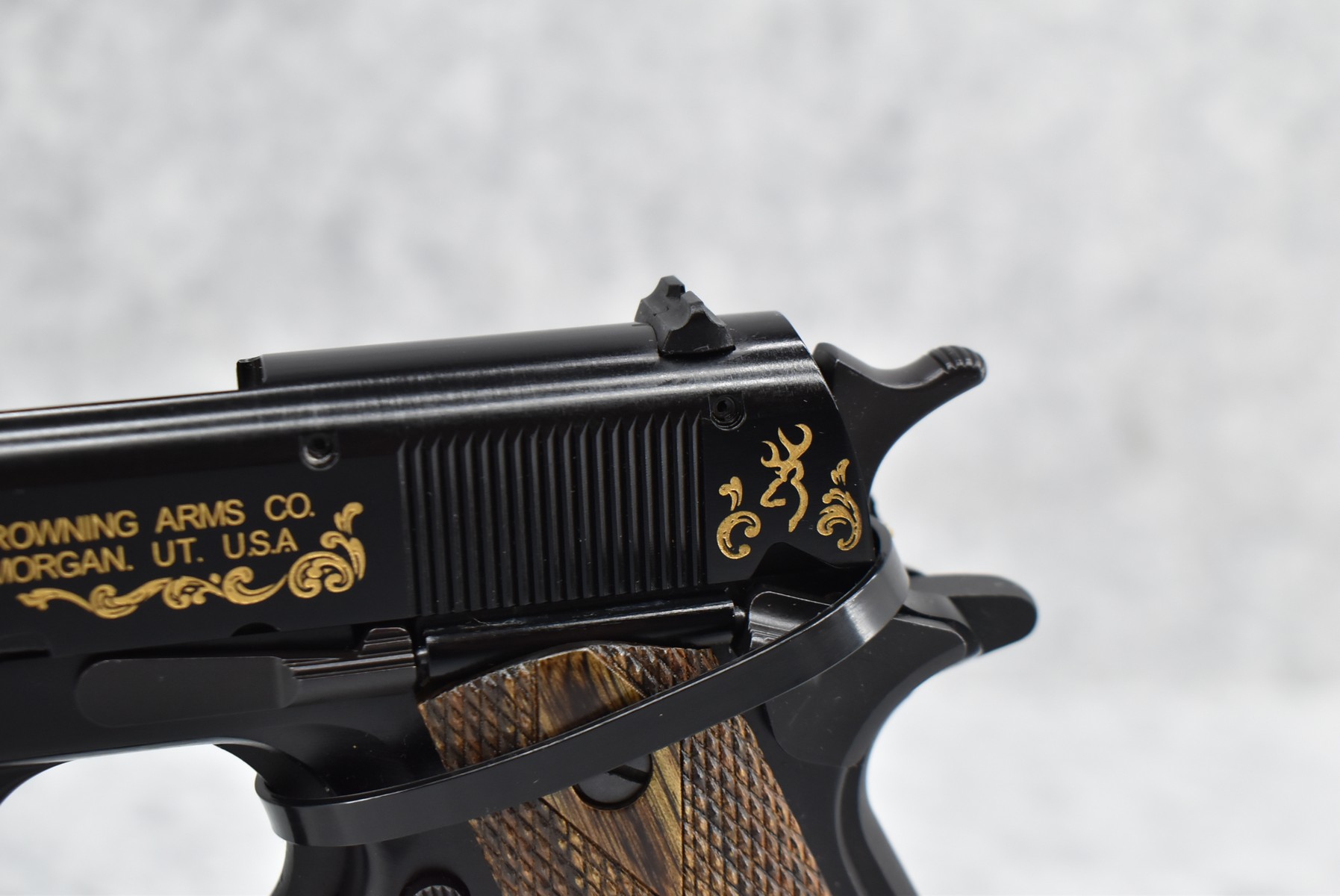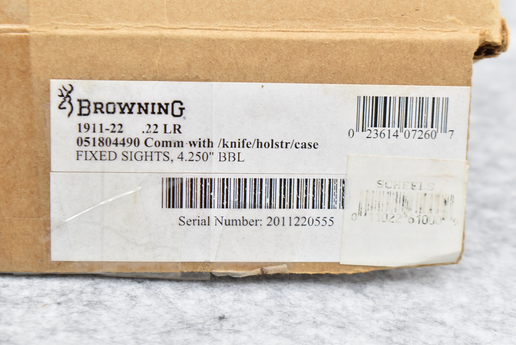 219R. Browning – Mod. 1911-22 – 100th Anniversary Commemorative – 22 Long Rifle Cal. Semi-Auto Pistol – w/4” Barrel w/Front & Rear Sights – Blued Finish – w/Factory Checkered Wood Grips – w/Factory Mag – Slide is Etched w/Anniversary Banners & Scrolling – w/Factory Soft Case, Manuals, Shipping Sleeve & Wooden Display Case, No Knife
