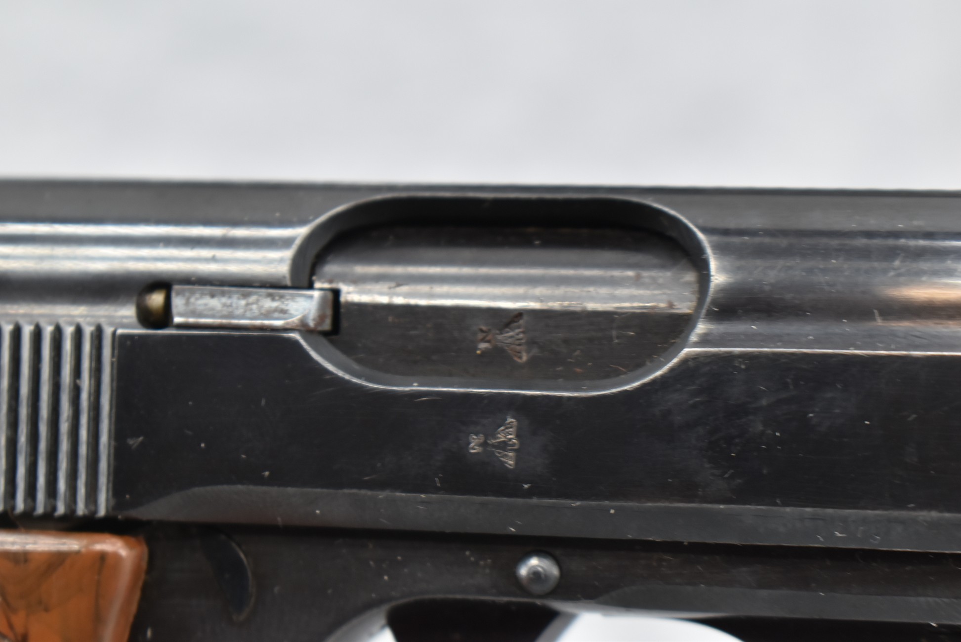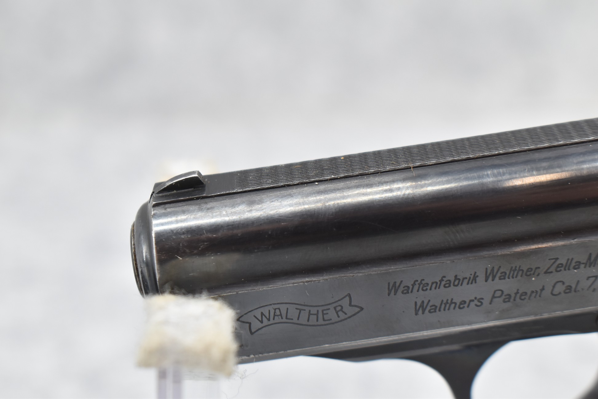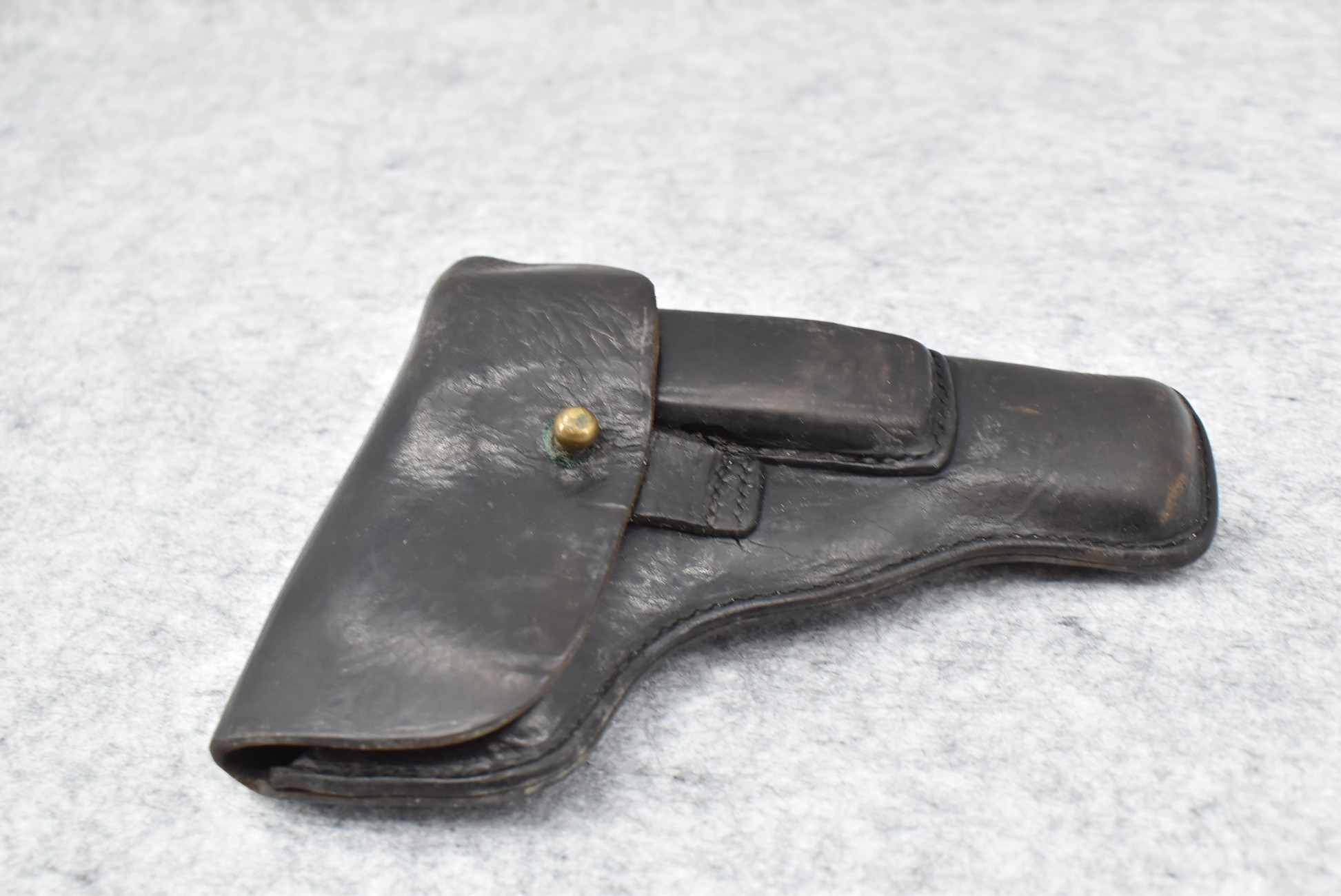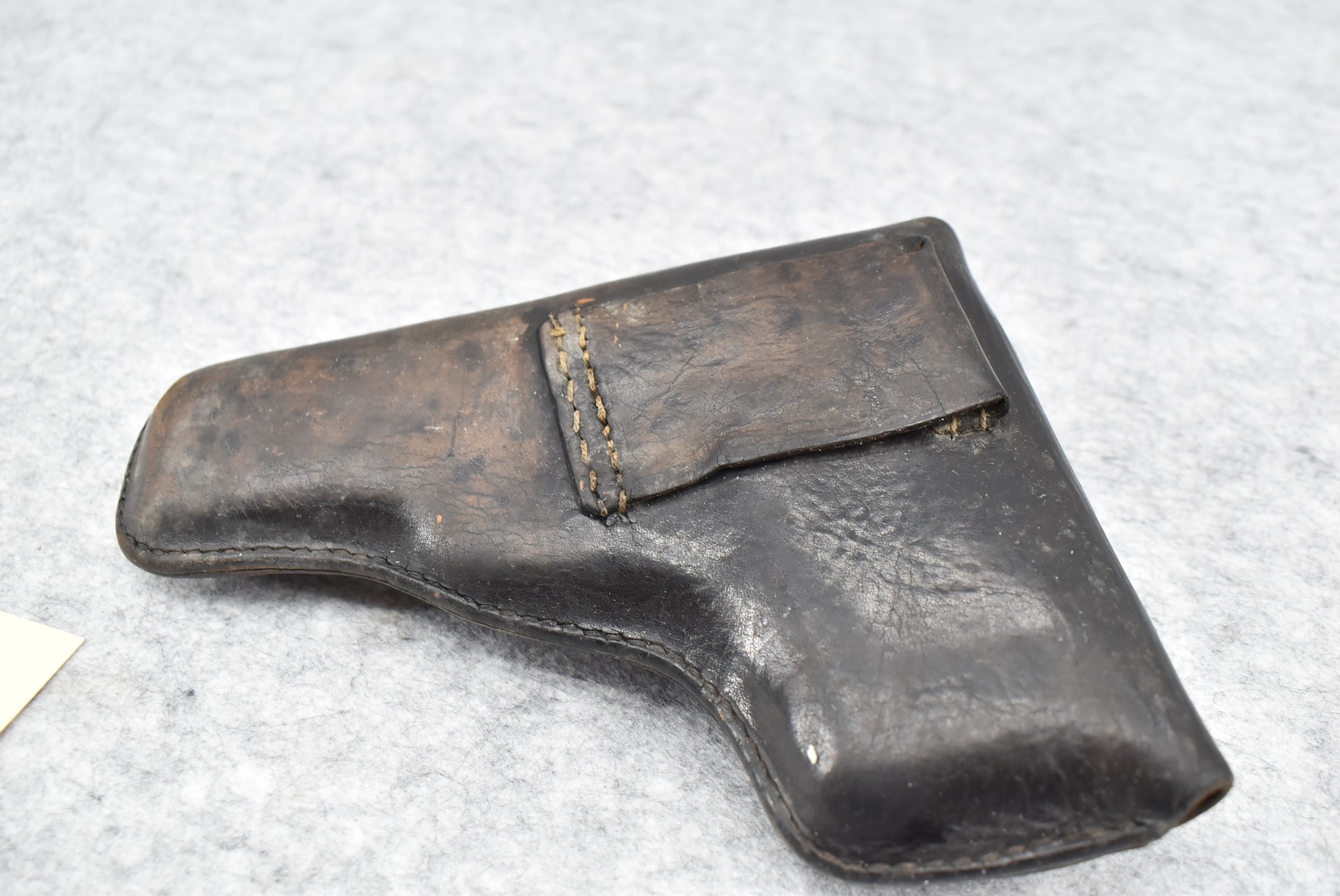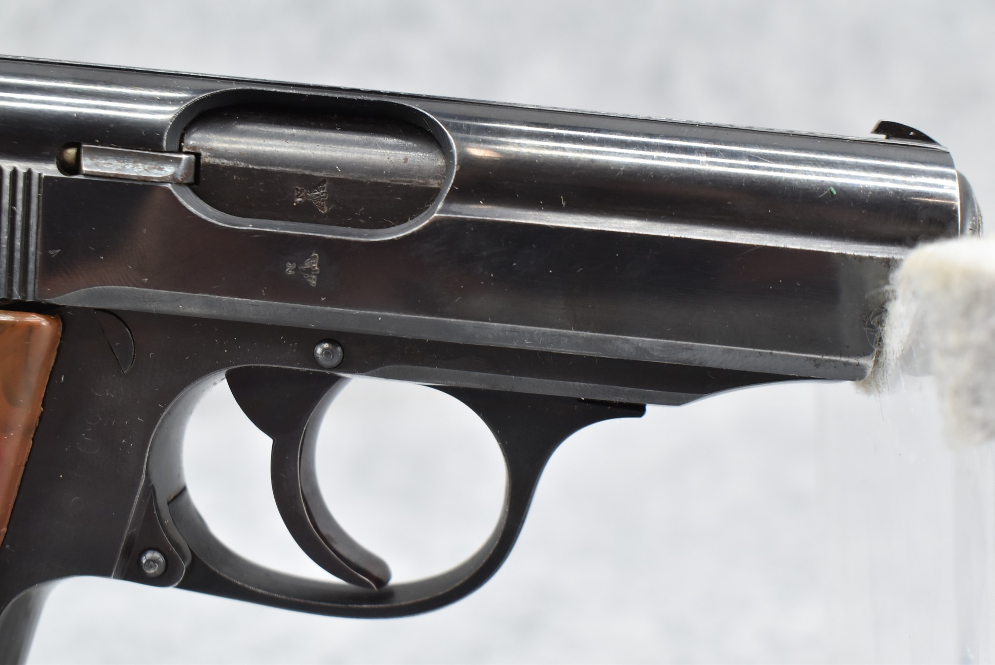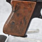 21R. Walther – Mod. PPK – 7.65mm (32 ACP) Cal. Semi-Auto Pistol – w/3 ¼” Barrel w/Front & Rear Iron Sights – Blued Finish – w/Factory Walther Checkered Brown Bakelite Grips – w/Factory Mag – w/Period Leather Holster – w/Wartime Commercial German Proof Mark on Slide & Barrel – Mfg. 1940