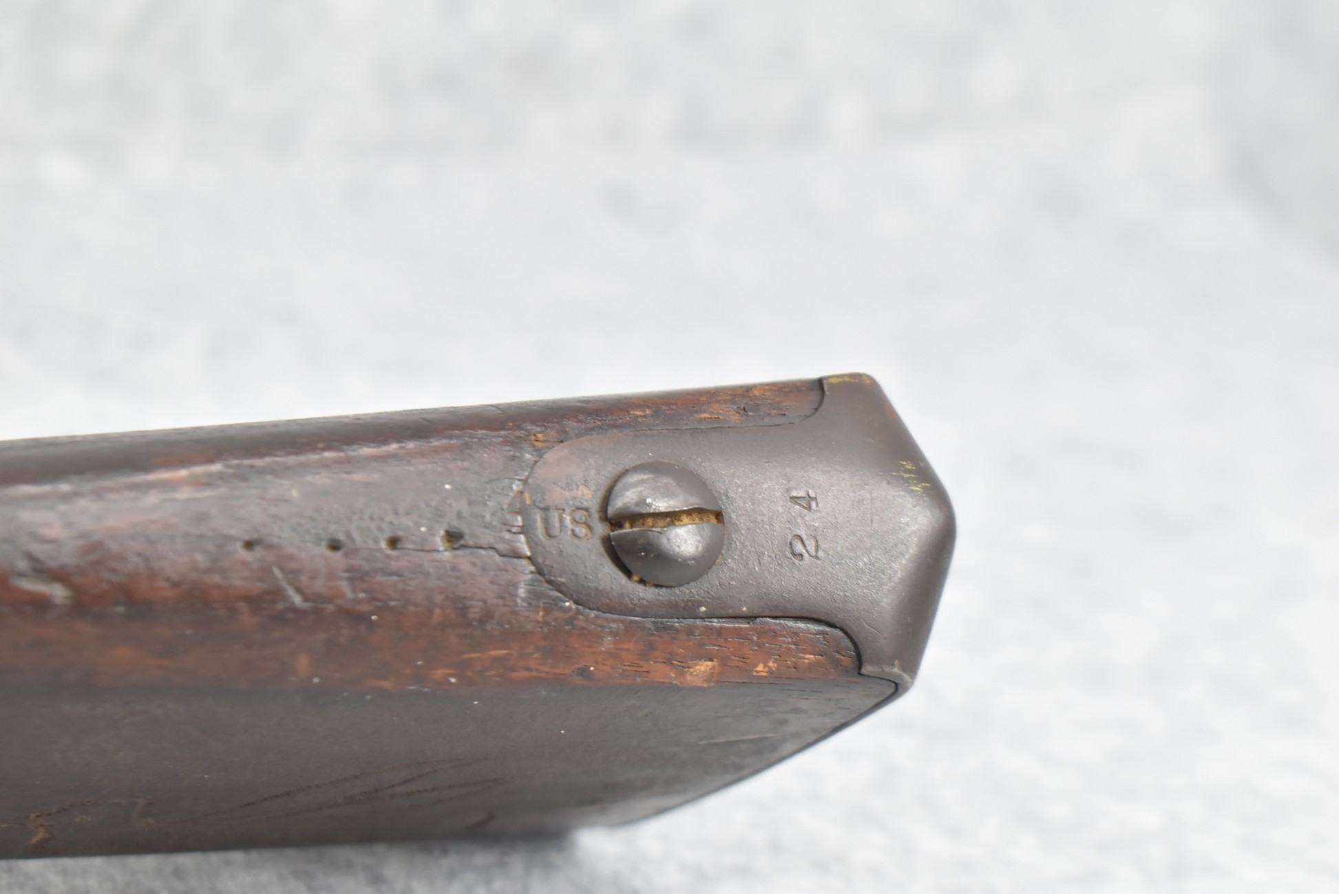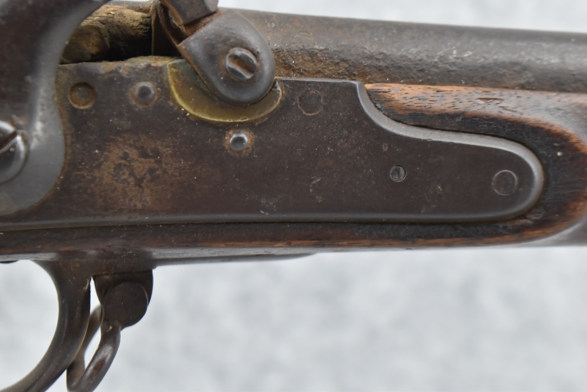 220. U.S. Springfield – Mod. 1816 Musket Converted to Percussion – 69 Cal. – w/Shortened to 32” Barrel – w/Altered & Shortened Full Wood Military Stock Held on by 3 Barrel Bands – w/Large “L E B” Carved Into the Right Side of the Butt Stock & Bird Carved on Left Side w/Vivid Stock Cartouches – Lock Dated 1819 w/“US” Under Eagle Motif – w/Sling Swivels – w/Ram Rod