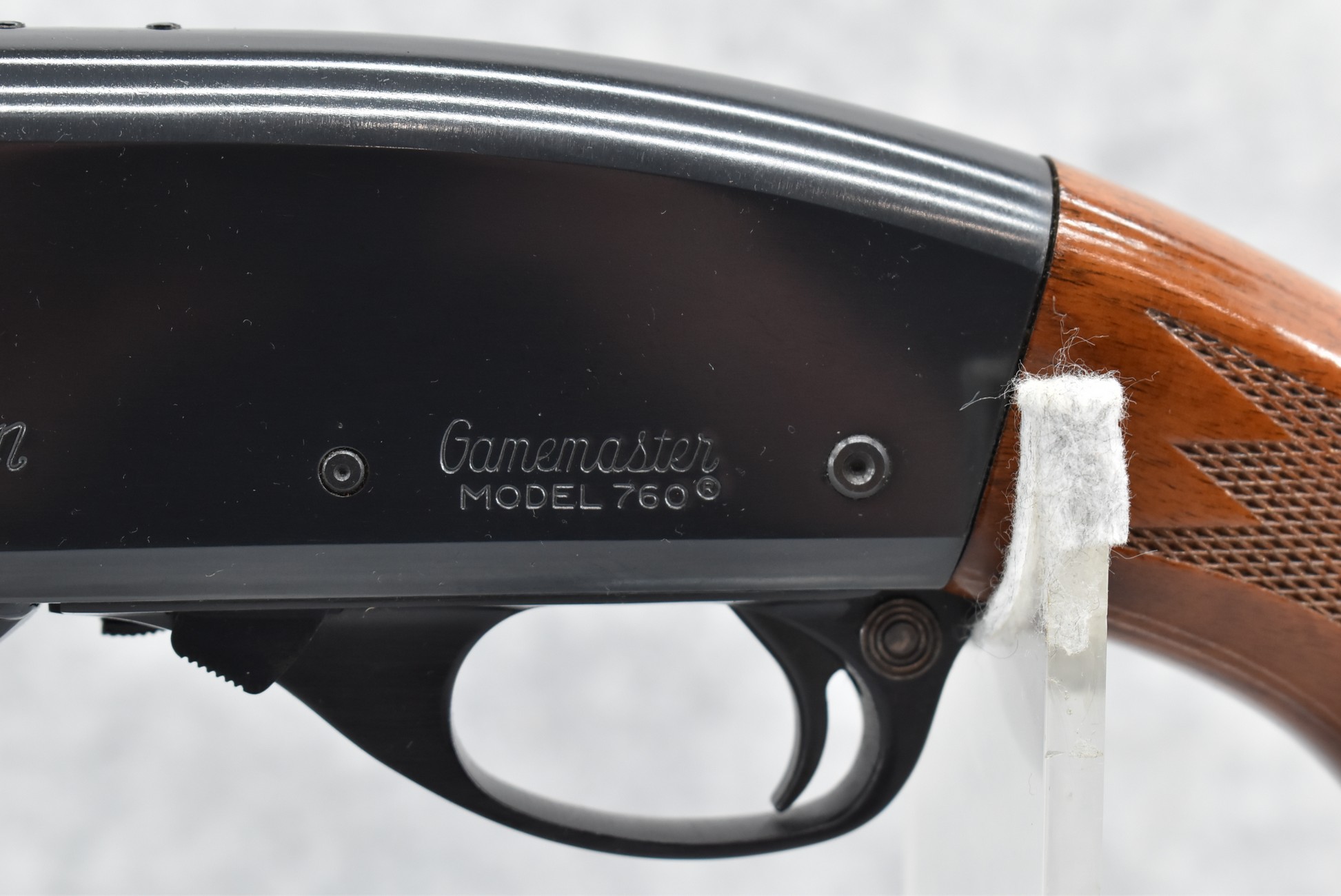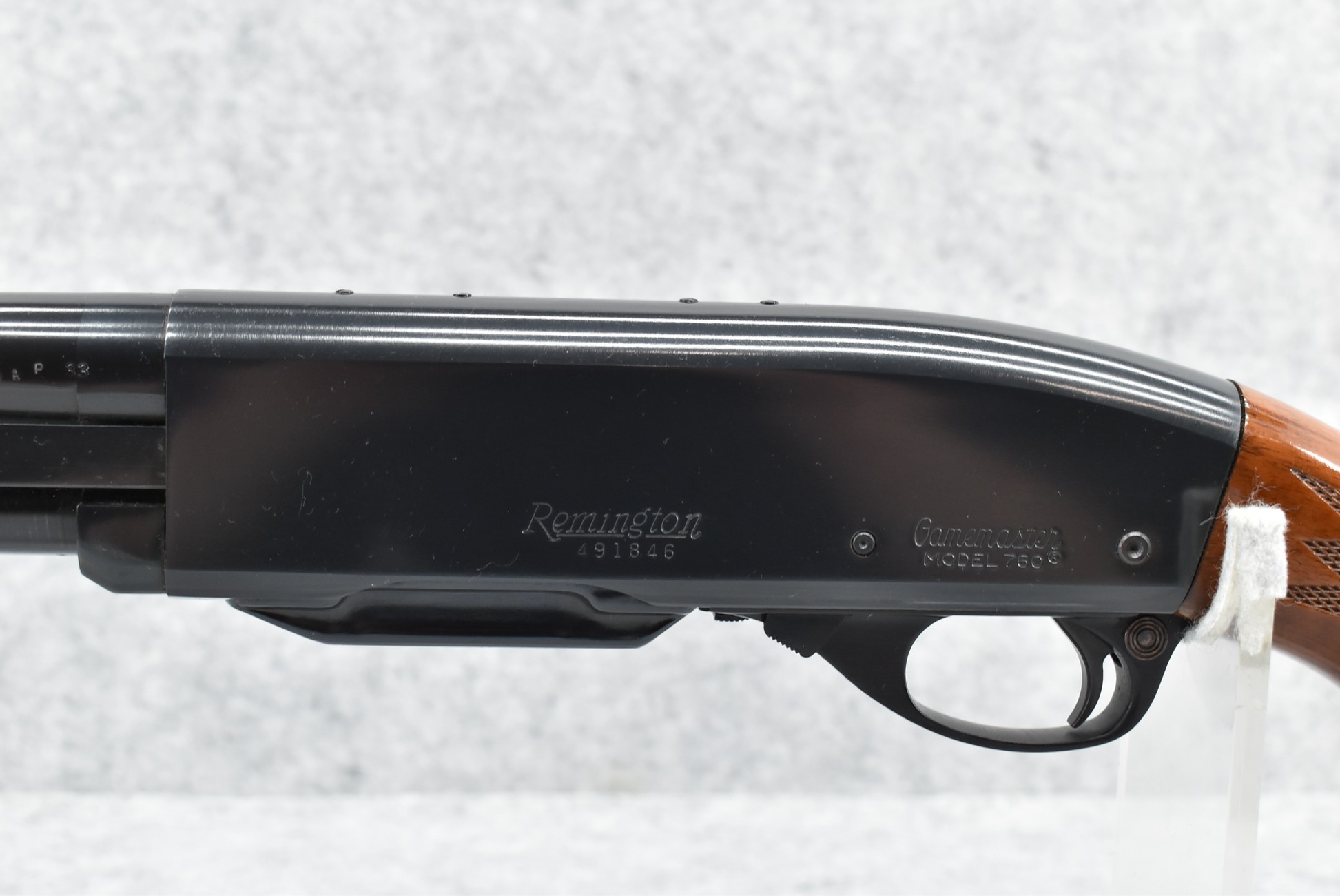 220R. Remington – Mod. 760 Gamemaster (Standard) – 308 Win. Cal. Pump Action Rifle – w/22” Barrel w/Blade Front and Adjustable Rear Sights – Blued Finish – w/Deluxe Checkered Capped Pistol Grip Wood Stocks w/Factory Metal Butt Plate – w/Factory Detachable Magazine – Only 7,794 Were Manufactured in this Checkering Pattern – Manufactured in 1957
