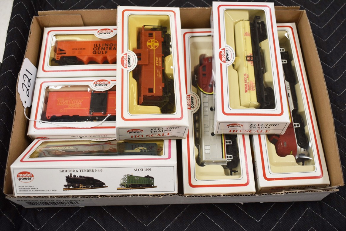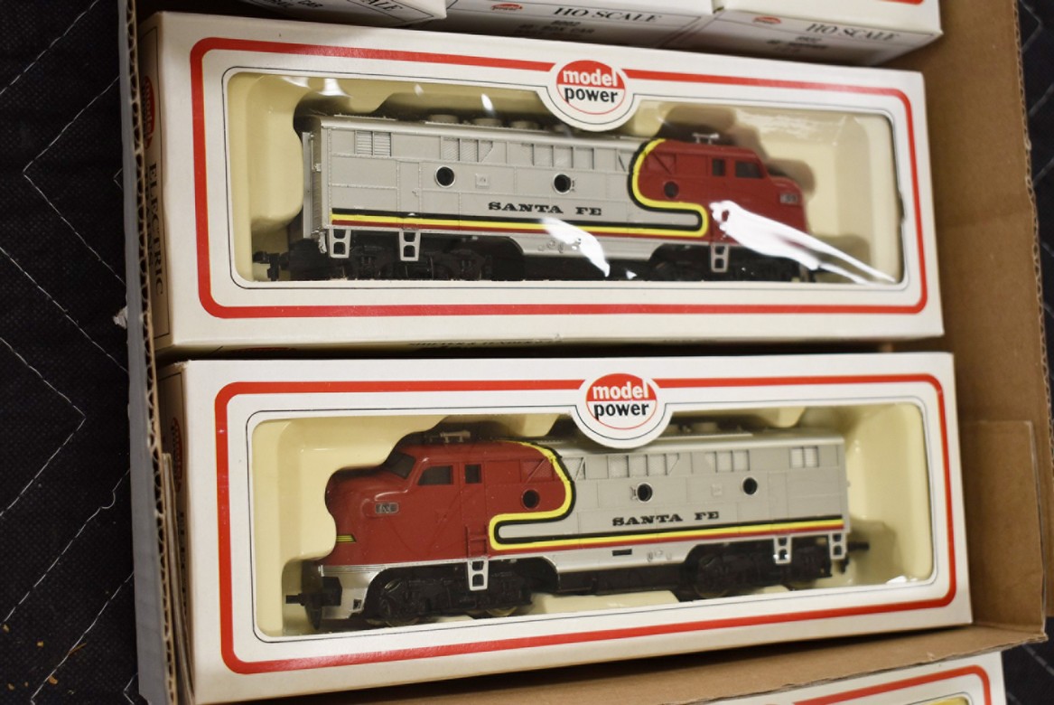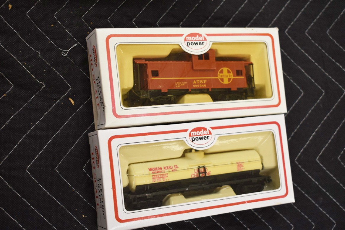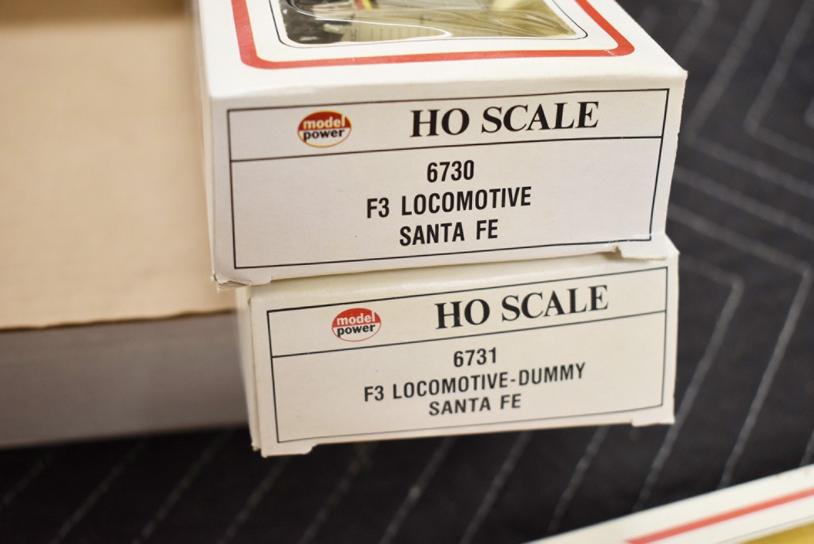 221. Model Power HO-Scale Train Set – Includes 6730 F3 Santa Fe Loco, 6731 F3 Loco Dummy, 8033 Michigan Tank Car, 6932 ICG Hopper, 8002 Babu Ruth Box Car, 8001 Conrail Box Car, and 9123 Santa Fe Caboose – All New in Box