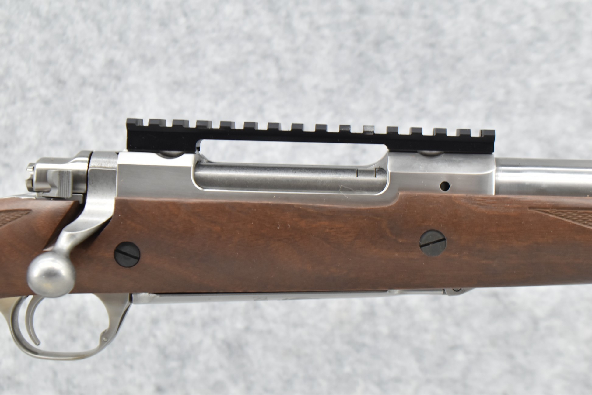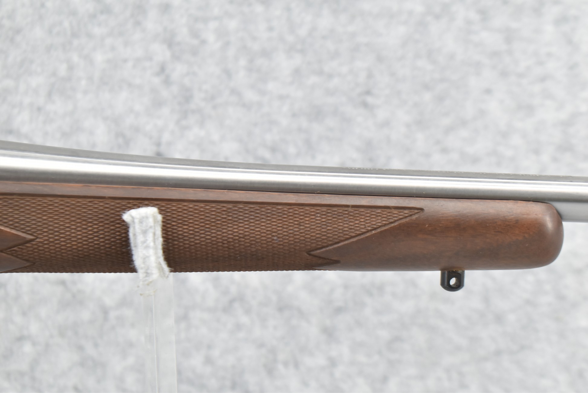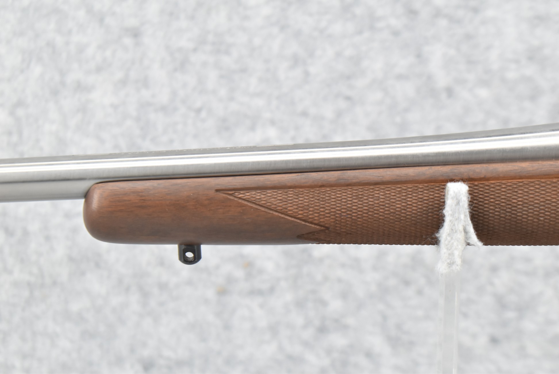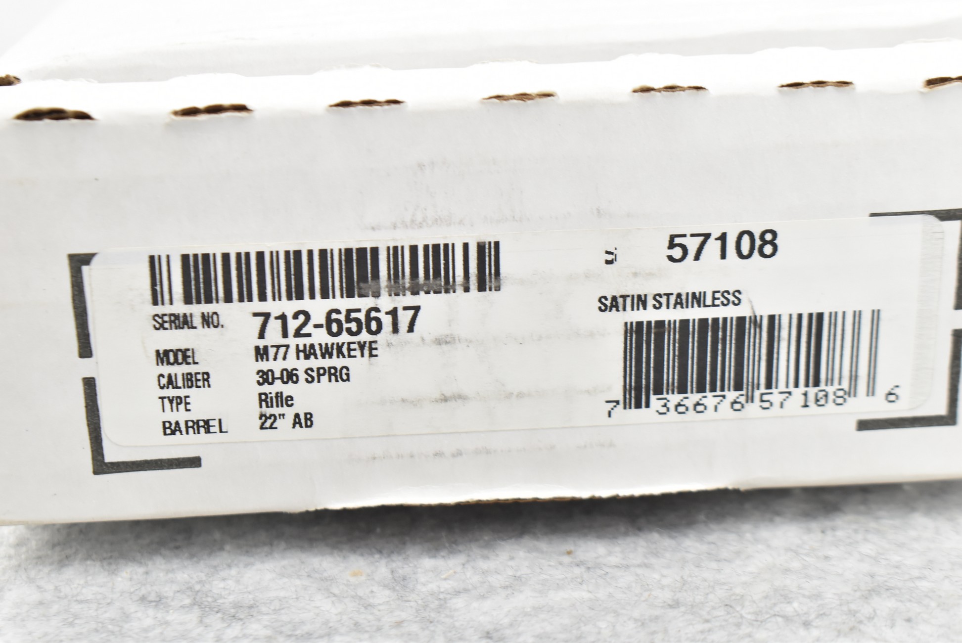 222R.     Ruger – Mod. 77 Hawkeye Hunter – 30-06 Sprg. Cal. Bolt Action Rifle – w/22” Barrel w/Threaded Muzzle w/Cap – Stainless Finish – w/Deluxe Checkered Capped Pistol Grip Walnut Wood Stock w/Factory Butt Pad – w/Picatinny Rail for Mounting Optics – w/Engraved Floor Plate – New in Factory Box w/Manual and Accessories