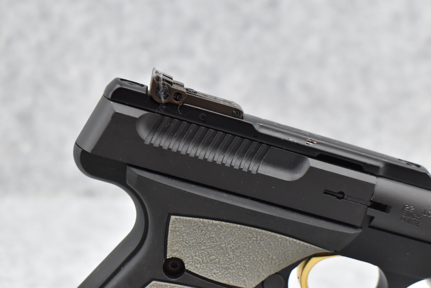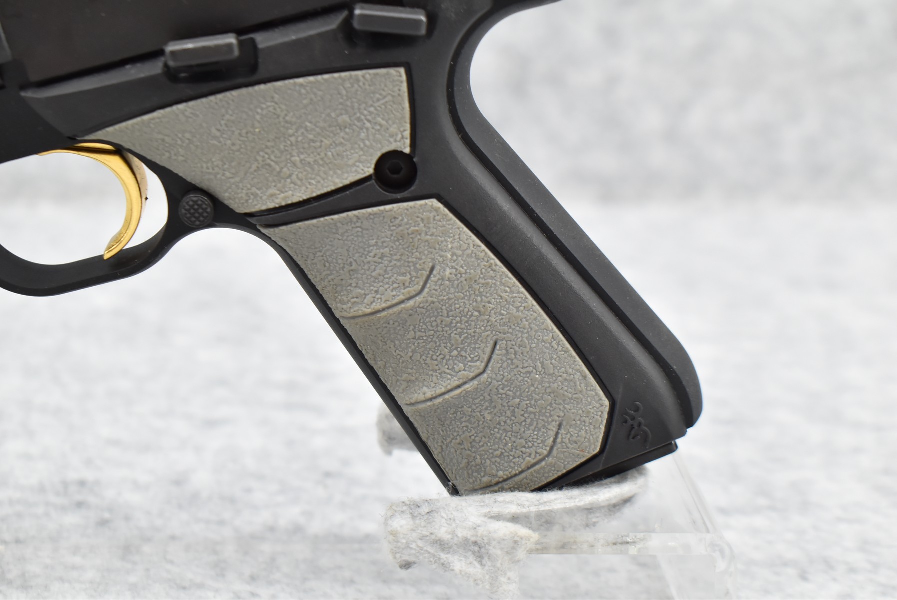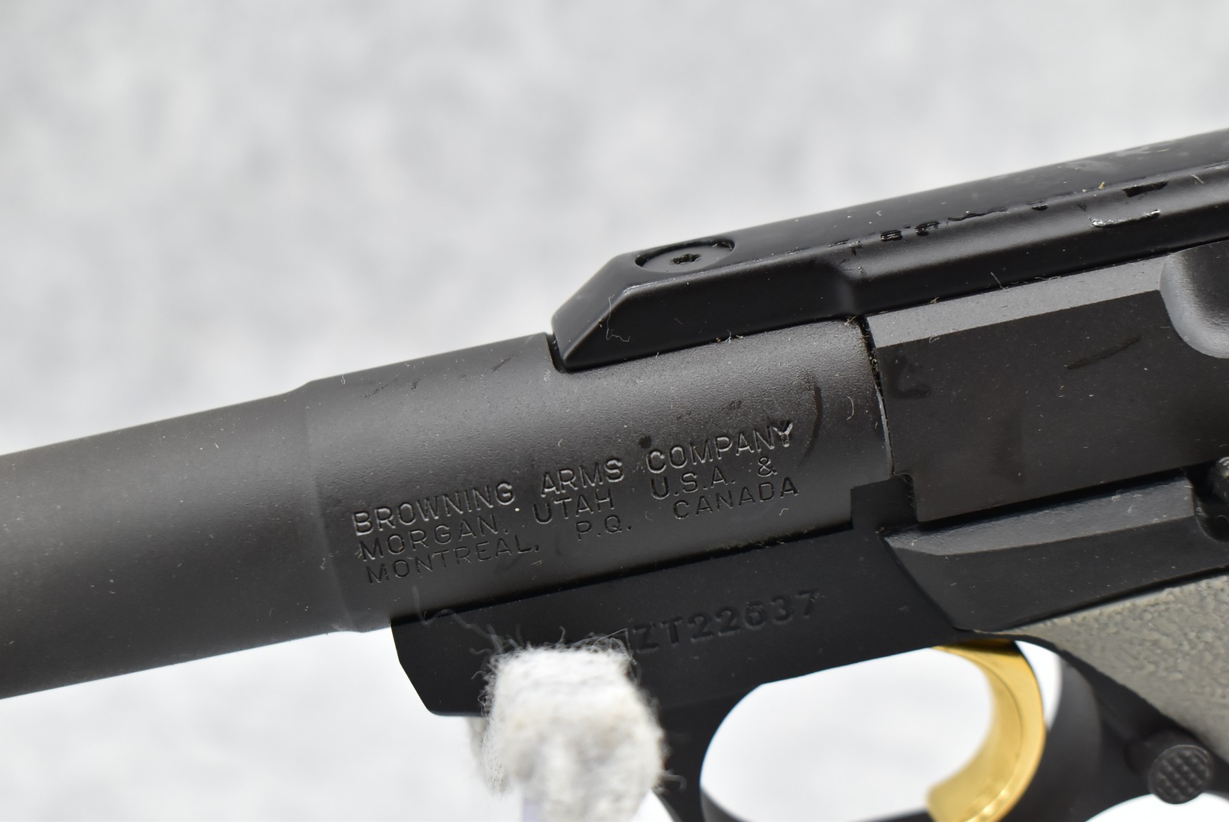 223R. Browning – Mod. Buckmark – Camper – 22 Long Rifle Cal. Semi-Auto Pistol – w/5 ½” Round Heavy Barrel w/Blade Front & Adj. Rear Sights – Matte Blued Finish – w/Factory Rubber Over-Mold Grips – w/Factory Mag – New & Unfired w/Factory Hard Case & Manua