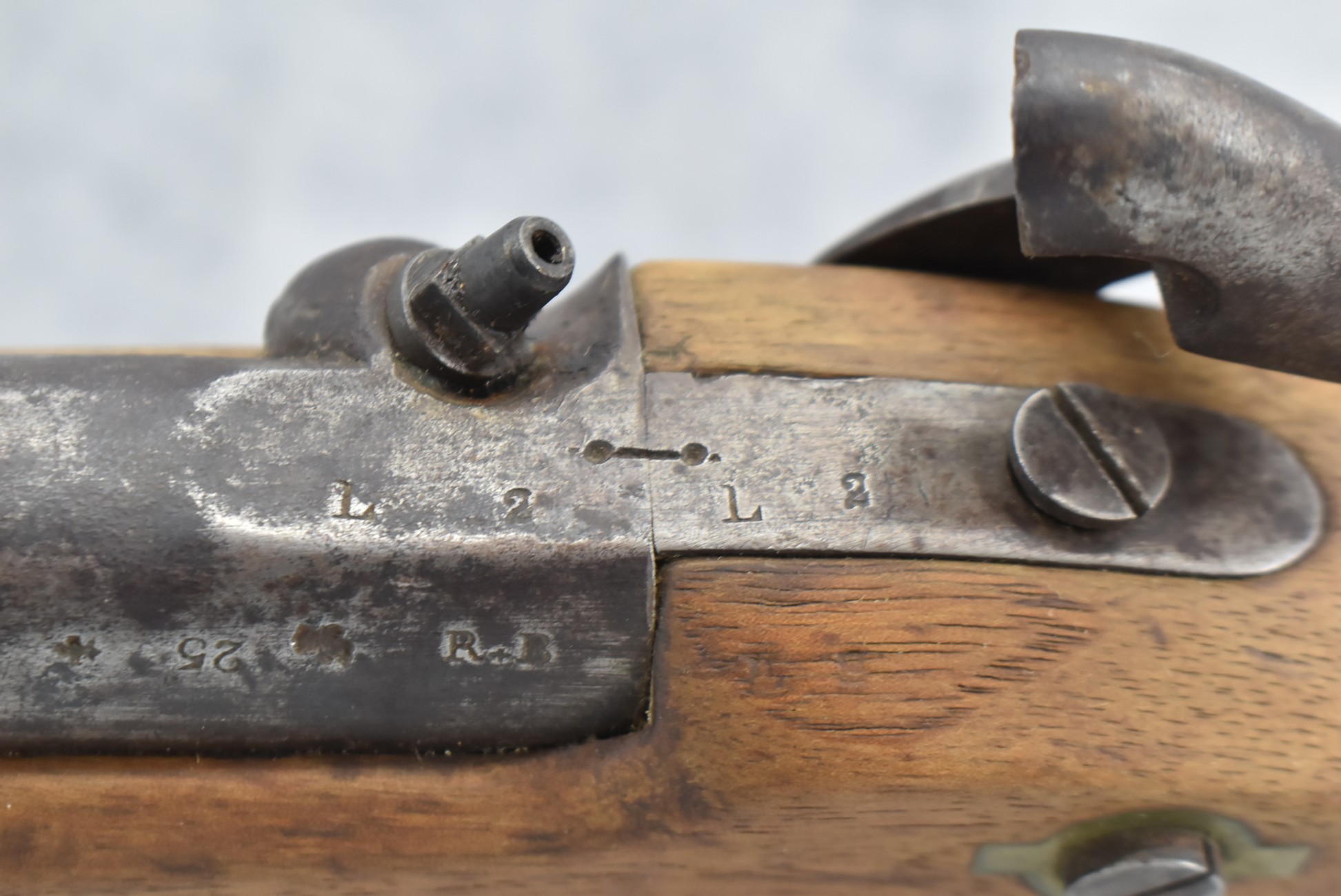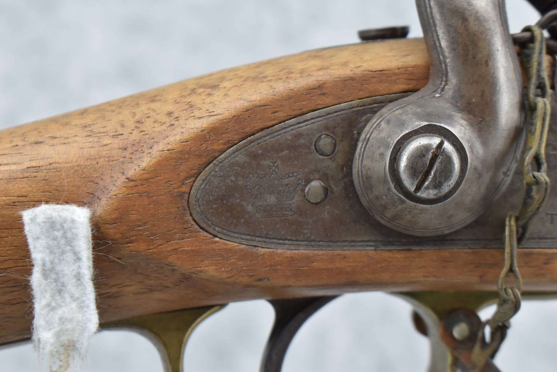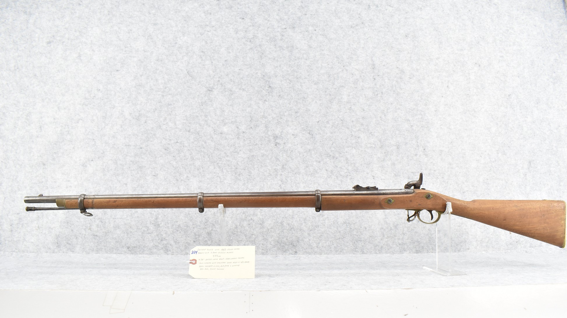 224. Enfield Tower w/1862 & Tower Dated & Marked Lock, 3 Band Rifled Musket – 577 Cal. – w/38” Barrel w/Front & Rear Ladder Sights – w/Full Length Wood Military Stock Held on by 3 Barrel Bands w/Brass Trigger Guard, Butt Plate & Nose Cap – w/Sling Swivels – w/Ram Rod