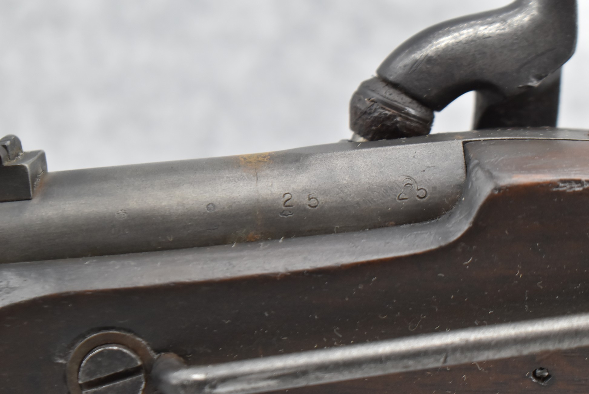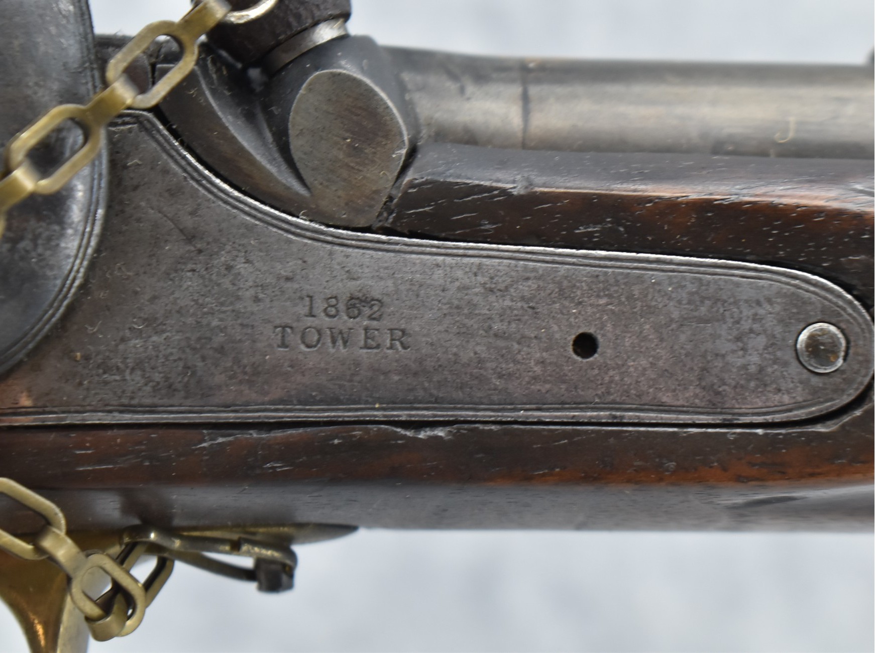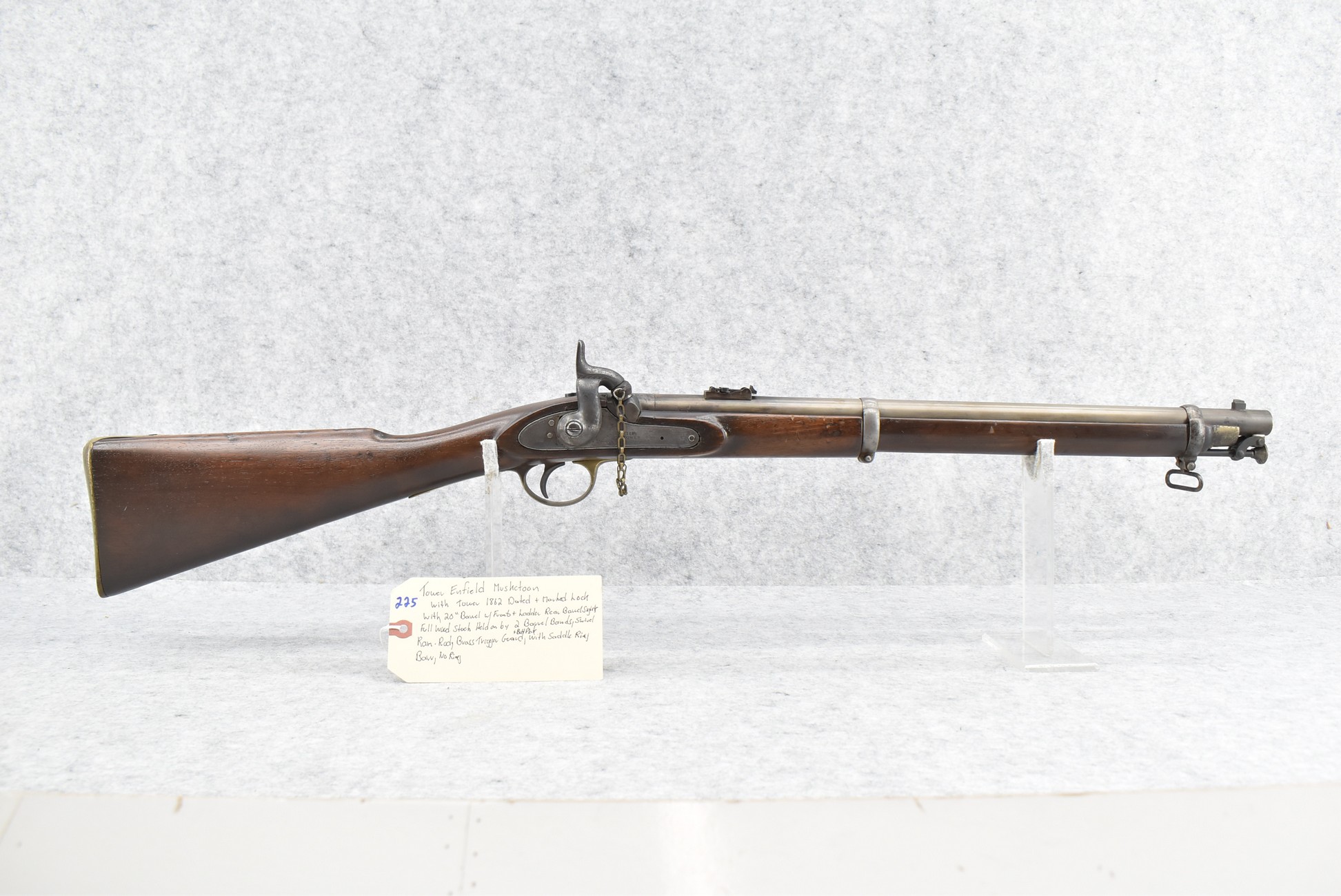 225. Tower Enfield Musketoon w/Tower 1862 Dated & Marked Lock – w/20” Barrel w/Front & Ladder Rear Barrel Sights – w/Full Wood Stock Held on by 2 Barrel Bands w/Brass Trigger Guard & Butt Plate – w/Saddle Ring Bar, No Ring – w/Ram Rod