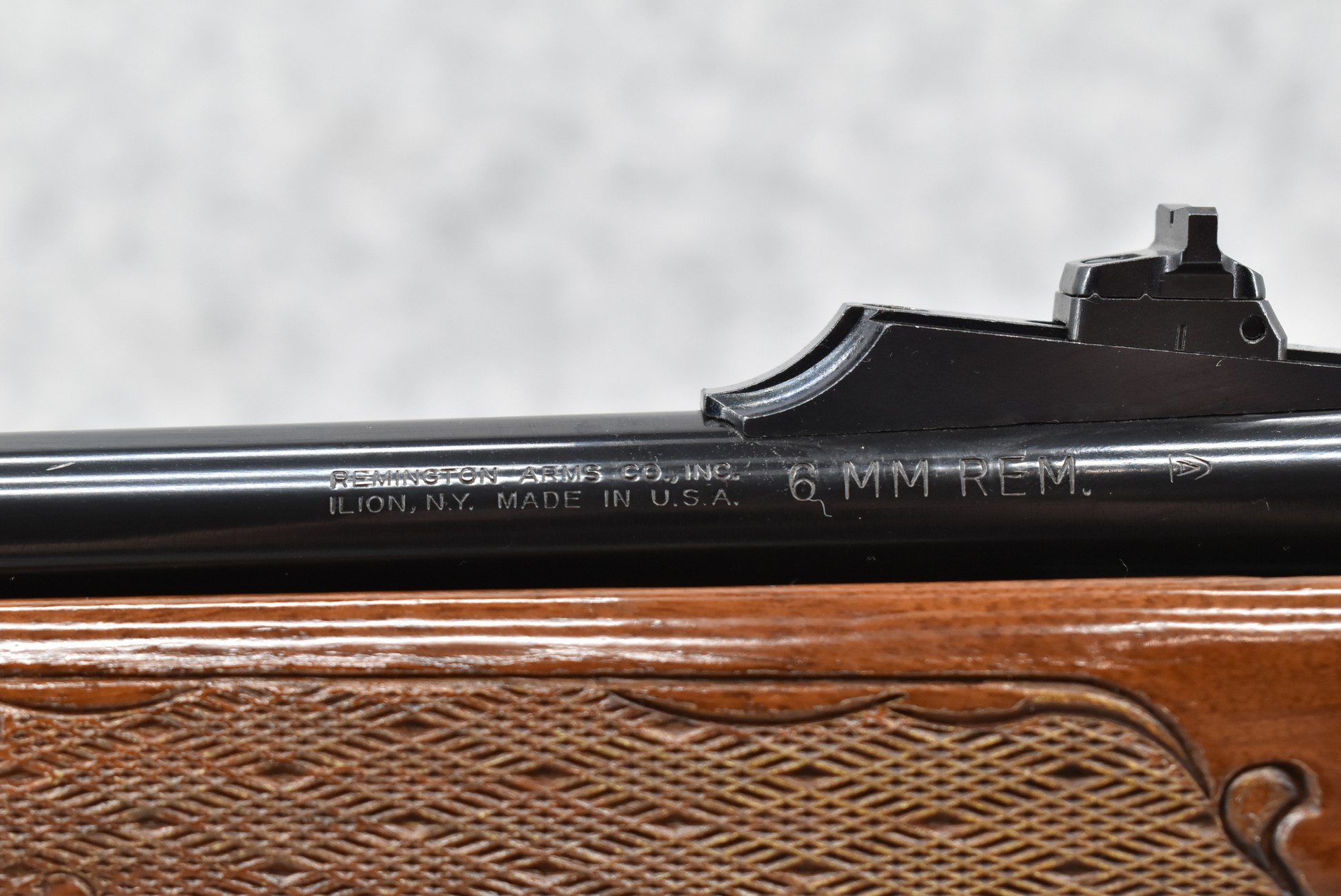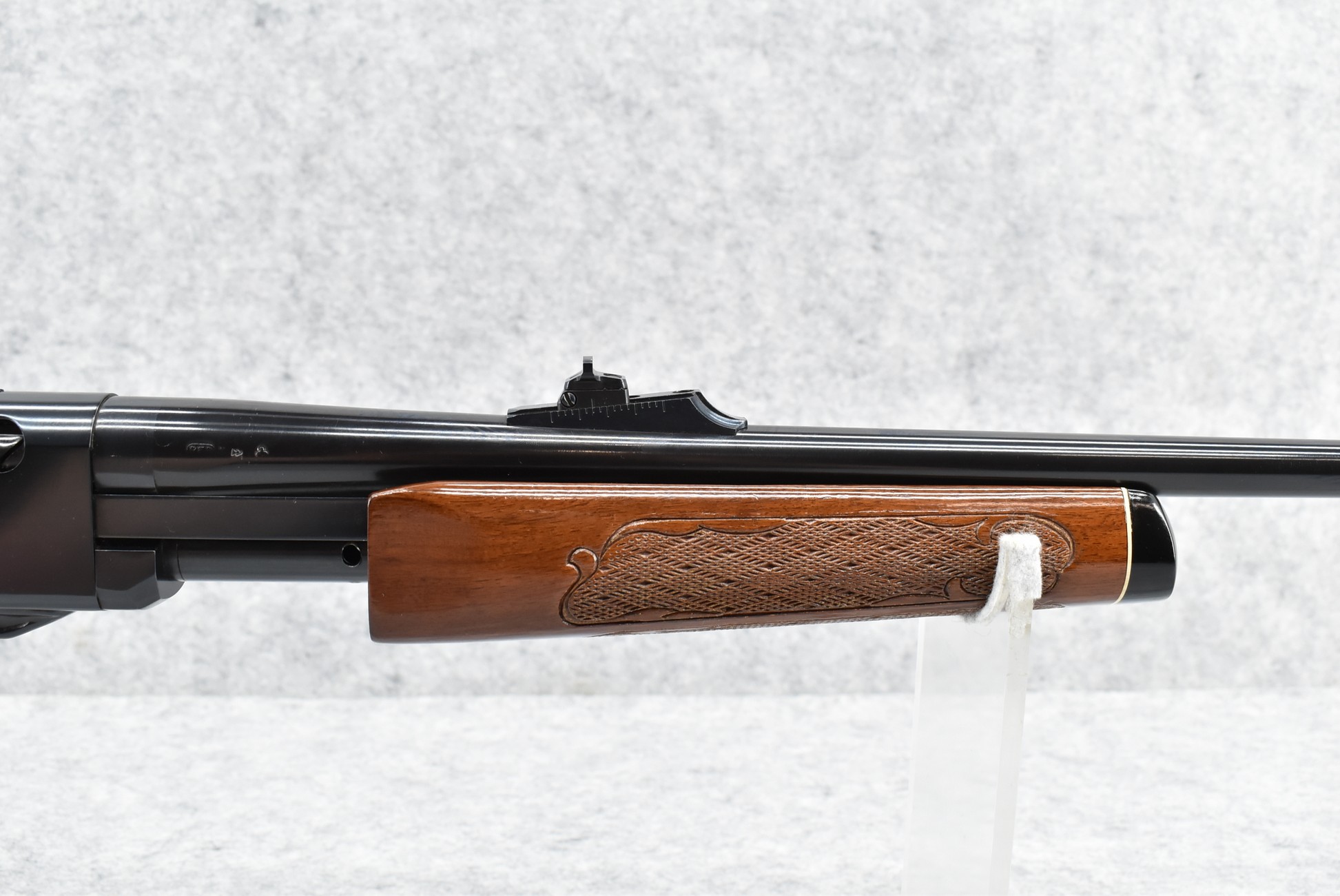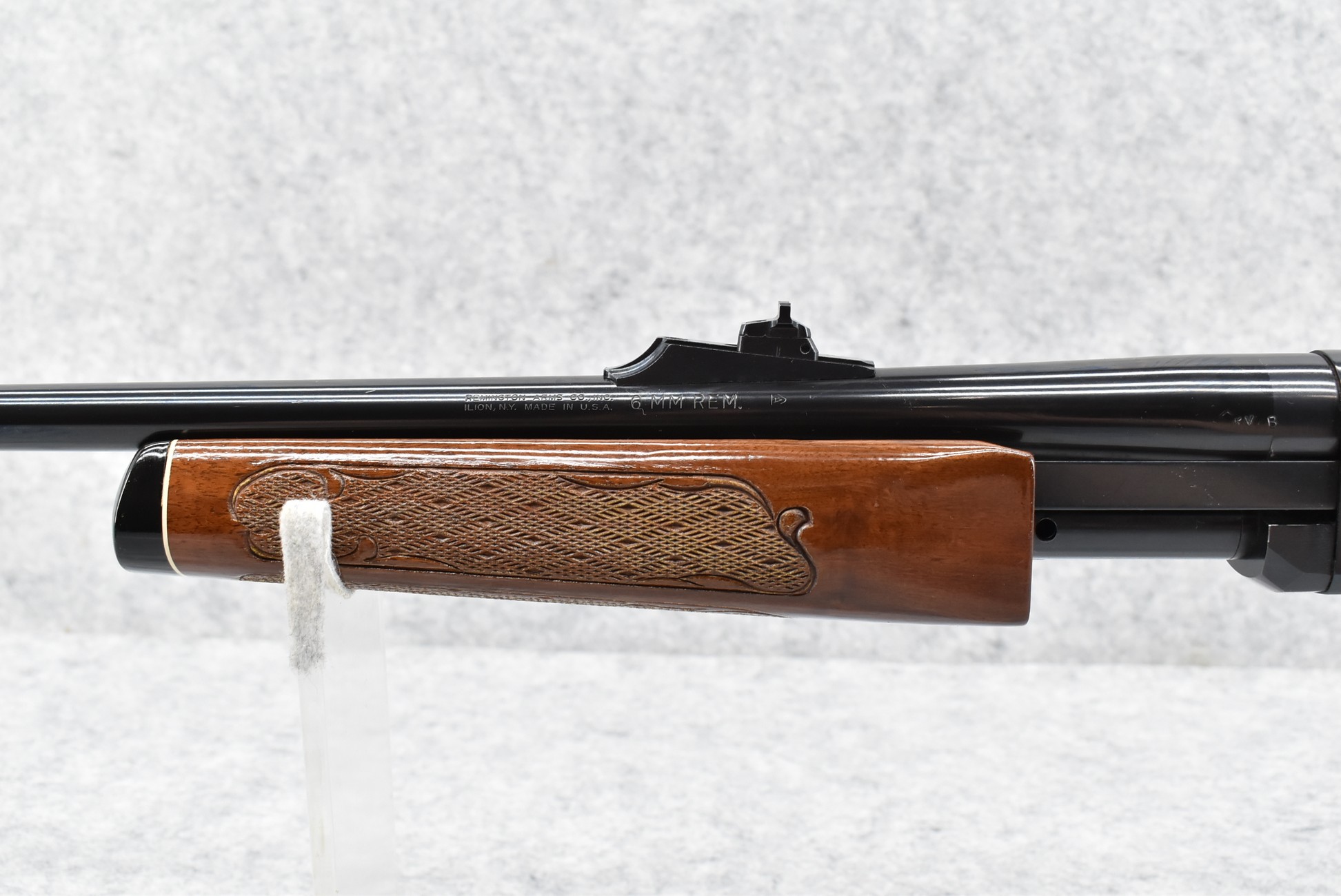 225R. Remington – Mod. 760 Gamemaster (Press-Checkered) – 6mm Rem. Cal. Pump Action Rifle – w/22” Barrel w/Beaded Front and Adjustable Rear Ramp Sights – Blued Finish – w/Checkered Capped Pistol Grip Wood Stocks w/Factory Butt Plate – w/Factory Magazine – Unfired w/Factory Box and Manual – Only 10,519 6mm Rem. 760 Gamemasters Were Manufactured!