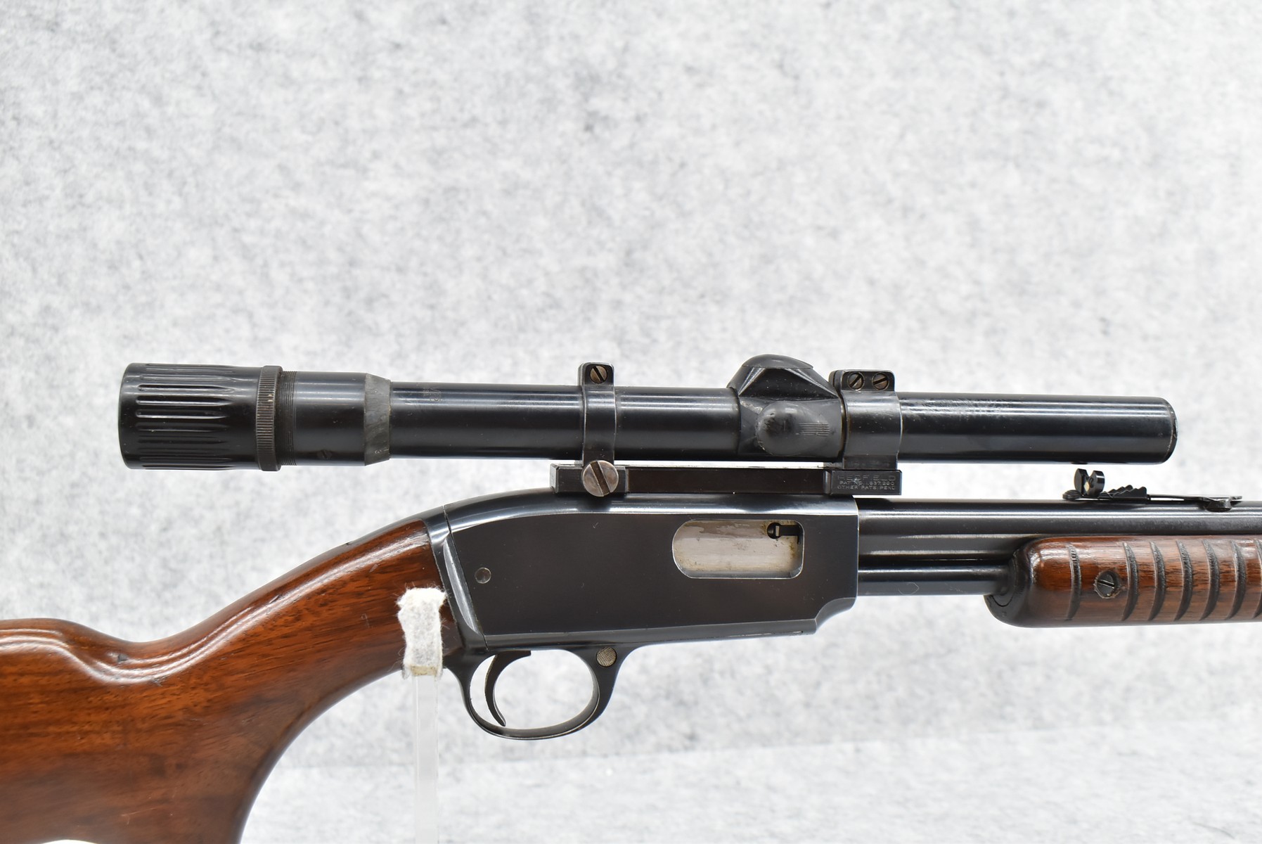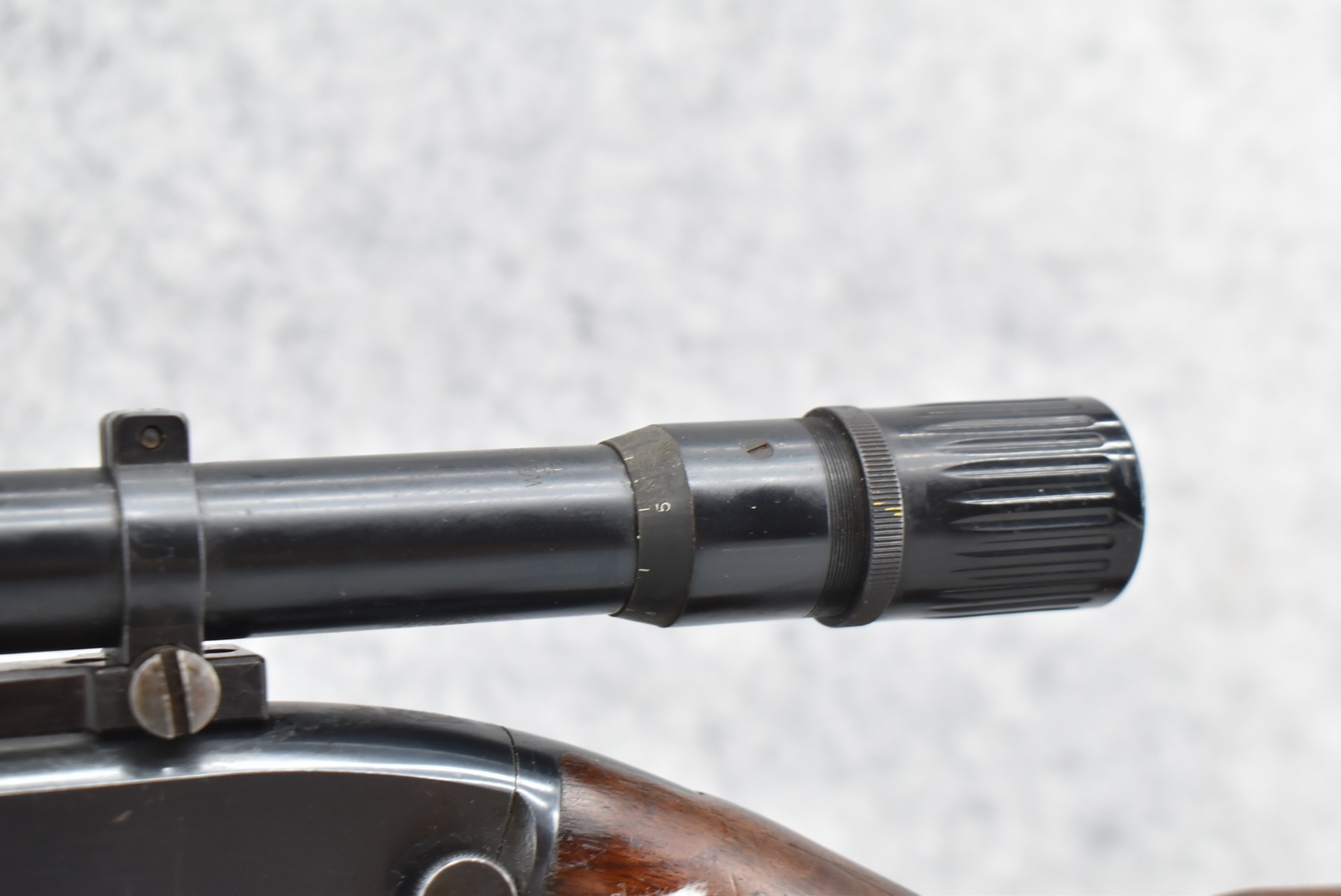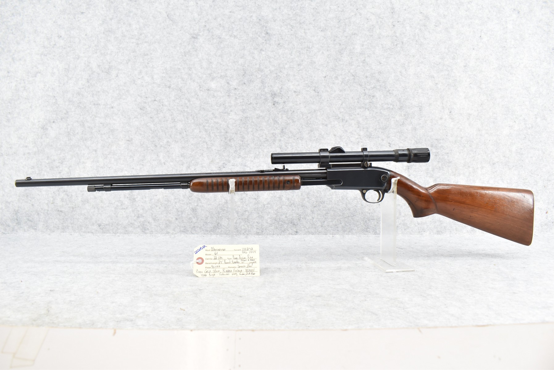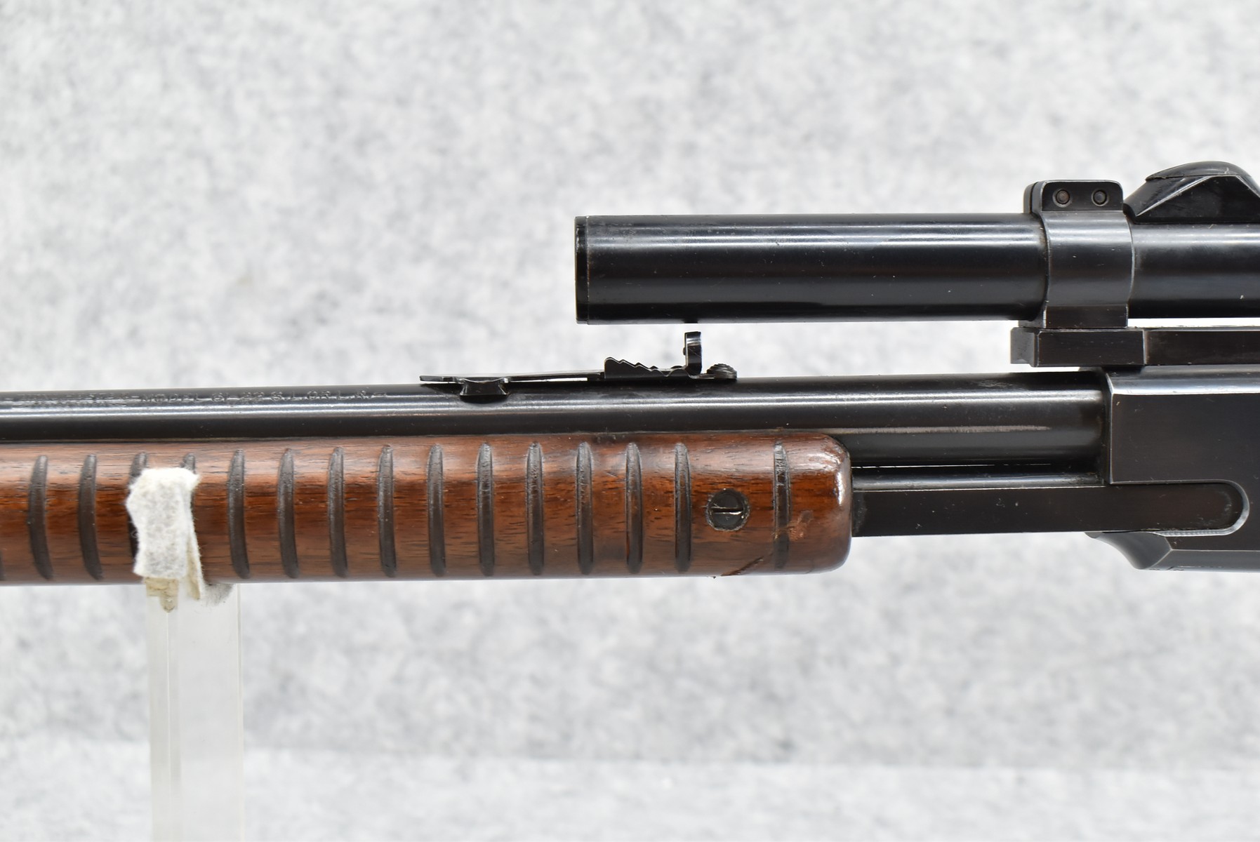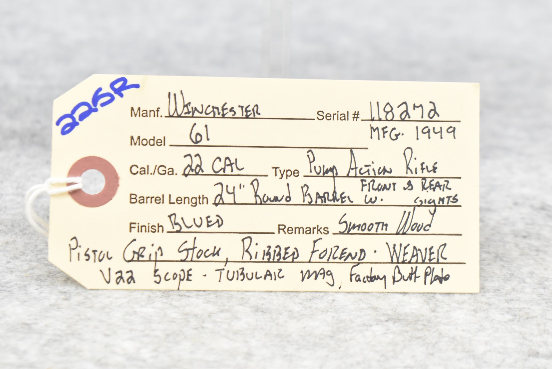 225R. Winchester – Mod. 61 – 22 Cal. Pump Action Rifle – w/24” Round Barrel w/Front and Rear Sights – Blued Finish – w/Smooth Wood Pistol Grip Stock w/Ribbed Forend and Factory Butt Plate – w/Tubular Magazine – w/Weaver V22 Scope & Mounts